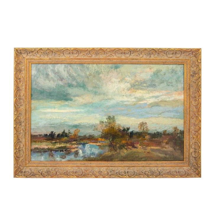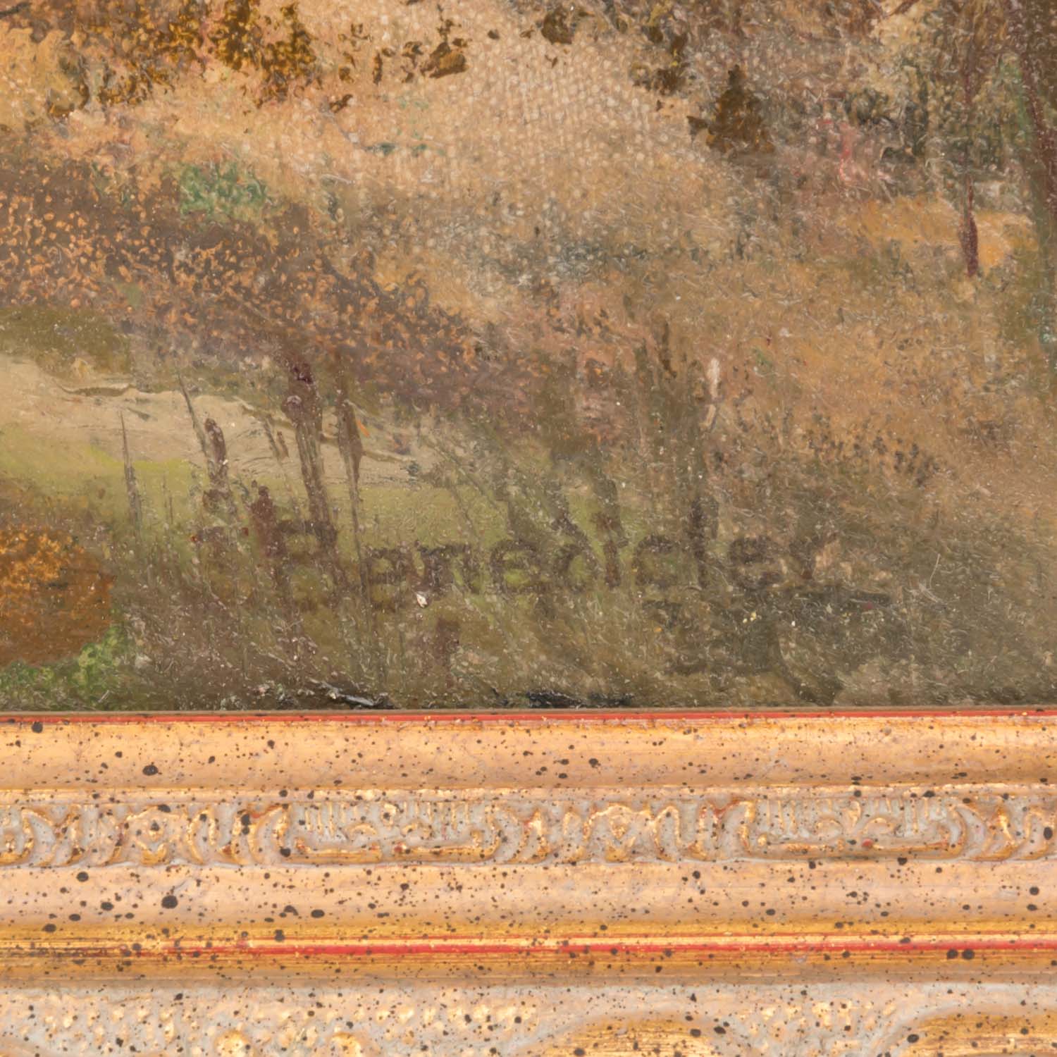 u.re. signiert, Öl/Leinwand, HxB: ca. 33x50 cm (42x58 cm mit Rahmen). Alters- und Beriebspuren, leichtes Craquelé. Mit Rahmen. VERSO STEMPEL: Nachlass v. Kunstmaler J. Benedicter, Pasing.