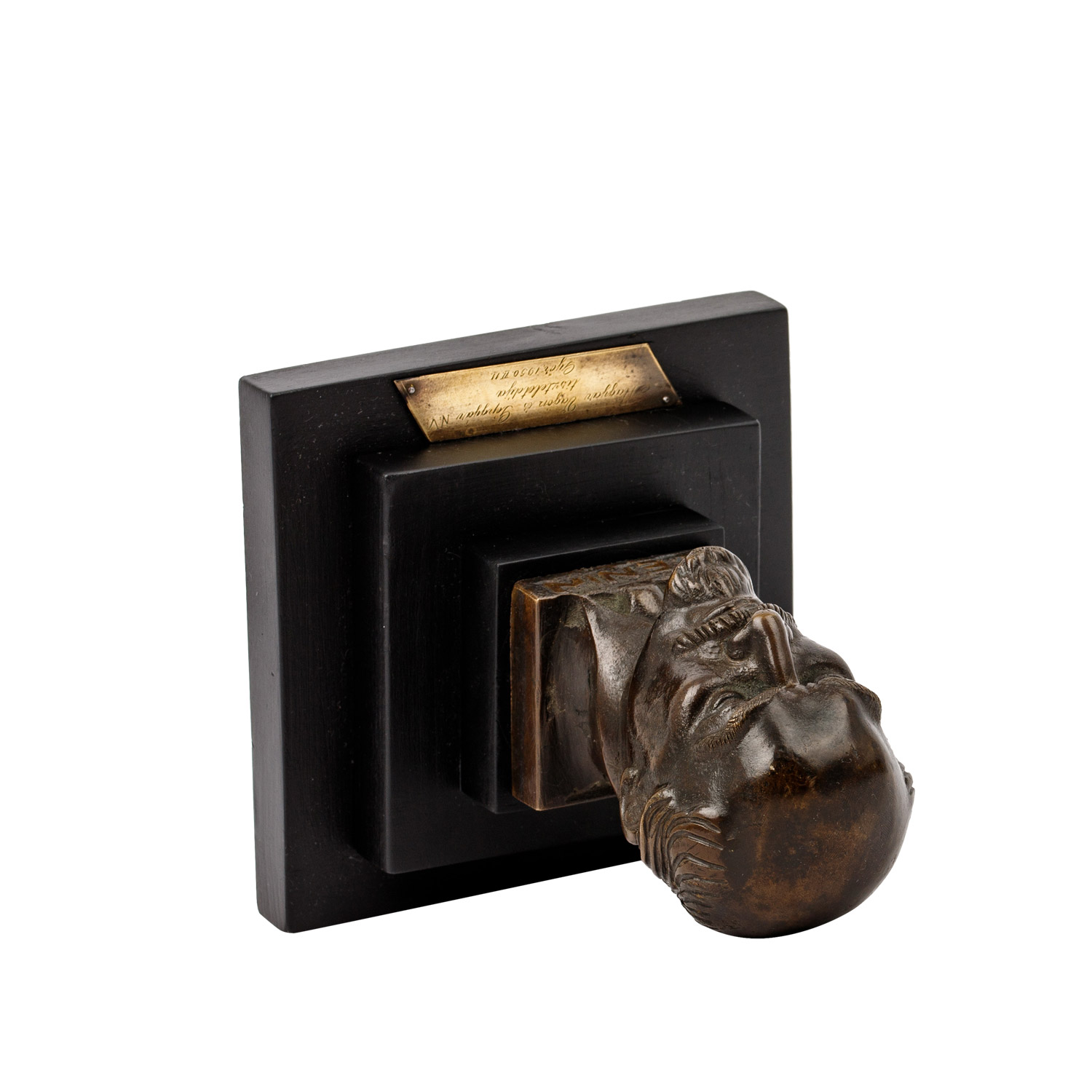 Bronze auf Holzsockel, Plakette mit Widmung, H: 12 cm. (ohne Sockel)