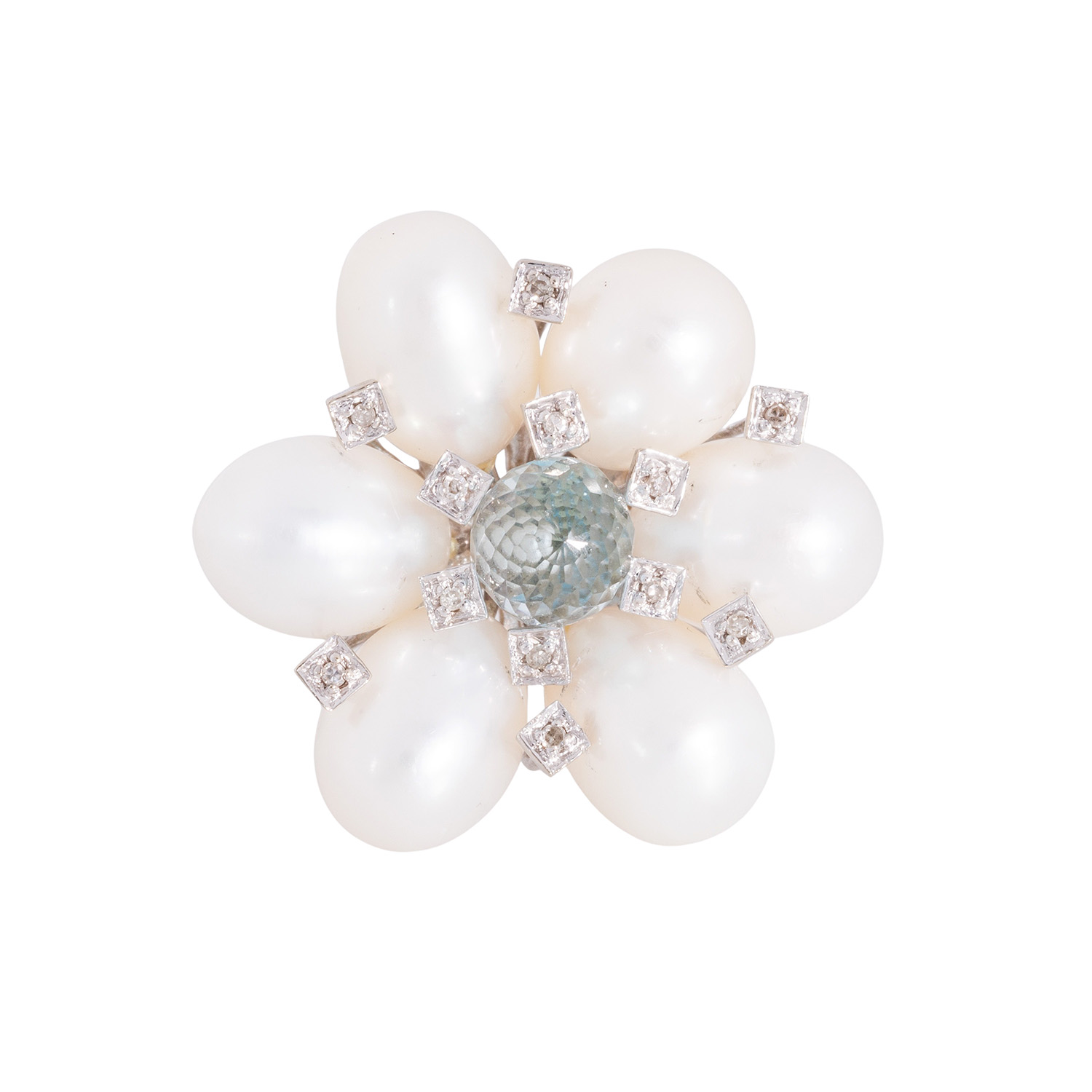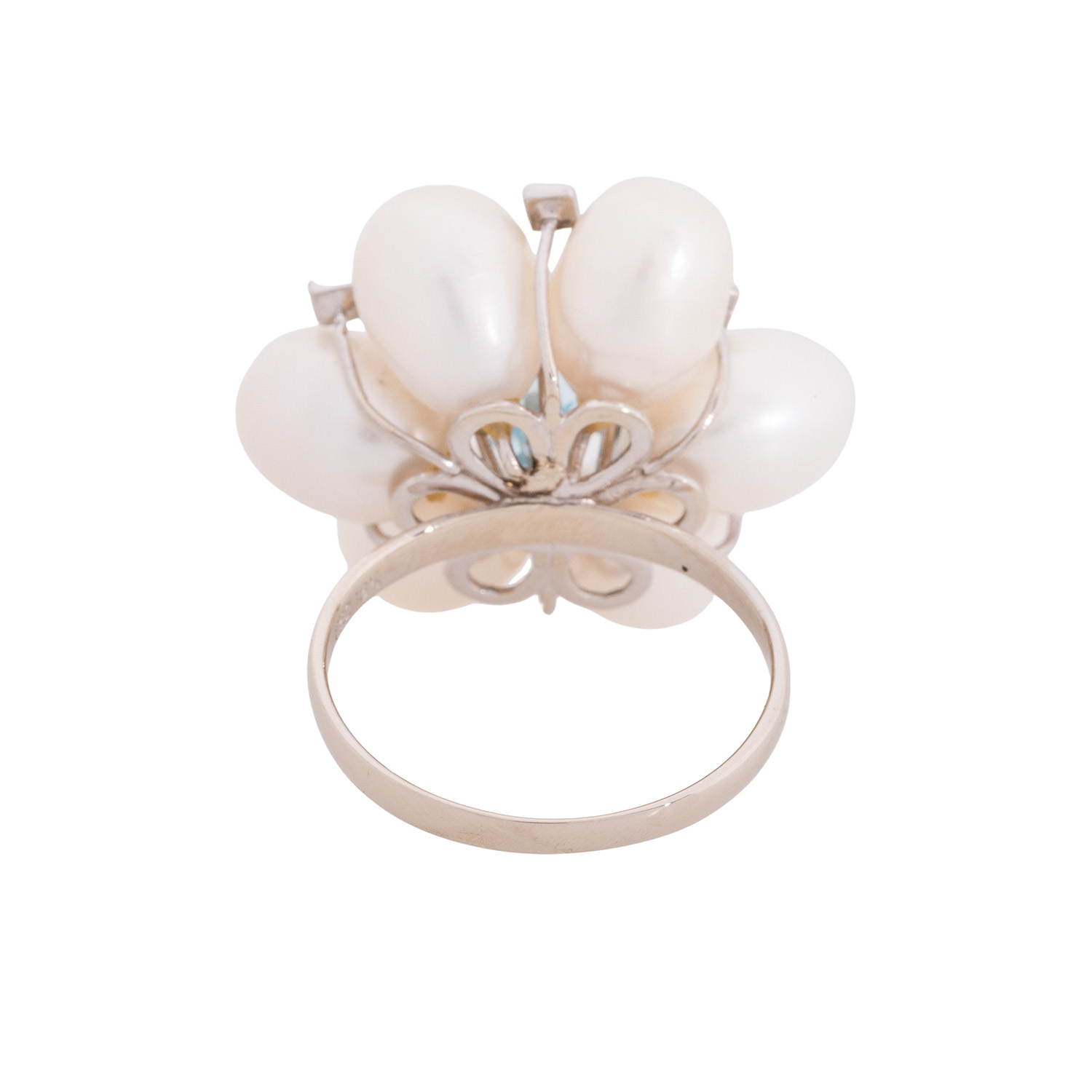 Blütenring mit Süßwasserperlen und Brillanten zus. ca. 0,5 ct,