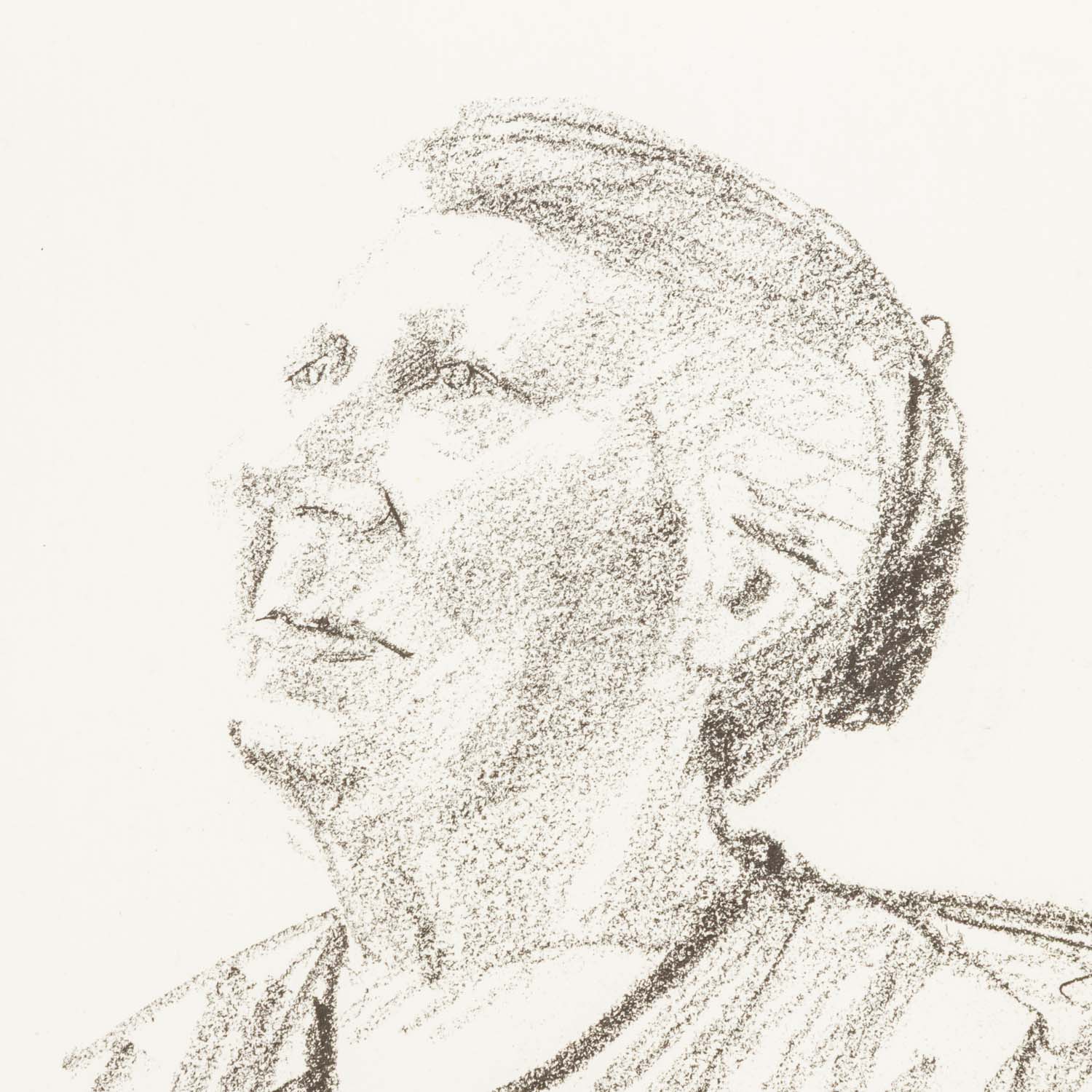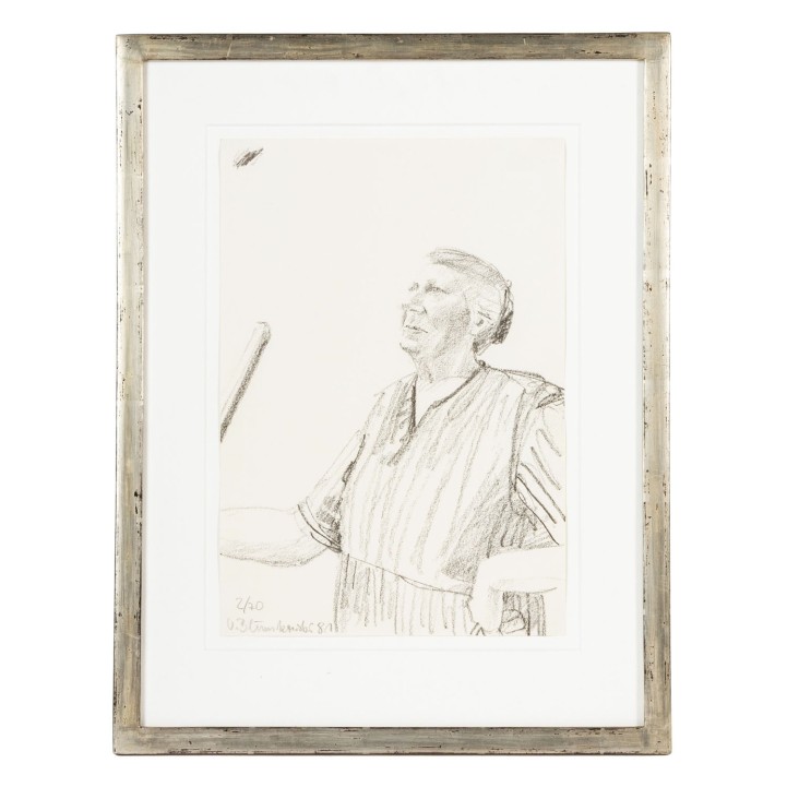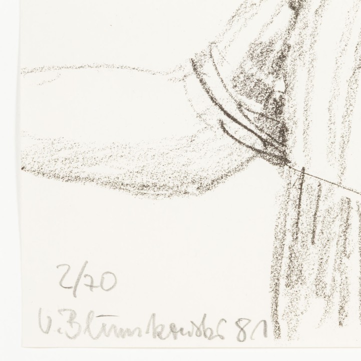 Lithographie/Papier, darunter mit Bleistift von Hand num. 2/70, signiert und datiert, HxB: Blatt ca. 38x26 cm, Außenmaße Rahmen ca. 55x43 cm. Alters- und Knickspuren. Mit Passepartout in verglastem Rahmen.
