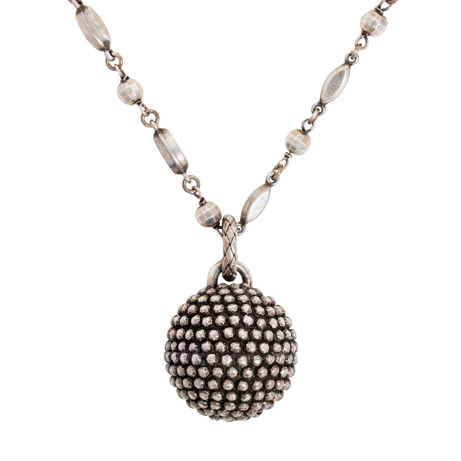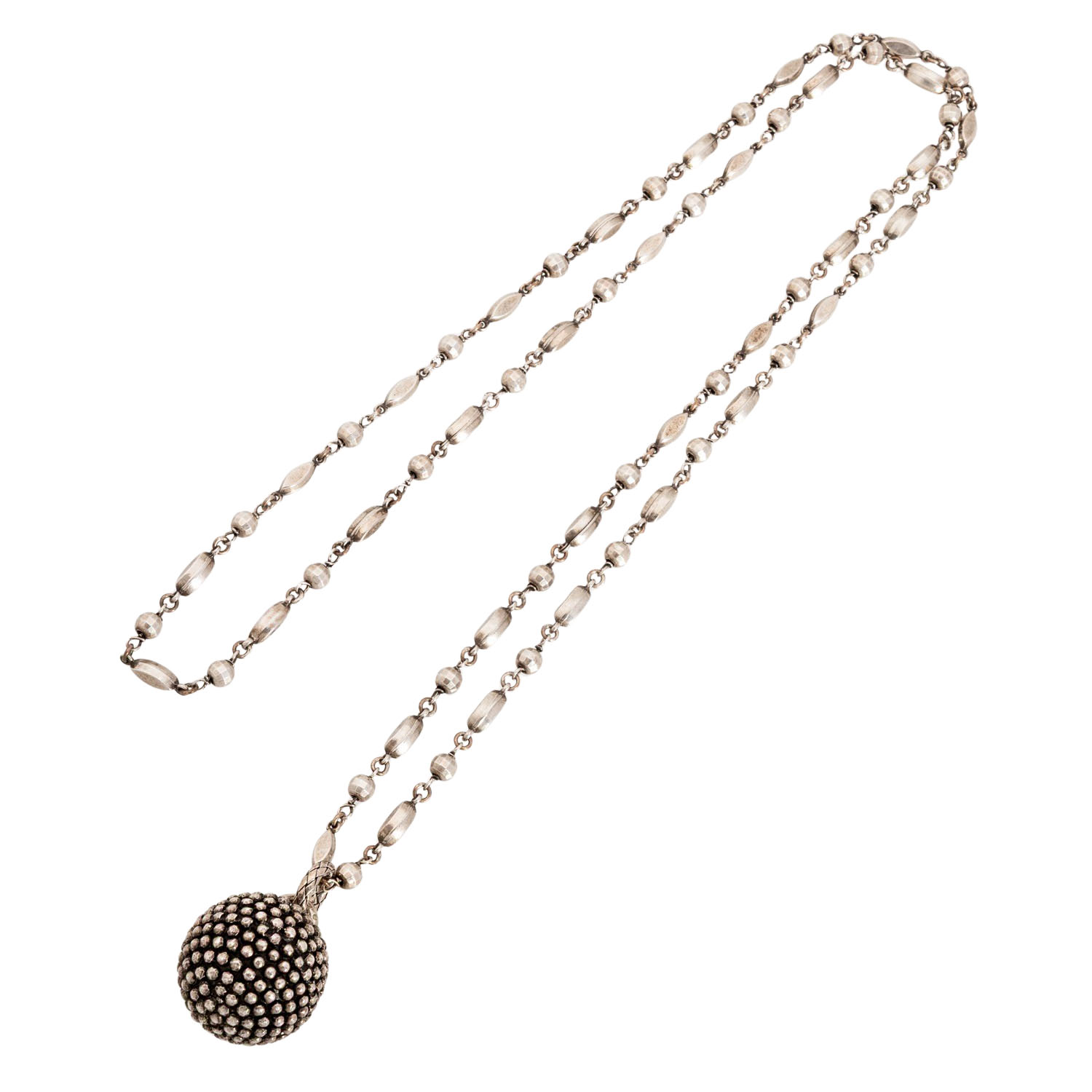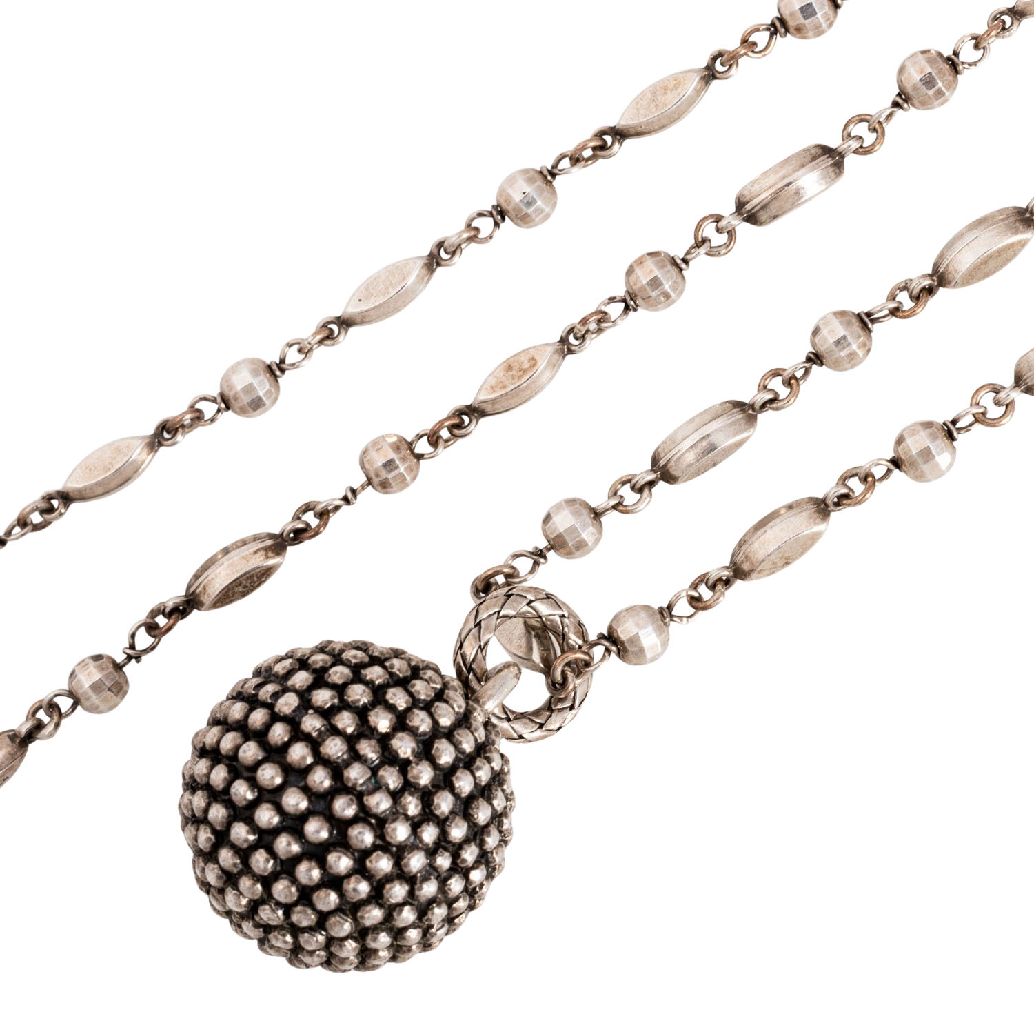 mit Anhänger, NP: ca. 1.500 €, Silber 925, 53,3 g, L: ca. 88 cm, Anhänger D: ca. 26,7 mm, 20./21. Jh., leichte bis mäßige Nutzungsspuren, sign. 'BV'.