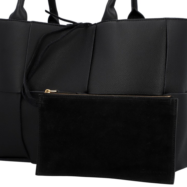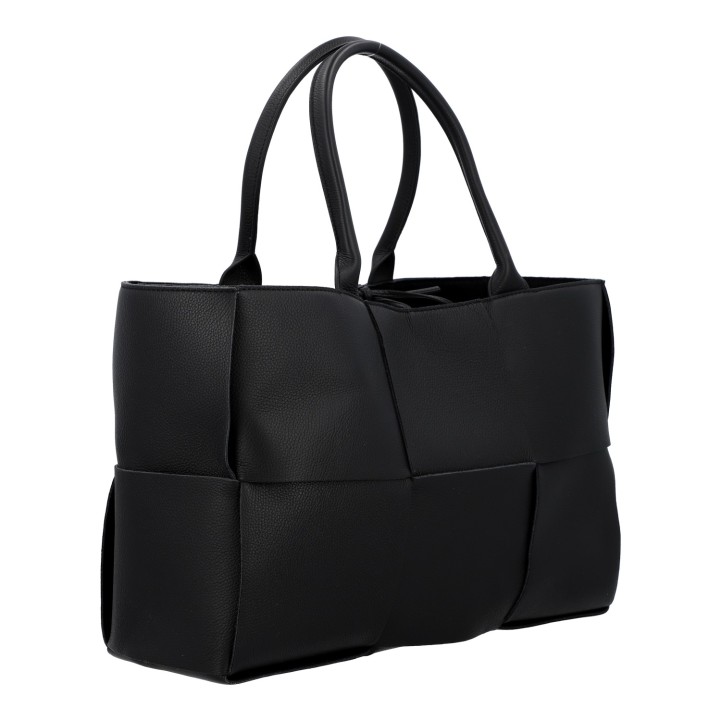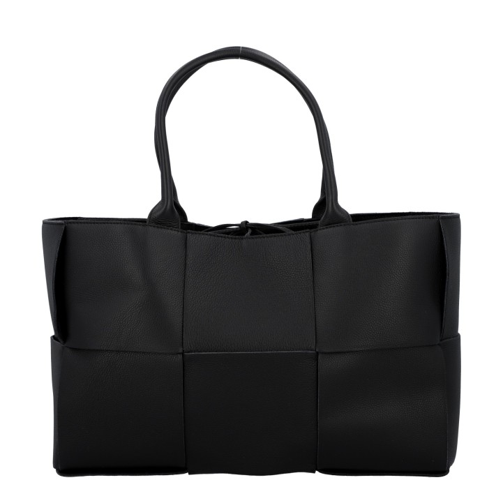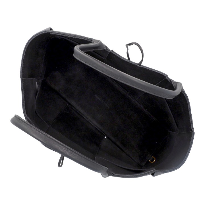 Gebondetes Intreccio-Leder in Schwarz mit Doppelhenkel. Verschluss durch Schnürung.