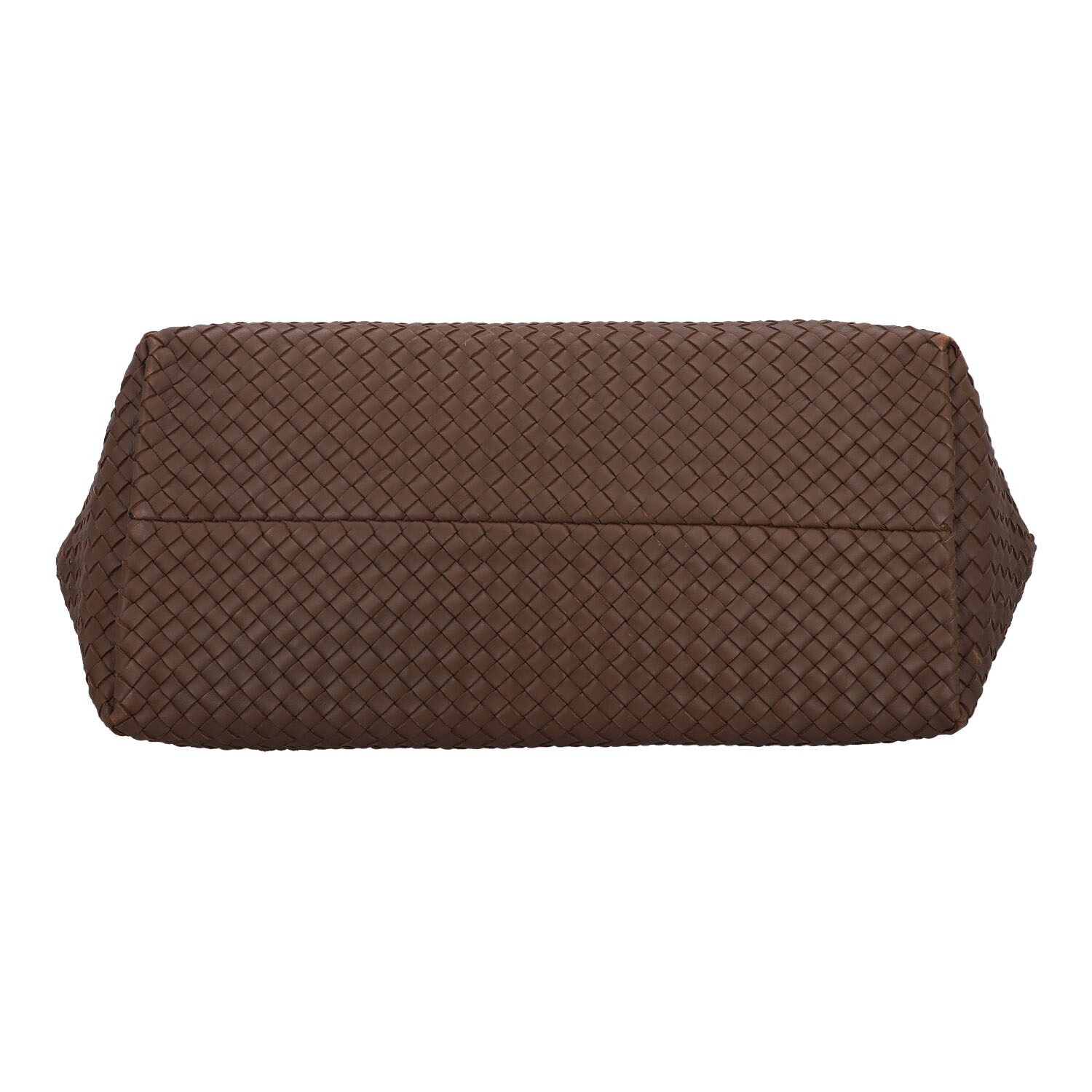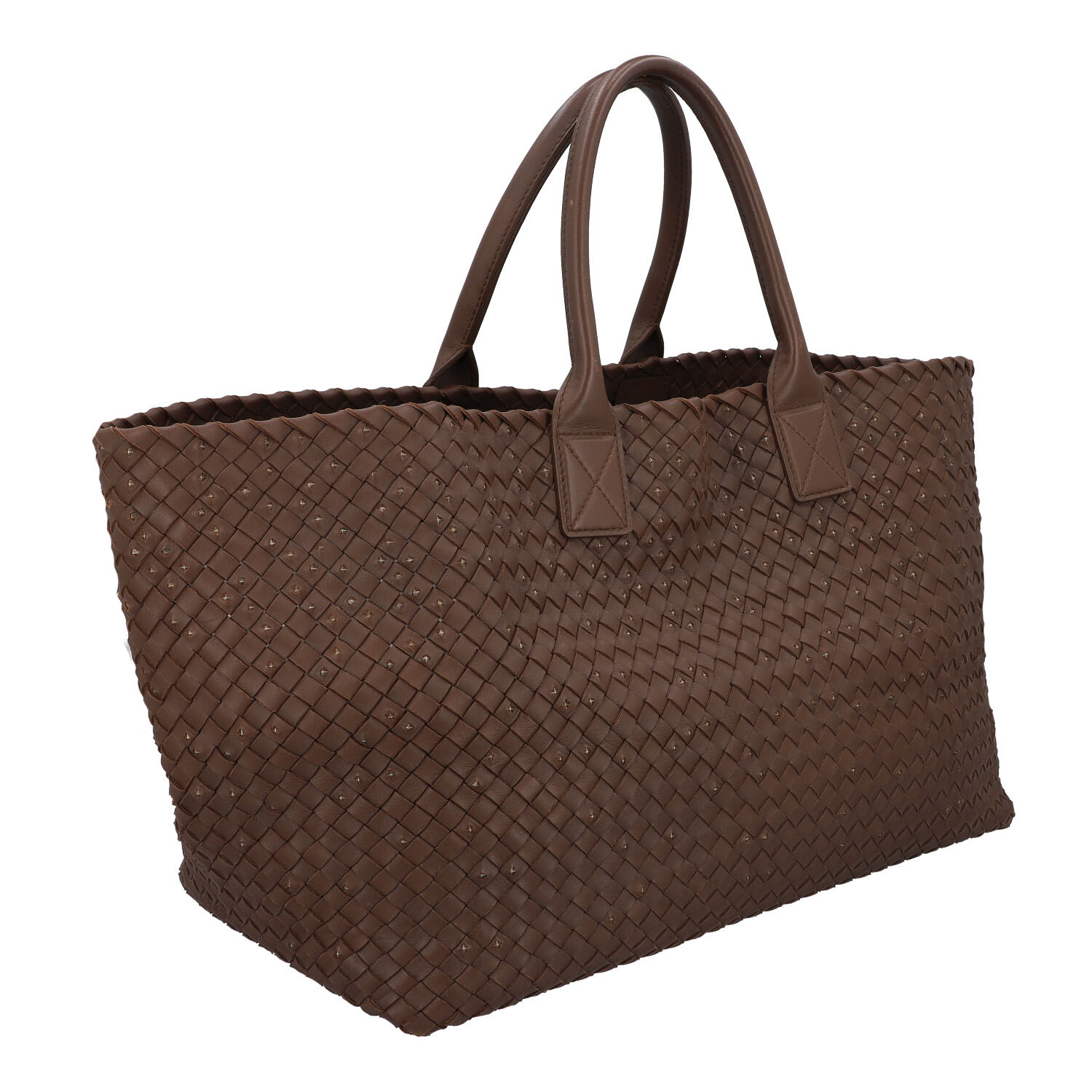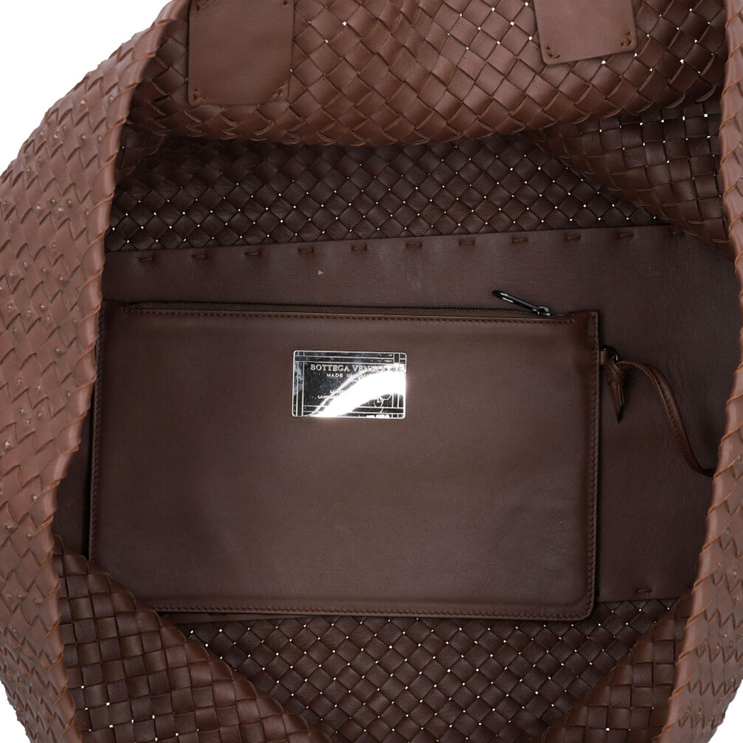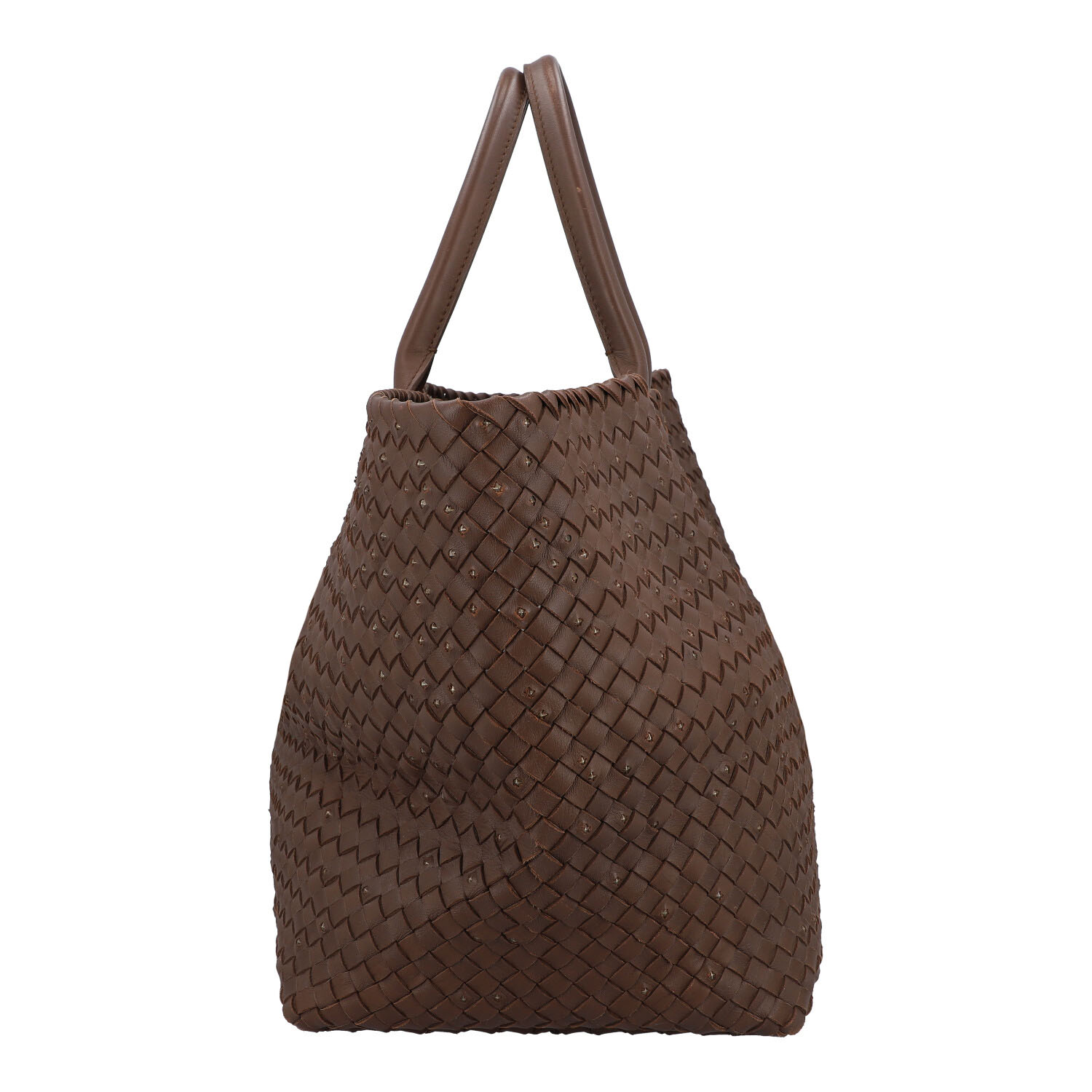 NP. ca.: 9.800,-€. Limitierte Edition 0.312 / 1.000. Intreccio Leder in Dunkelbraun mit silberfarbenem Nietendekor. Innenraum mit abnehmbarer Pochette. Staubbeutel anbei. Leichte Gebrauchsspuren und Abrieb vorhanden. 45 x 21 x 31 cm.