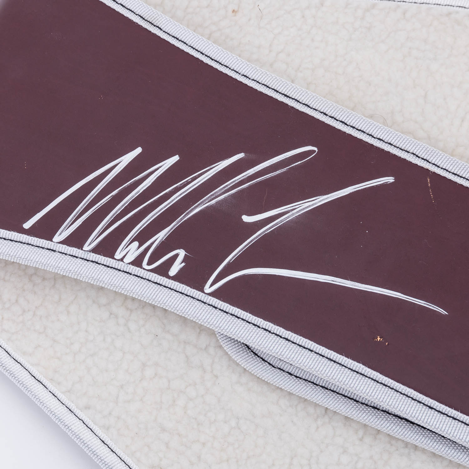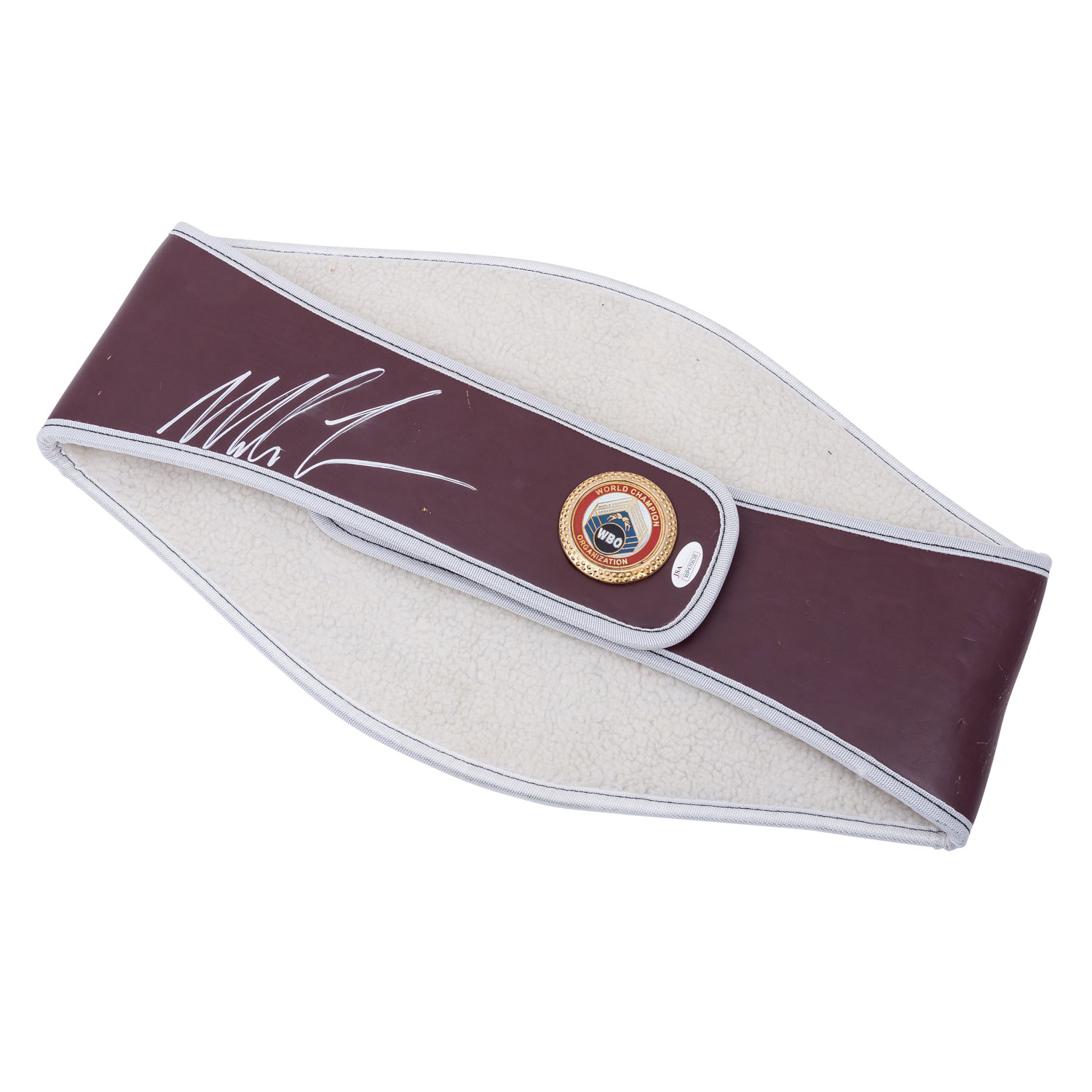 im Maßstab 1:1 (Länge ca. 125cm), mit Autogramm des Boxers und goldfarbenen Applikationen mit den Aufschriften 'MIKE TYSON'/'HEAVYWEIGHT CHAMPION'. Anbei JSA Zertifikat und Hologramm, Nr. WP470638. Teilweise beschädigt, starker Abrieb, Klebespuren an den Plaketten, mit Alters- und Lagerspuren.