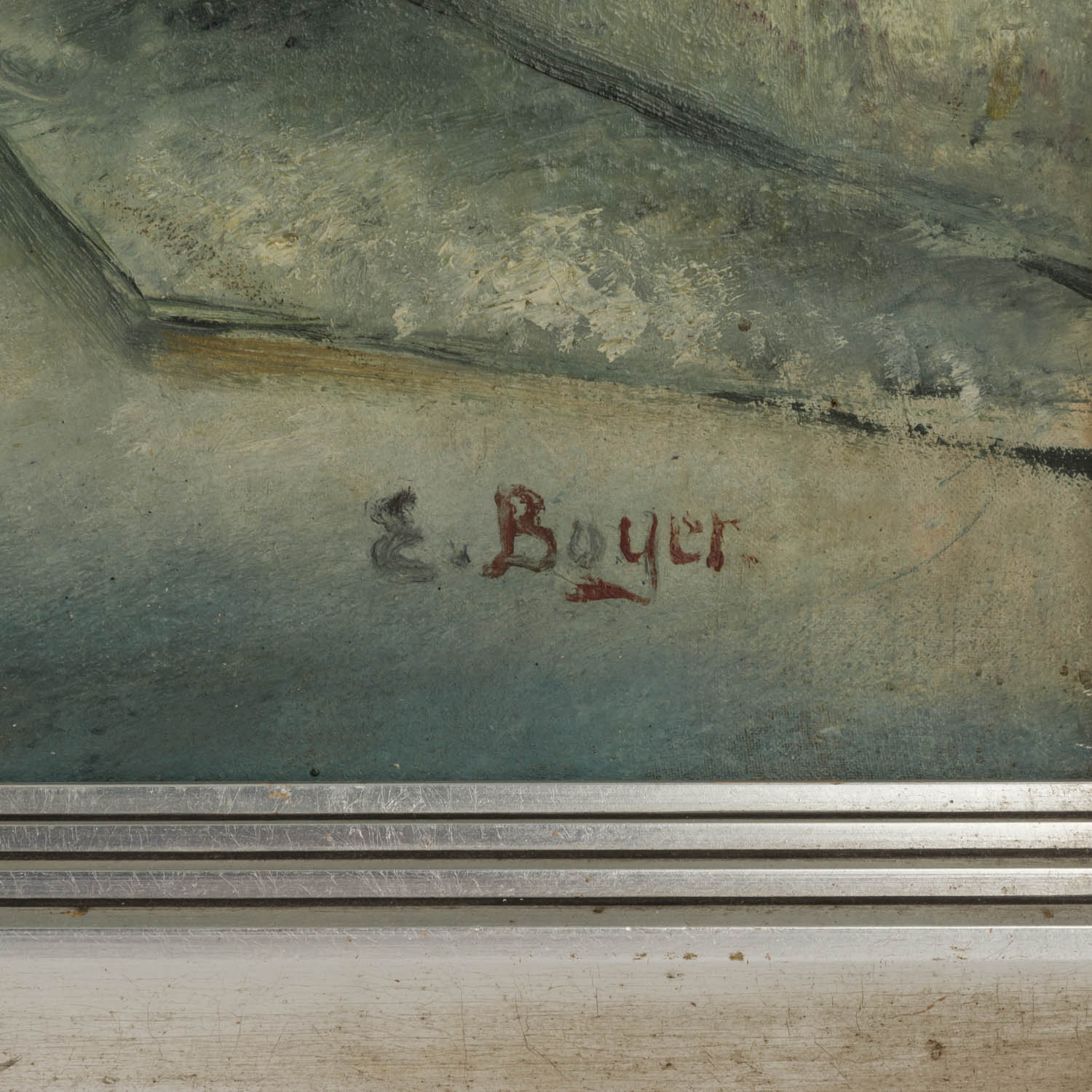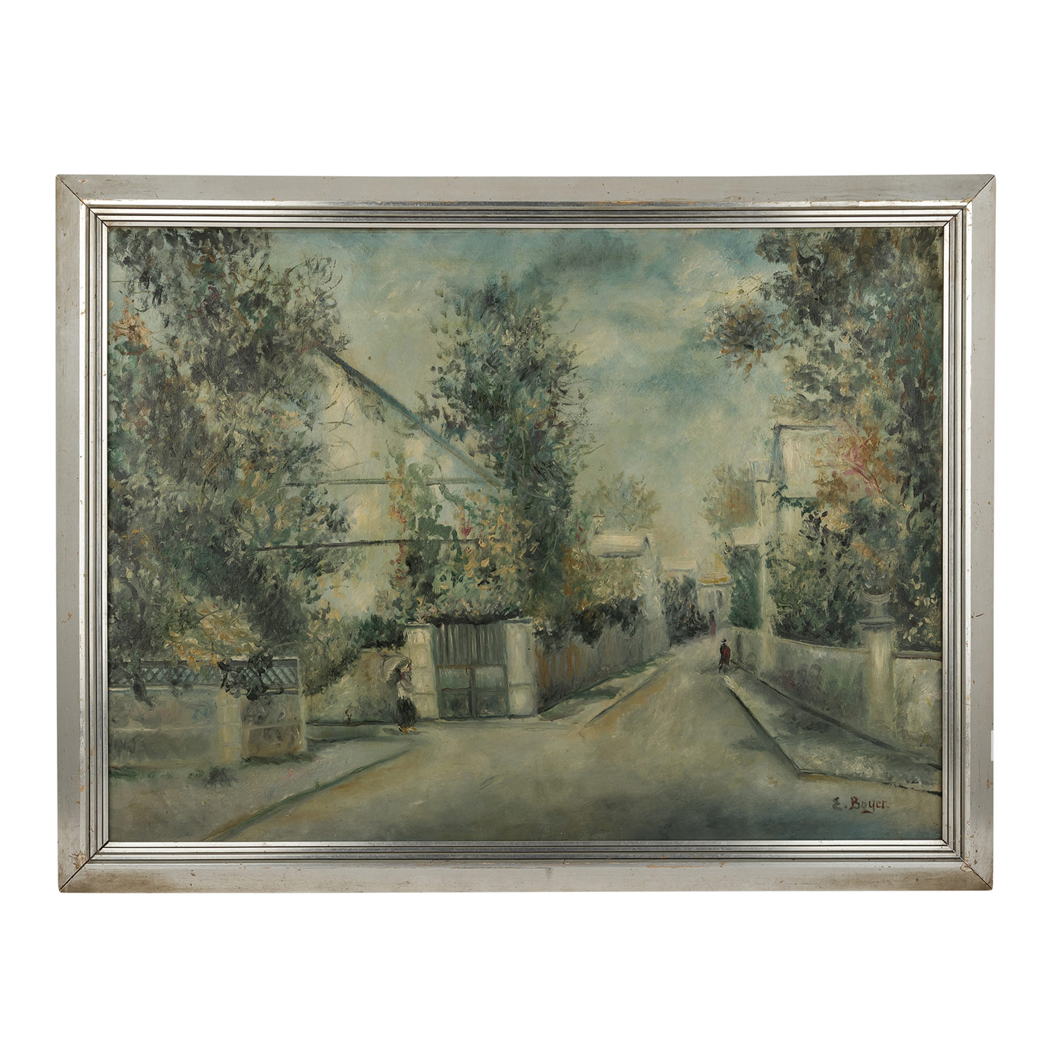 BOYER, E., WOHL Emile (1877-1948), "Vorortstraße in Paris", mit blühenden Bäumen und Sträuchern in den Gärten, u.re. sign., Öl/Leinwand, HxB: ca. 60x80 cm (89x68 cm mit Rahmen). Lw. part. min. gewellt, Craquelé, min. Farbabplatzer/-berieb, kleine Einrisse mittig (mit Klebestreifen hinterlegt). Mit Rahmen (Kanten besch.).