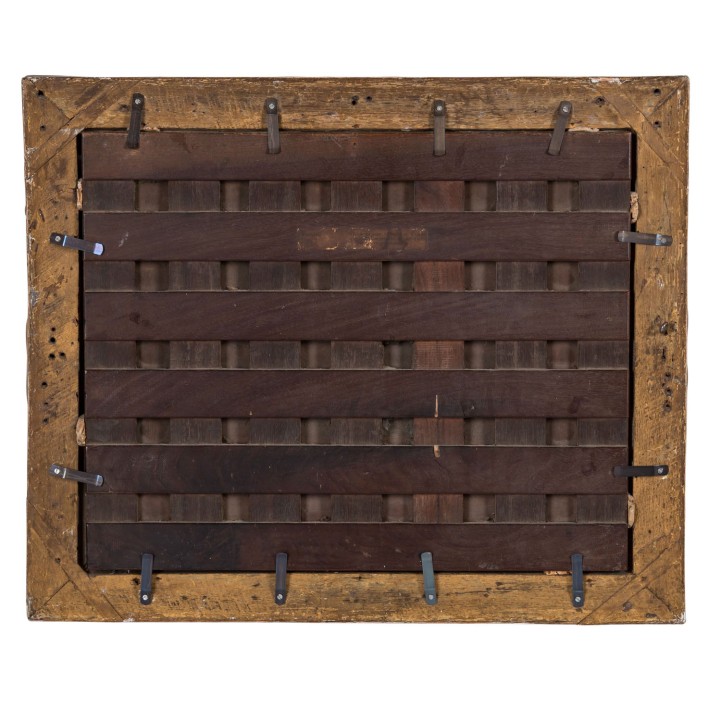 Öl/Kupfertafel auf parkettierte Holztafel montiert, HxB: Kupfertafel ca. 31,5x40 cm, Holztafel ca. 33x41 cm, Außenmaße Rahmen ca. 41x50 cm. Alters- und Beriebspuren, Kratzer, restauriert und retuschiert. Mit Rahmen, mit Plakette mit Künstlerbezeichnung. ANBEI RESTAURIERUNGSBERICHT mit Zuschreibung.