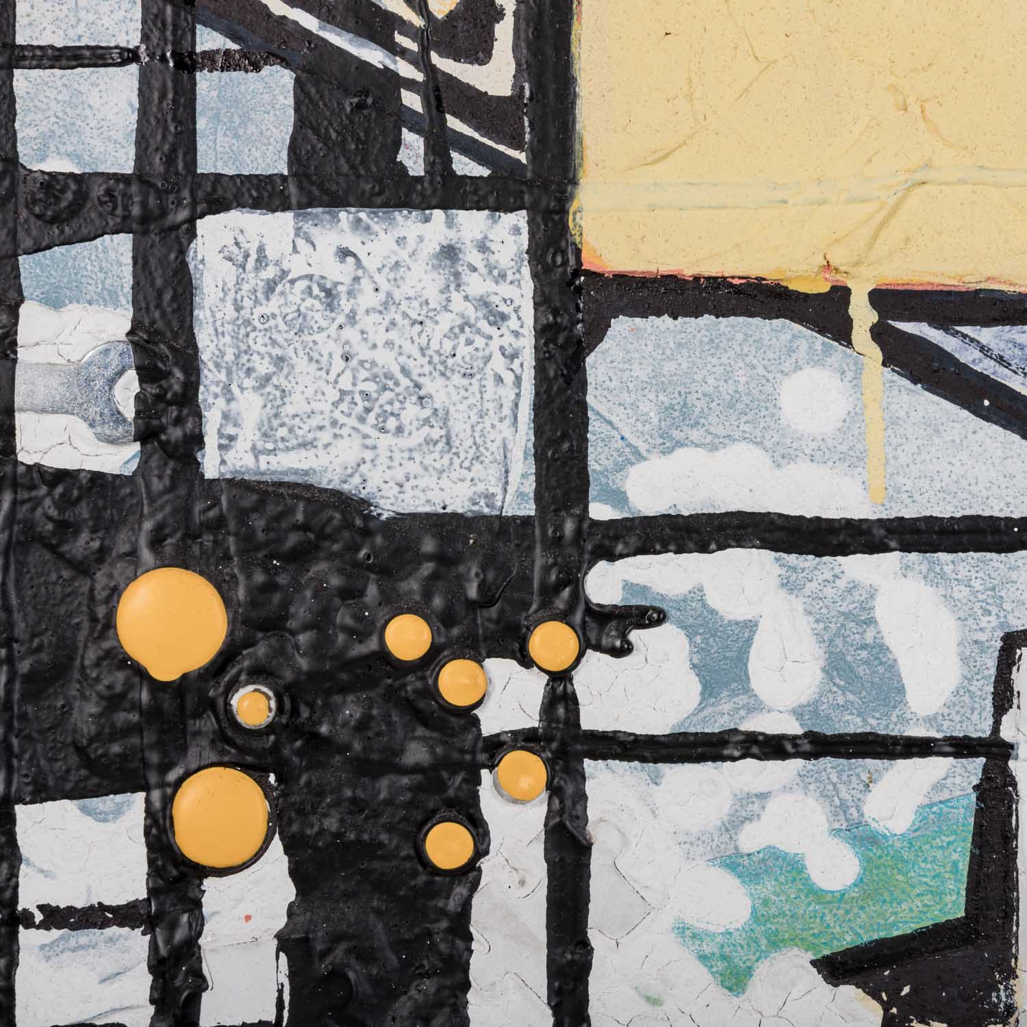 rückseitig signiert, datiert und bezeichnet: THOMAS BRIX / 2012 / 'Ohne Titel'. Mischtechnik mit Collage auf Platte, HxB: ca. 80 x 80 cm. Alters- und Beriebsspuren. Ohne Rahmen. PROVENIENZ: Vom Künstler erworben.