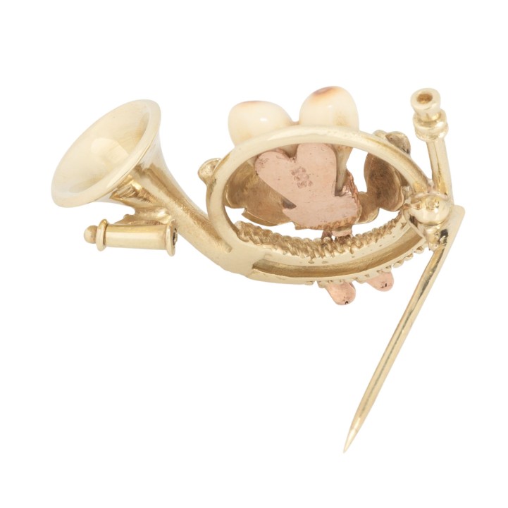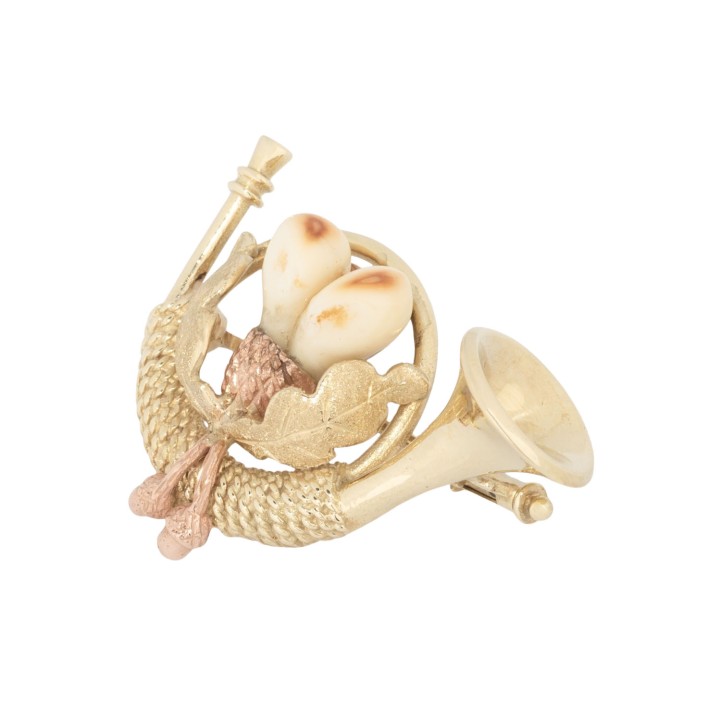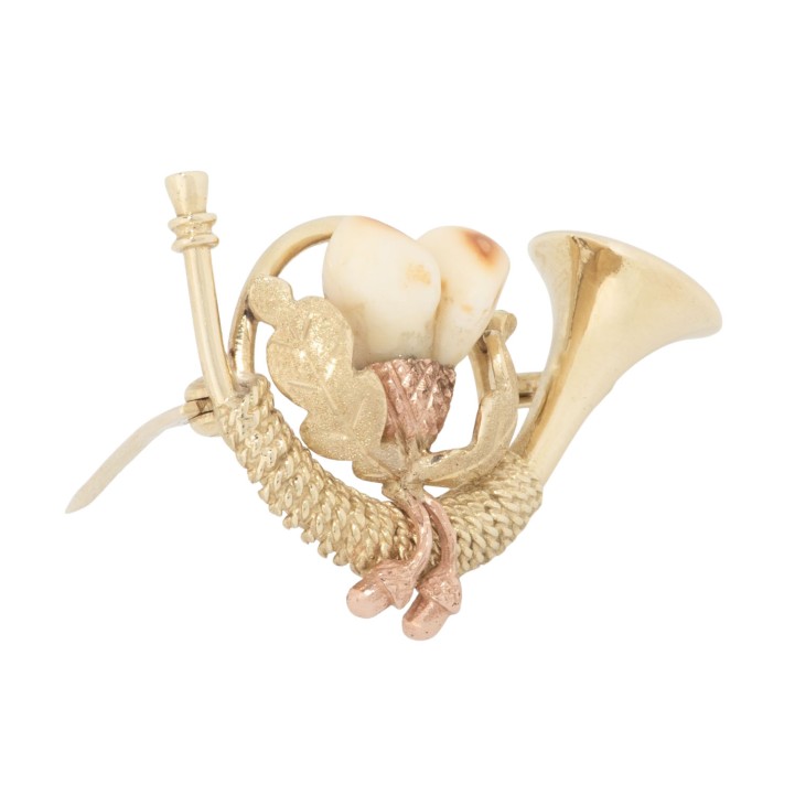 GG 14K, 10,7 g, L: ca. 3,3 cm, B: ca. 2 cm, Ende 20. Jh., leichte Tragespuren.