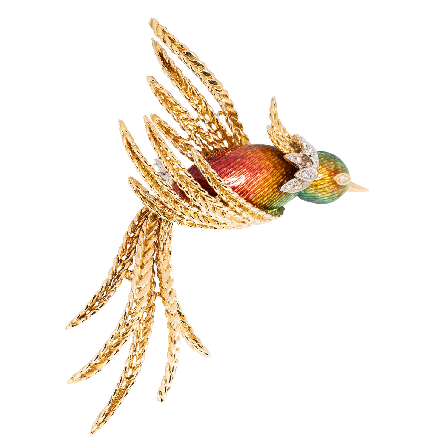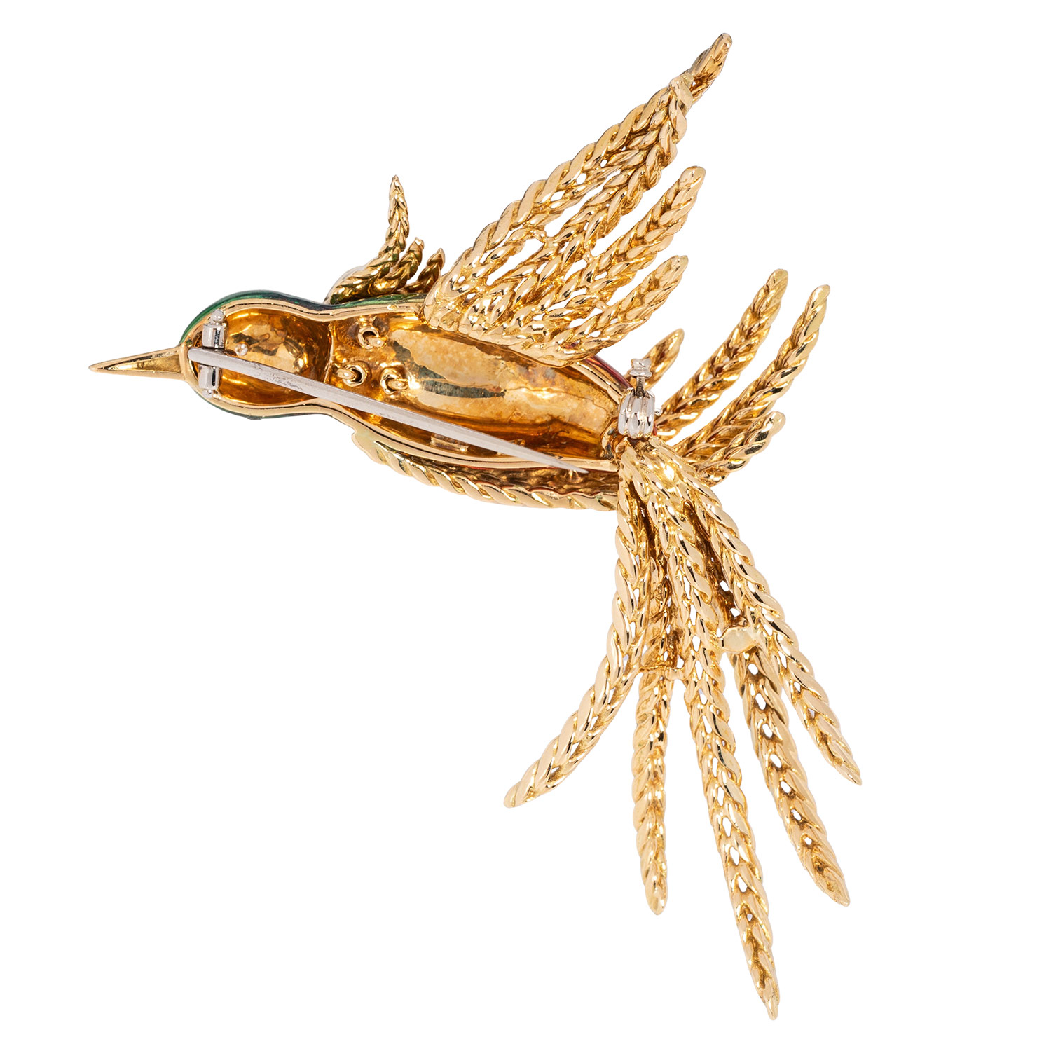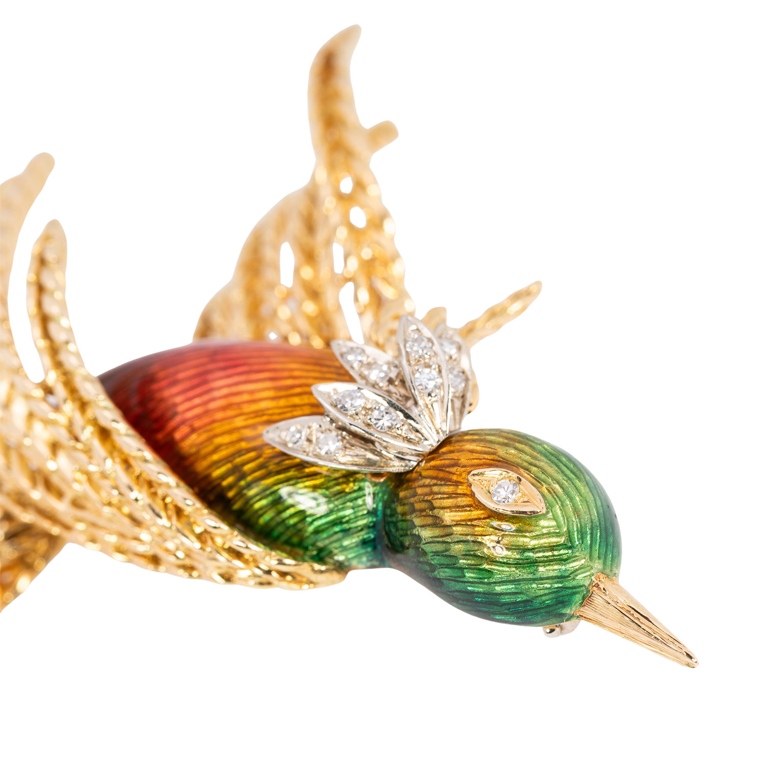 Brosche 'Kolibri' mit polychrom-transparentem Email