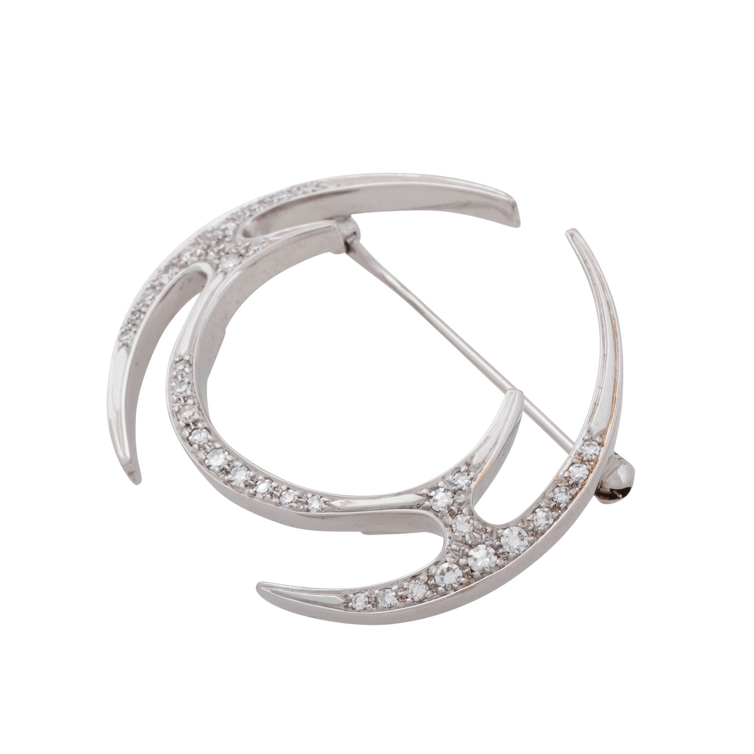 zus. ca, 0,60 ct, ca. WEISS (H)/VS, WG 18K,12,8 g, Maße: ca. 4,1 x 3,5 cm, 21. Jh, minimale Tragespuren, mit Herstellerpunze 'STALDER'.