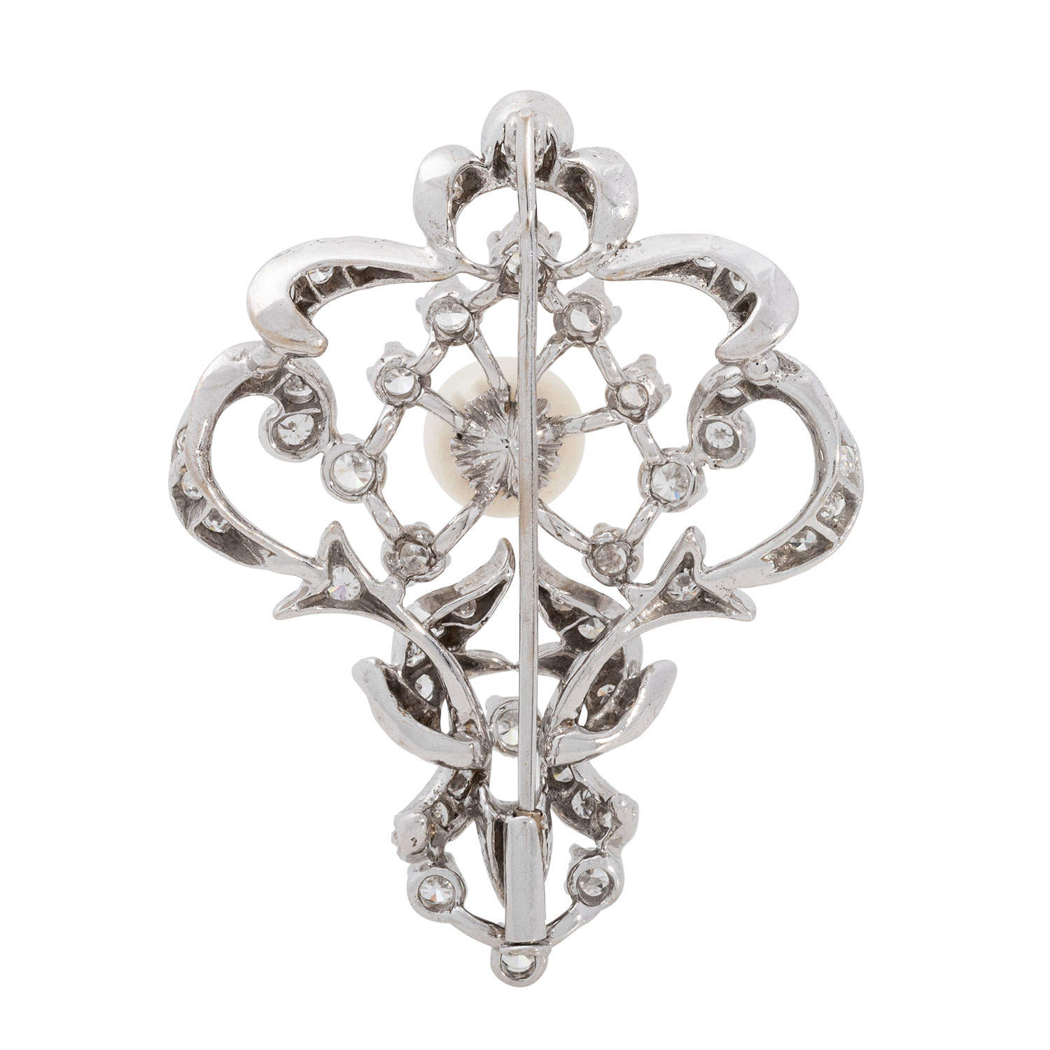 Brosche mit Akoyaperle und 24 Diamanten zus. ca. 1,18 ct,