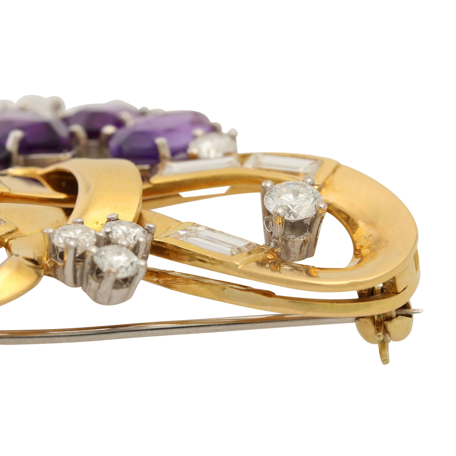 Brosche mit Amethysten und Diamanten von zus. ca. 2,4 ct,