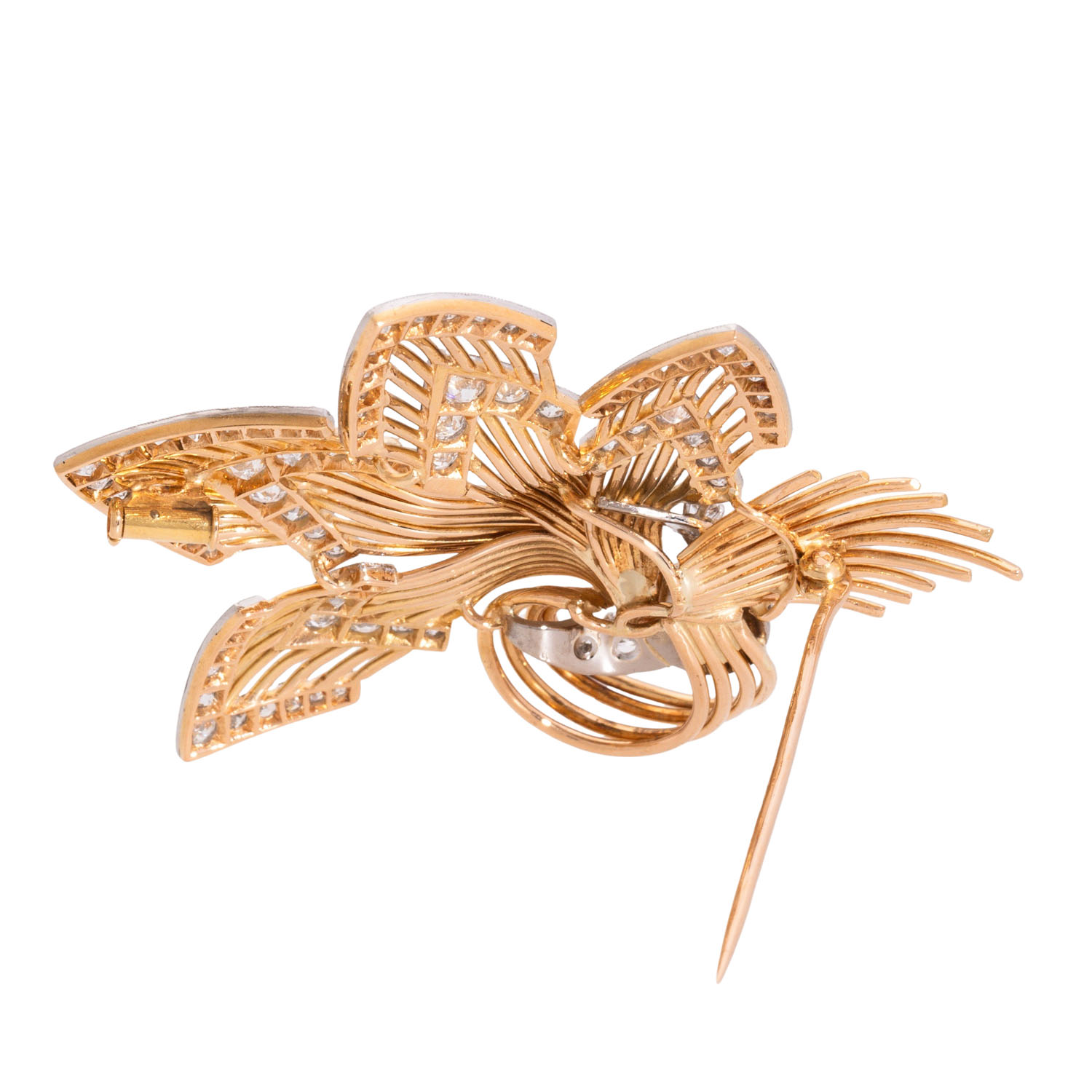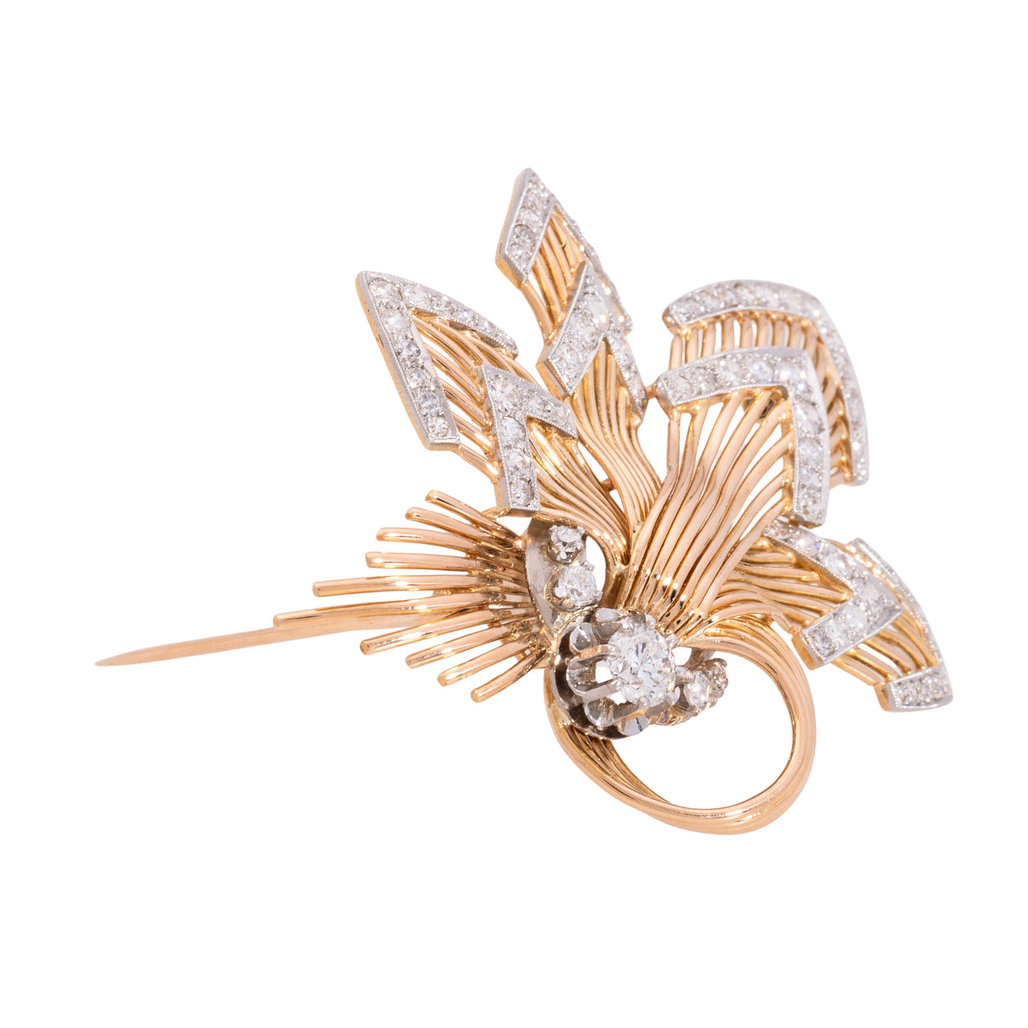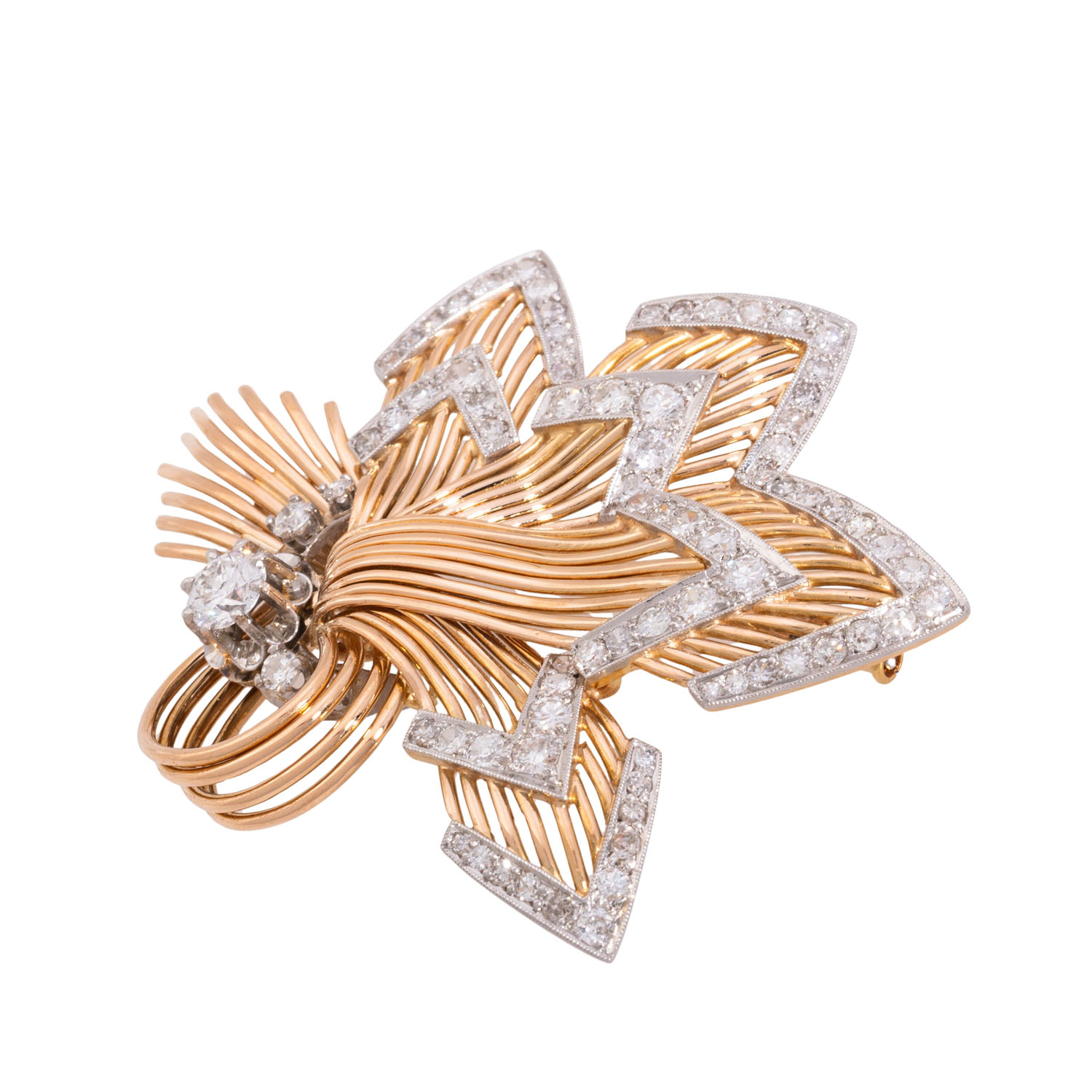 Brosche mit 8 Brillanten und 60 Achtkantdiamanten