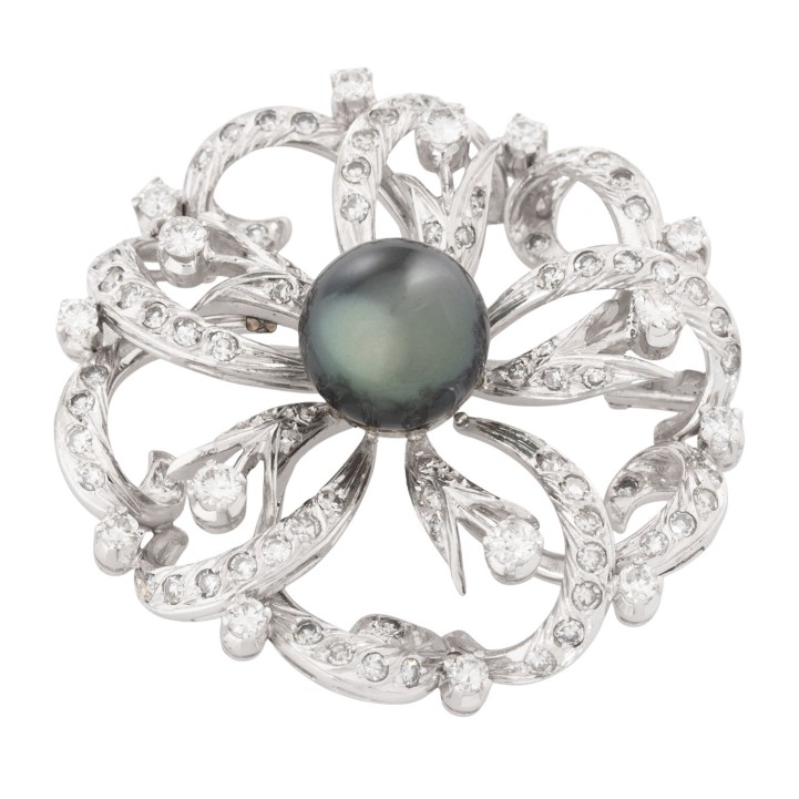 Brosche mit feiner Tahiti Zuchtperle