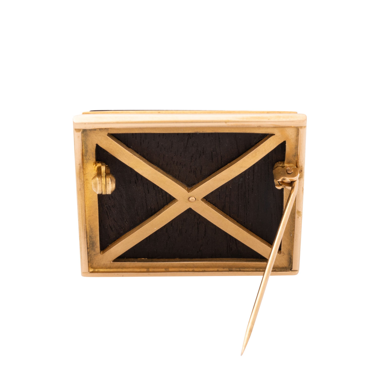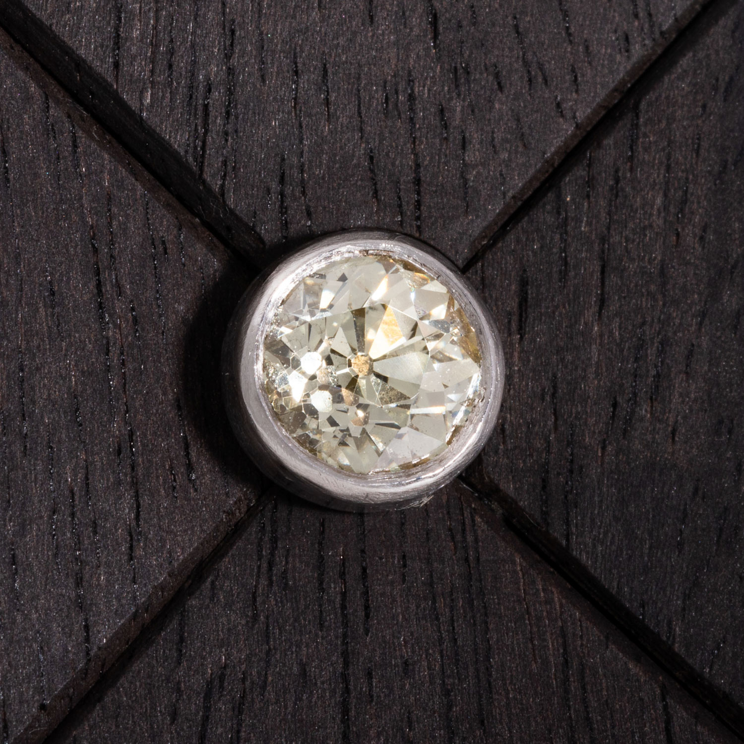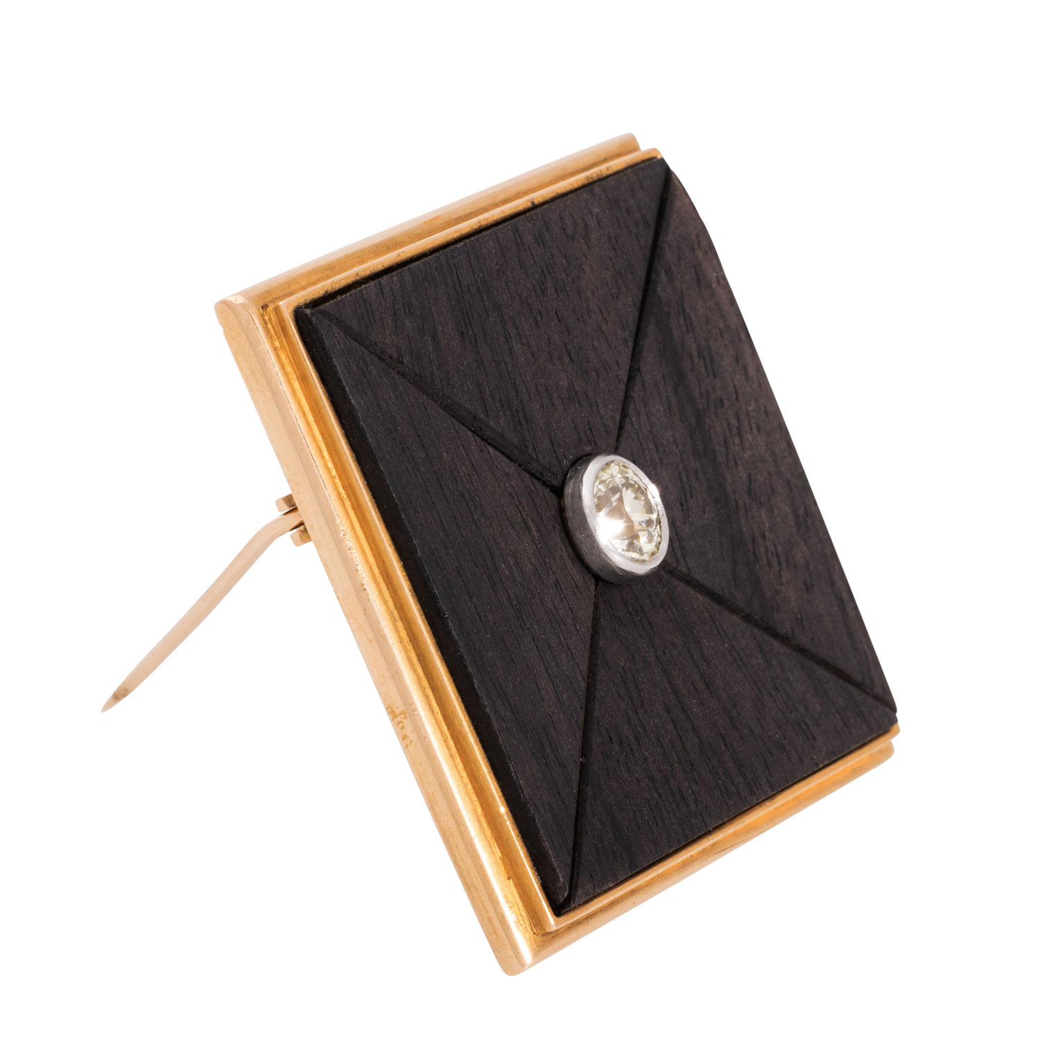 ca. 0,55 ct, ca. GET (M)/VS-SI, Holzeinlagen, GG/WG 18K, 19,5 g, L x B: 36 x 36 mm, 21. Jh., minimale Tagespuren, punziert 'K', handgefertigtes Unikat.