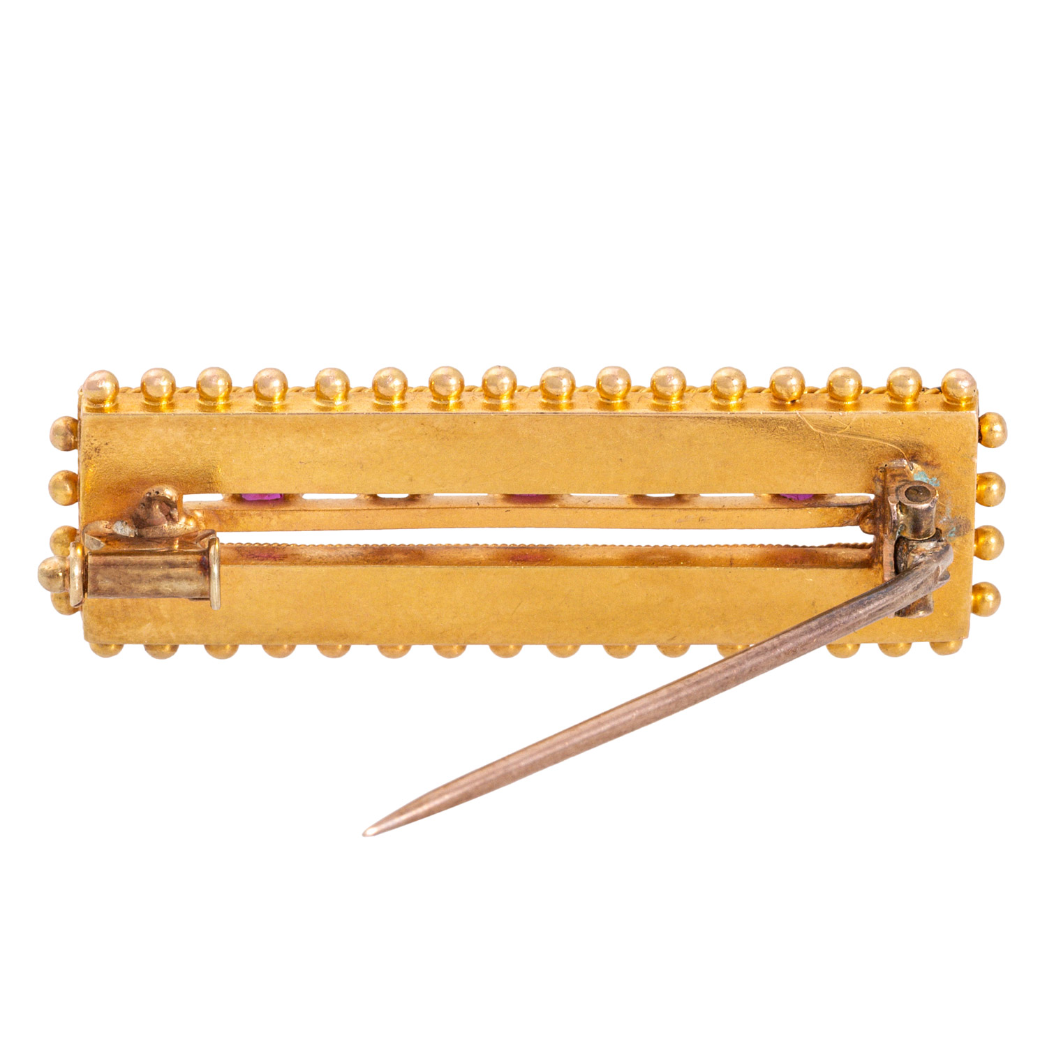 3 Rubine je ca. 3,0 x 2,5 mm und 2 Altschliffdiamanten von zus. ca. 0,20 ct, gute bis sehr gute Farbe und Reinheit, GG 14K feinvergoldet, 1. H. 20. Jh., altersgemäß guter Zustand, kleinere Reparaturstellen erkennbar.