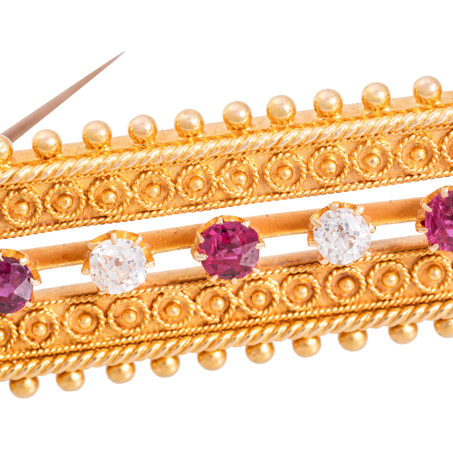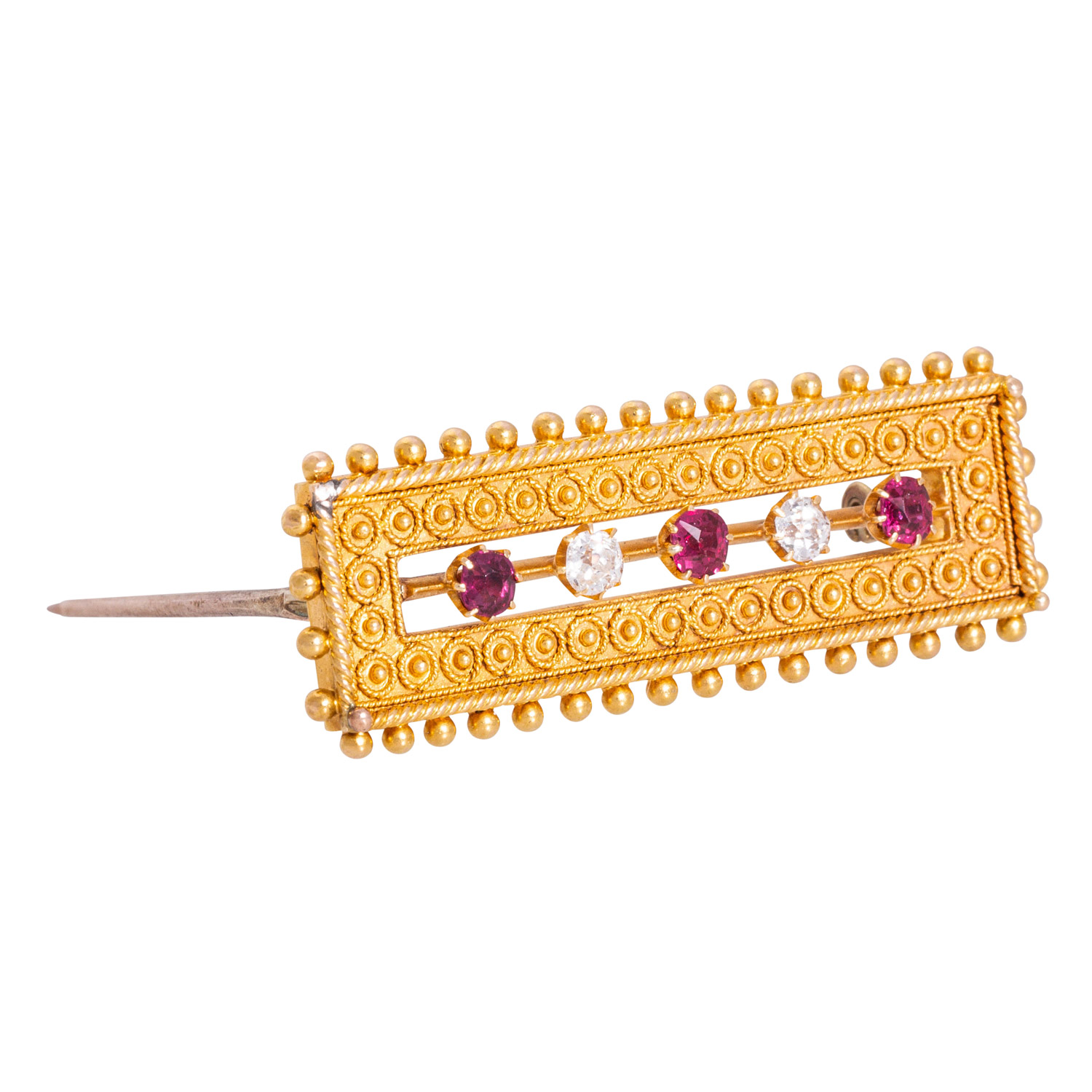 Fein granulierte Brosche mit Amethyst und Diamanten