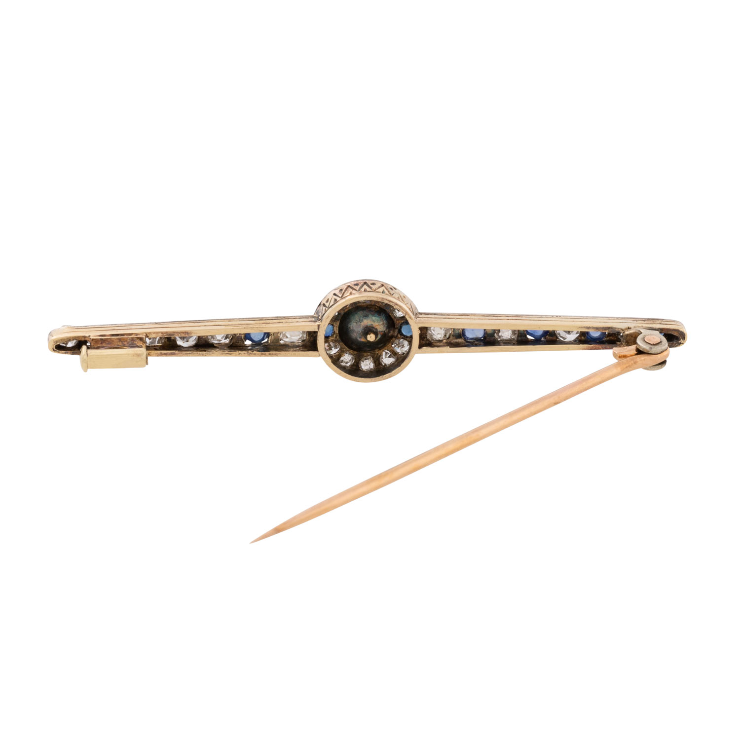 von zus. ca. 0,50 ct, versch. Schliffe u. Qualitäten, 2 Saphire verm. synthetisch, GG 10K, Fassungen Silber, 4 gr, L: ca. 6 cm, um 1900, Tragespuren.