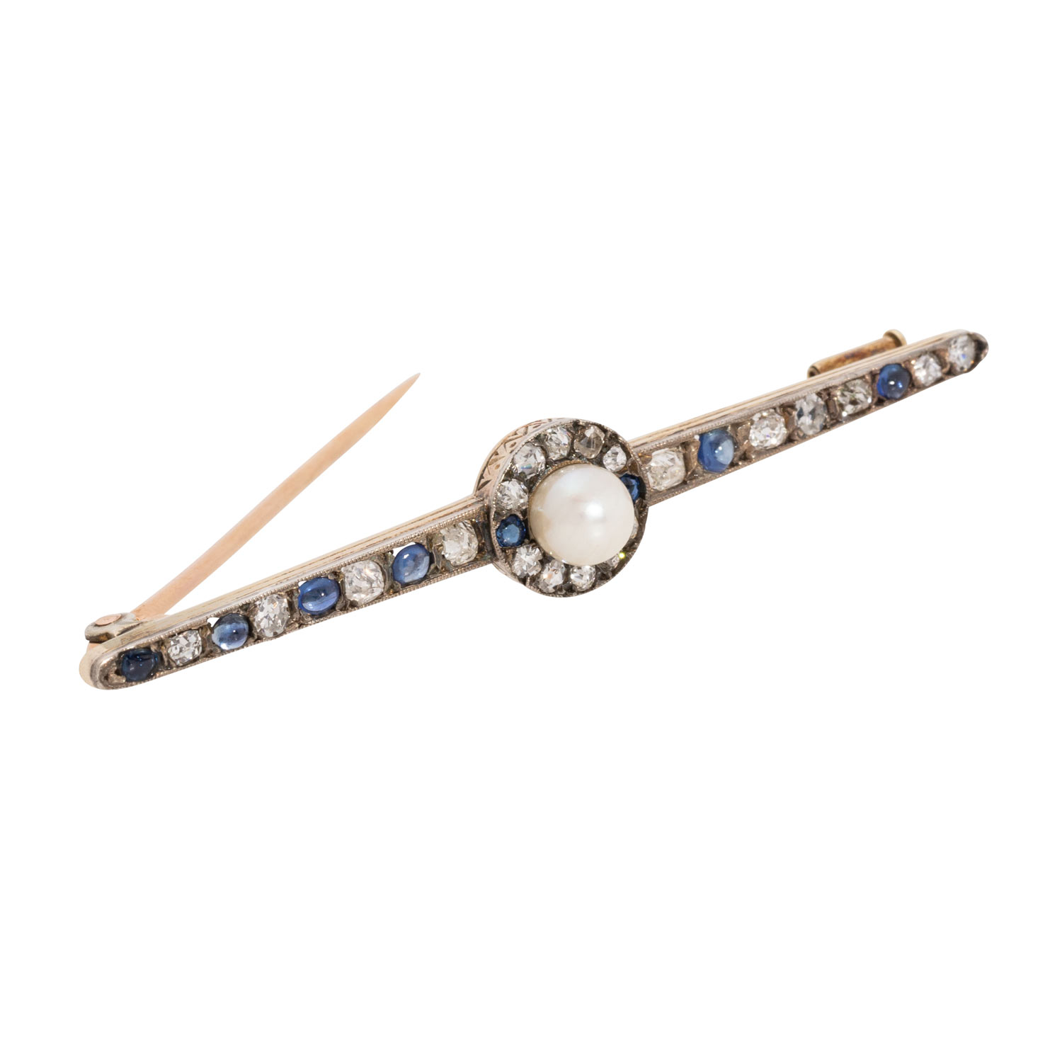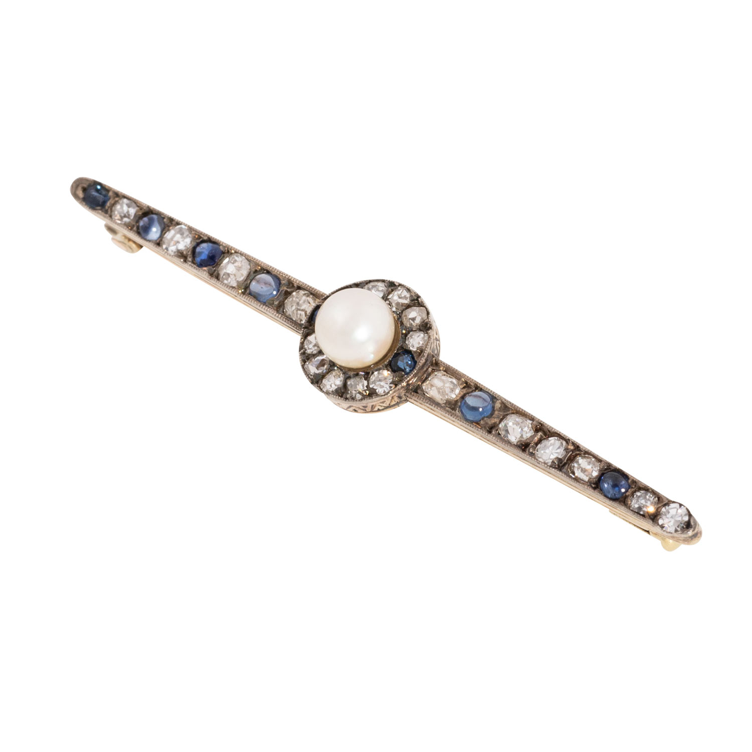 Jugendstil-Brosche mit 2 Akoyaperlen und 45 Altschliffdiamanten