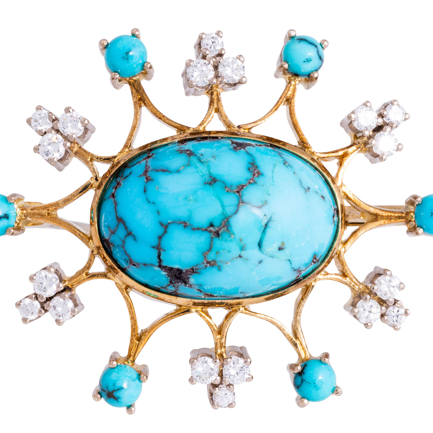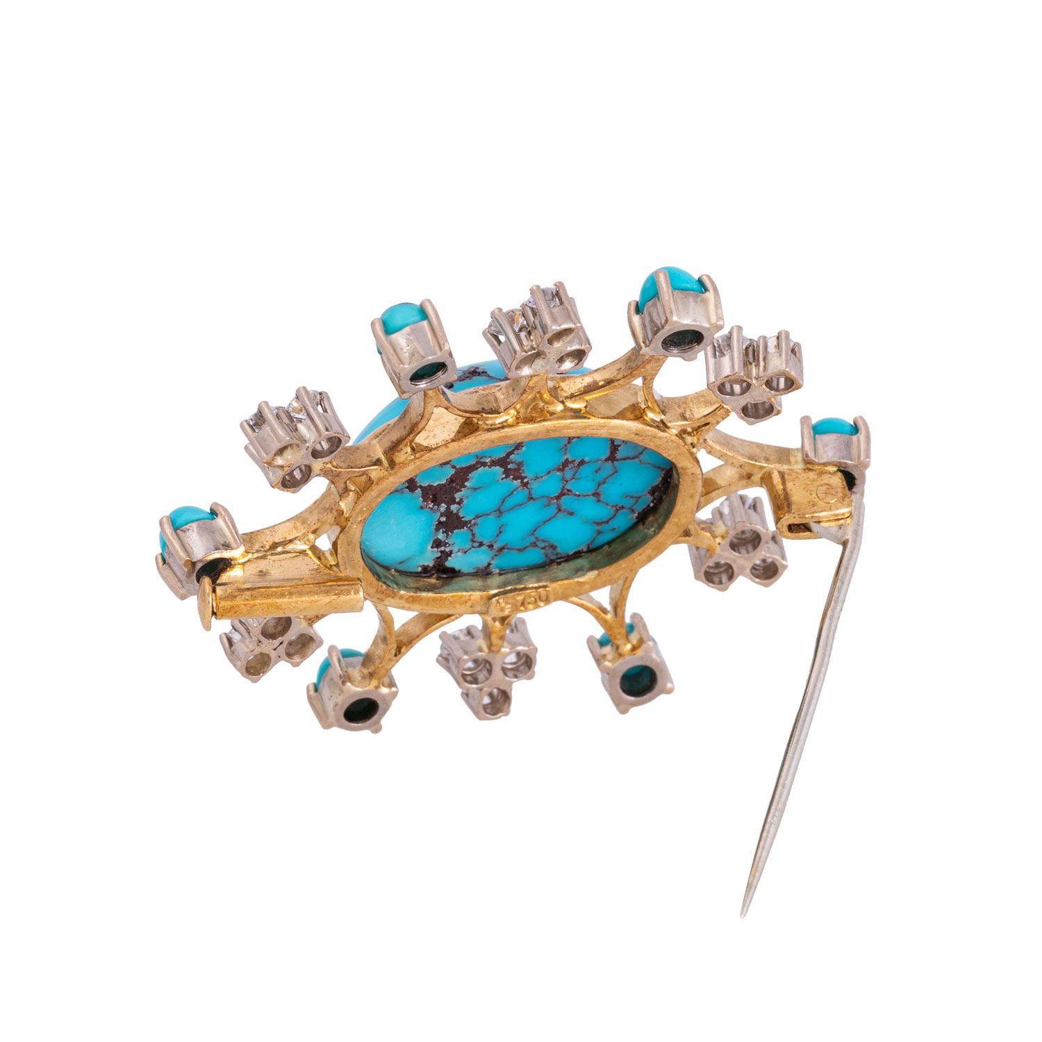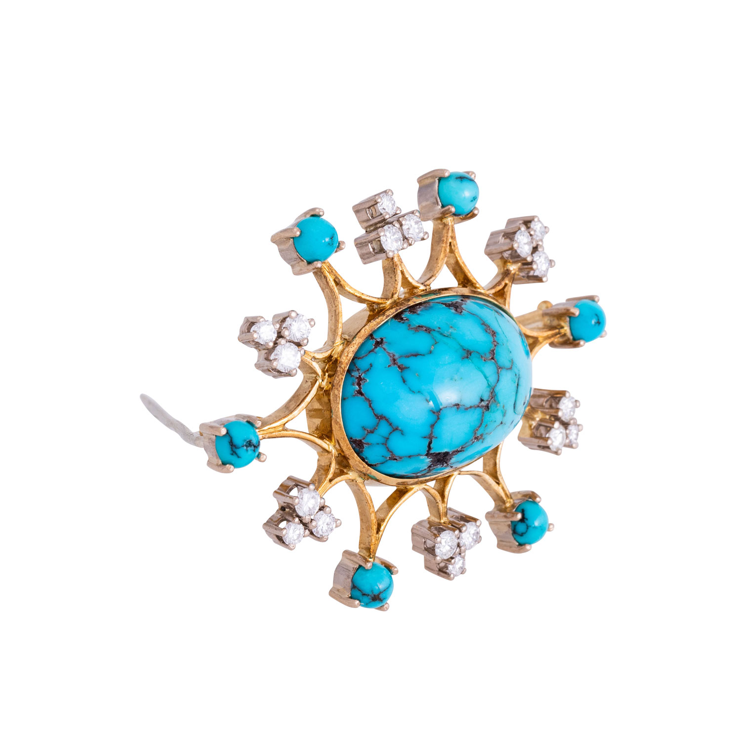 Brosche mit Türkisen und Brillanten zus. ca. 0,7 ct,