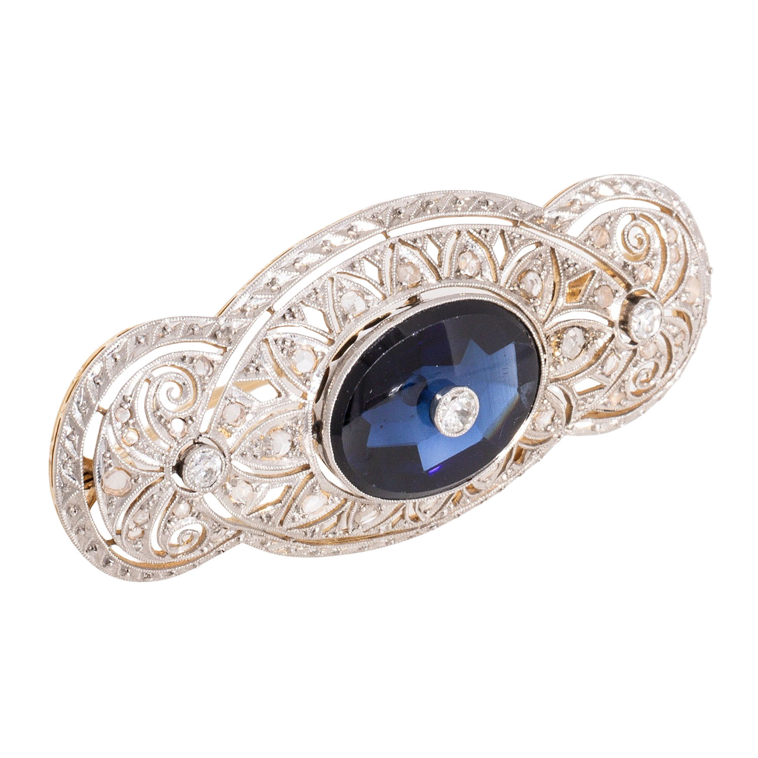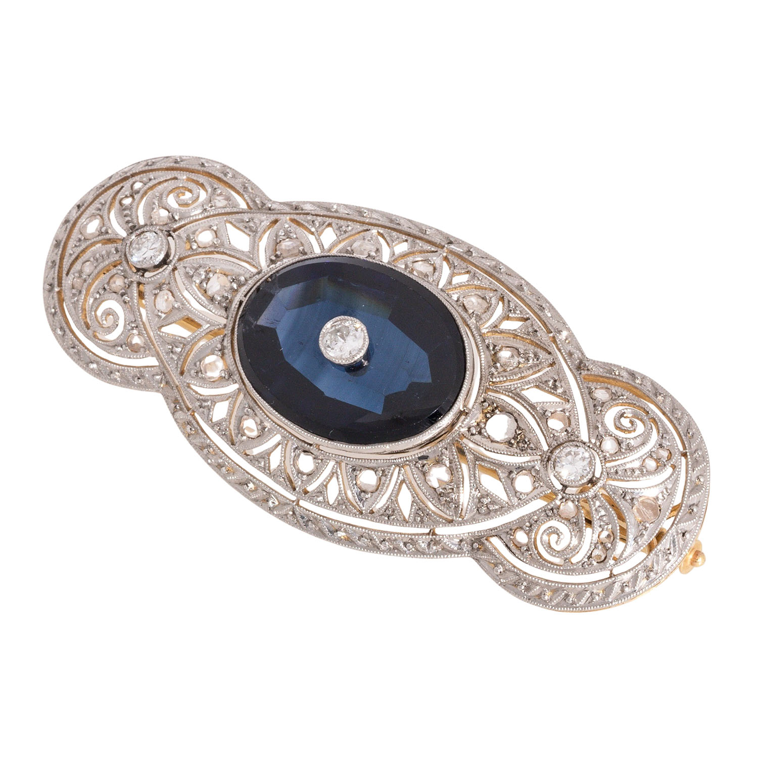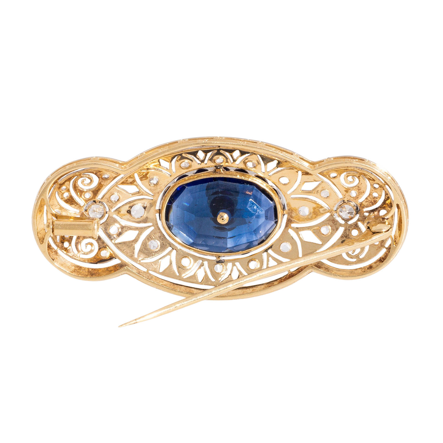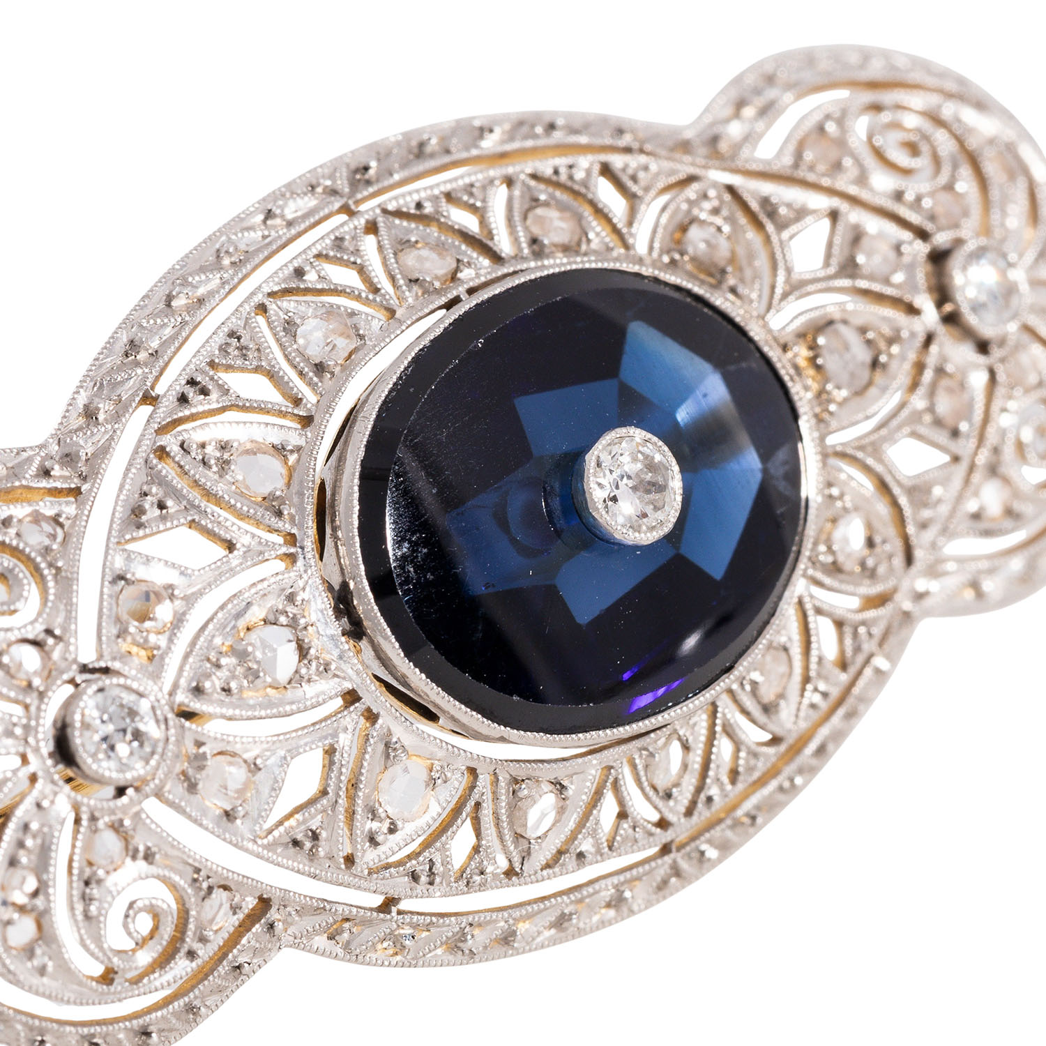 Reich besetzte Brosche mit 25 Saphiren und Diamanten