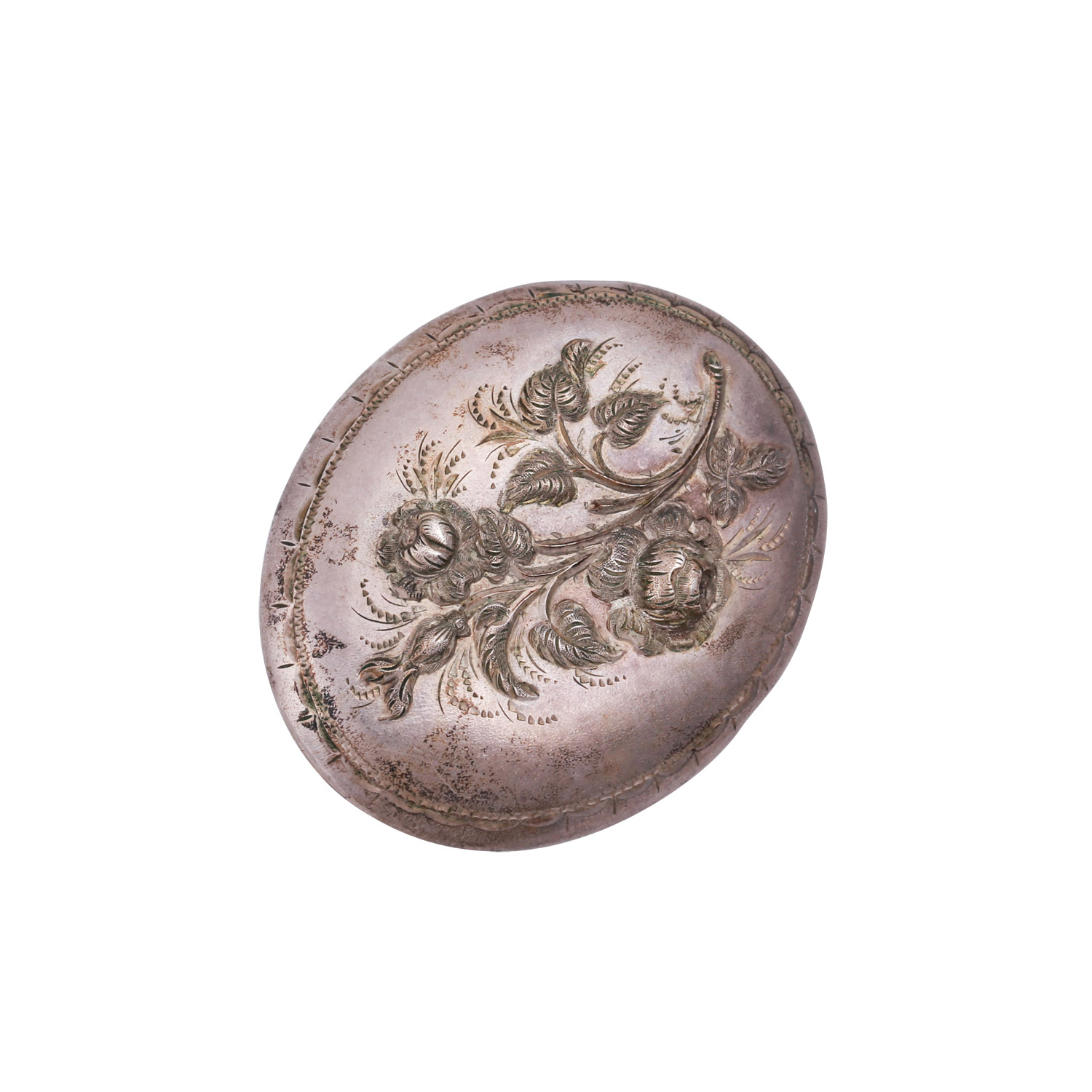 Brosche, ovale Form, Blumen darstellend. Silber.
