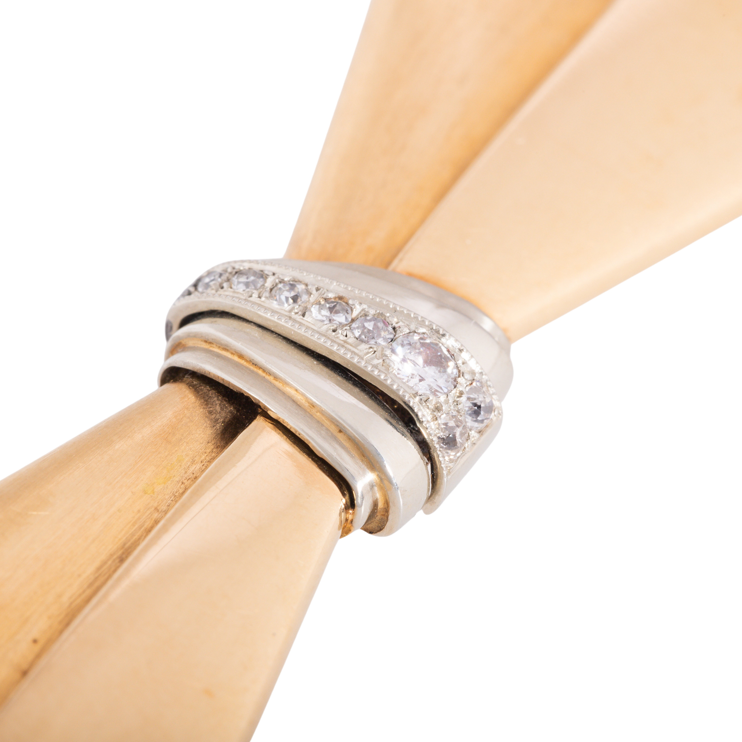 verschiedene Schliffarten, ca. 0,2 ct, mittlere Farbe und Reinheit, GG/WG 18K, 17,0 g, L x B: 20 x 65 mm, Mitte 20. Jh., leichte Tragespuren.