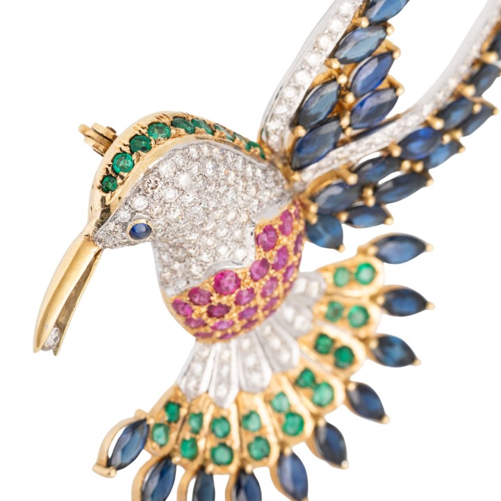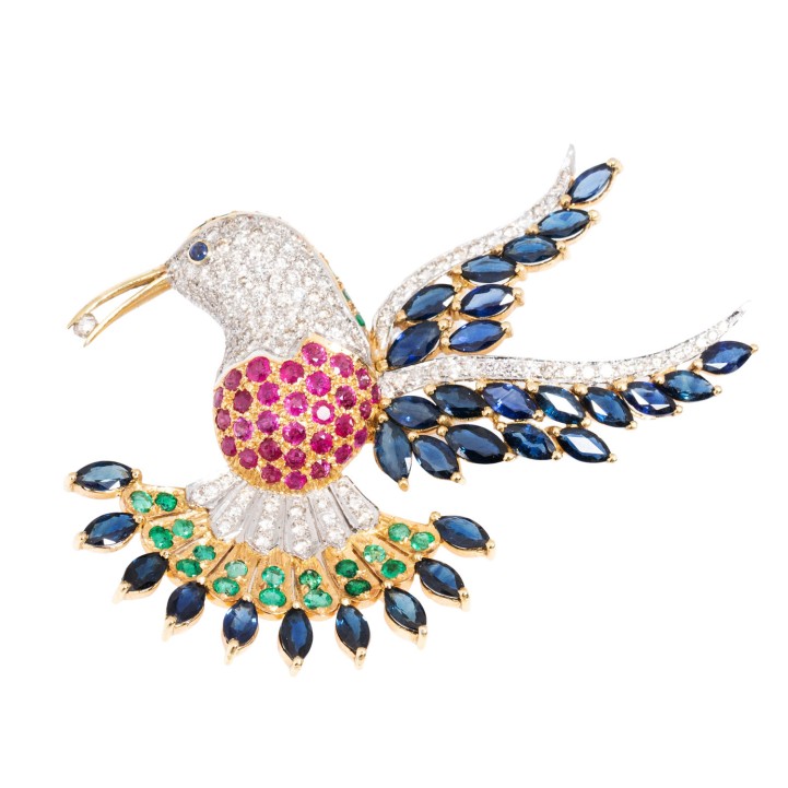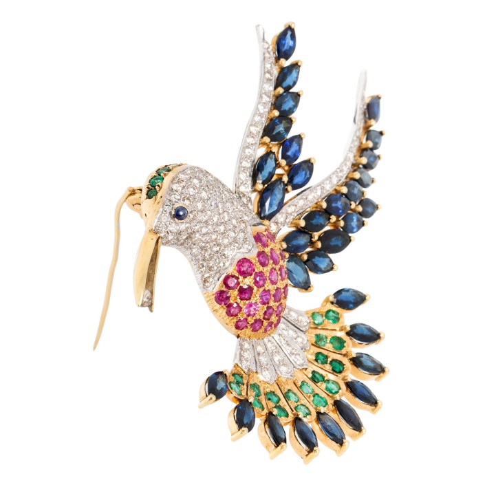 Brosche 'Vogel' mit Brillanten,
