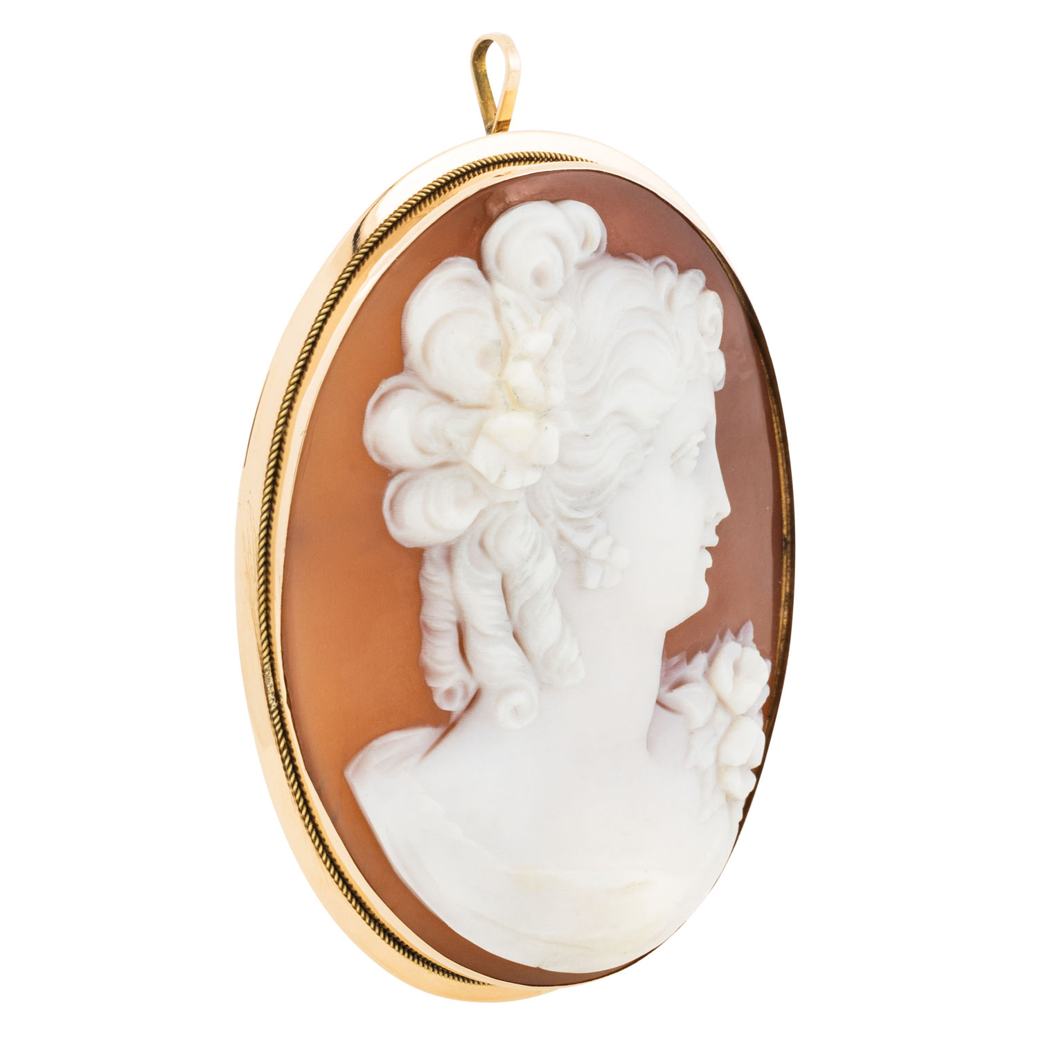 Brosche mit Muschelkamee 'Portrait einer Göttin'