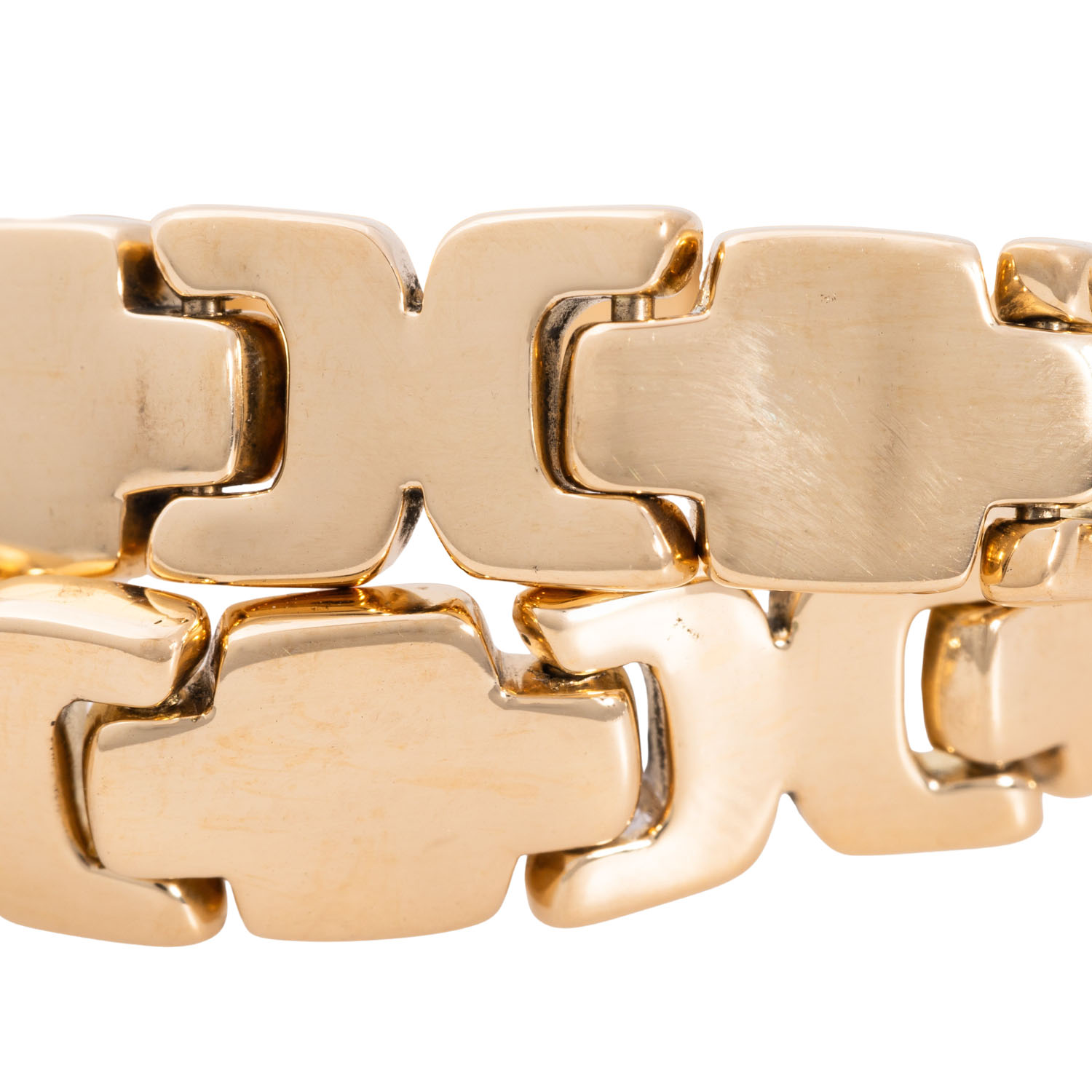 ges. 0,90 ct (gest.), gute Farbe und Reinheit, GG 18K, 37,5 g, L: 18,8 cm, B: 7,4 mm, Kastenschloß, 2 Sicherungsachten, Ende 20. Jh., minimale Tragespuren, Zubehör: Original Lederetui.