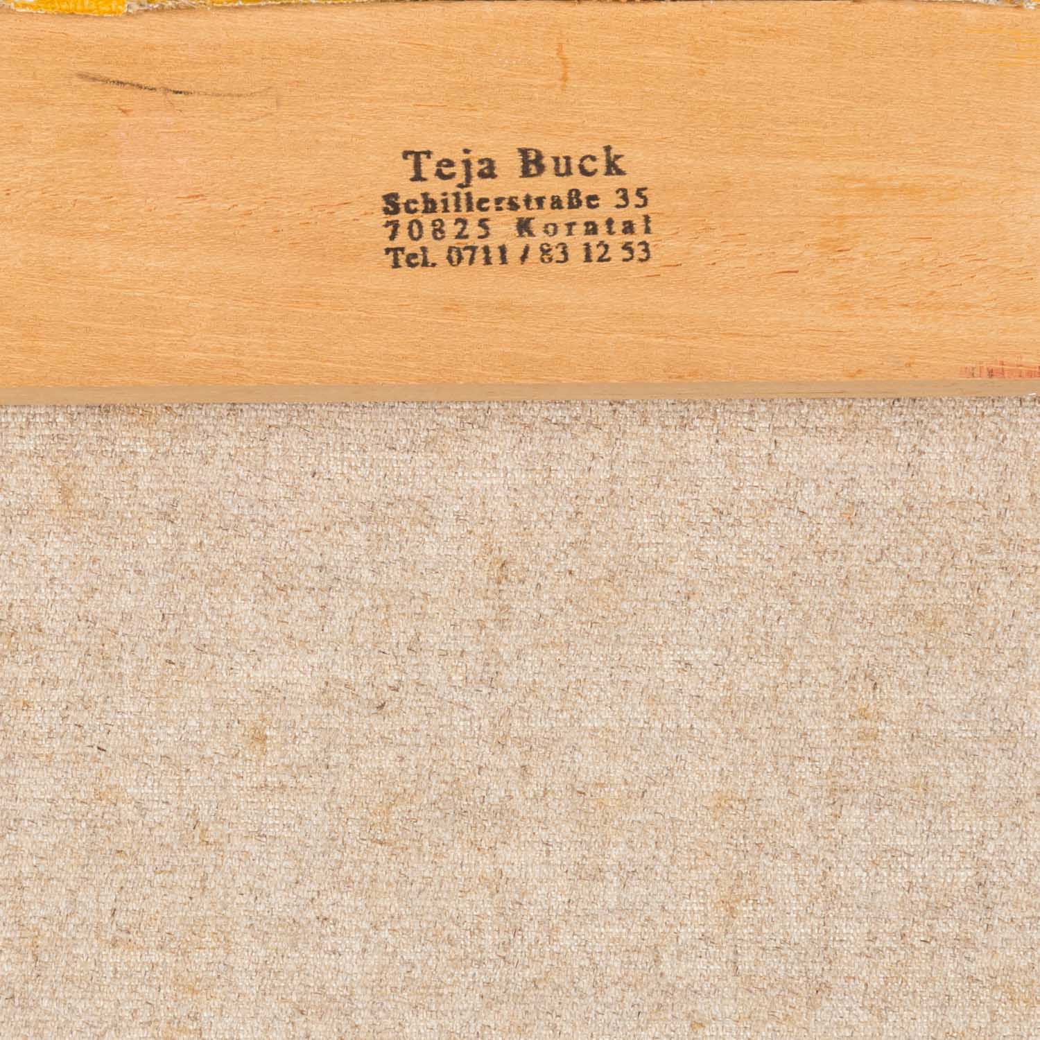unten links signiert und datiert: 'Teja Buck / 1998'. Öl auf Leinwand, HxB: ca. 80 x 100 cm. Alters- und Beriebsspuren, Leinwand an den Spannrändern teilweise gerissen. Ohne Rahmen.