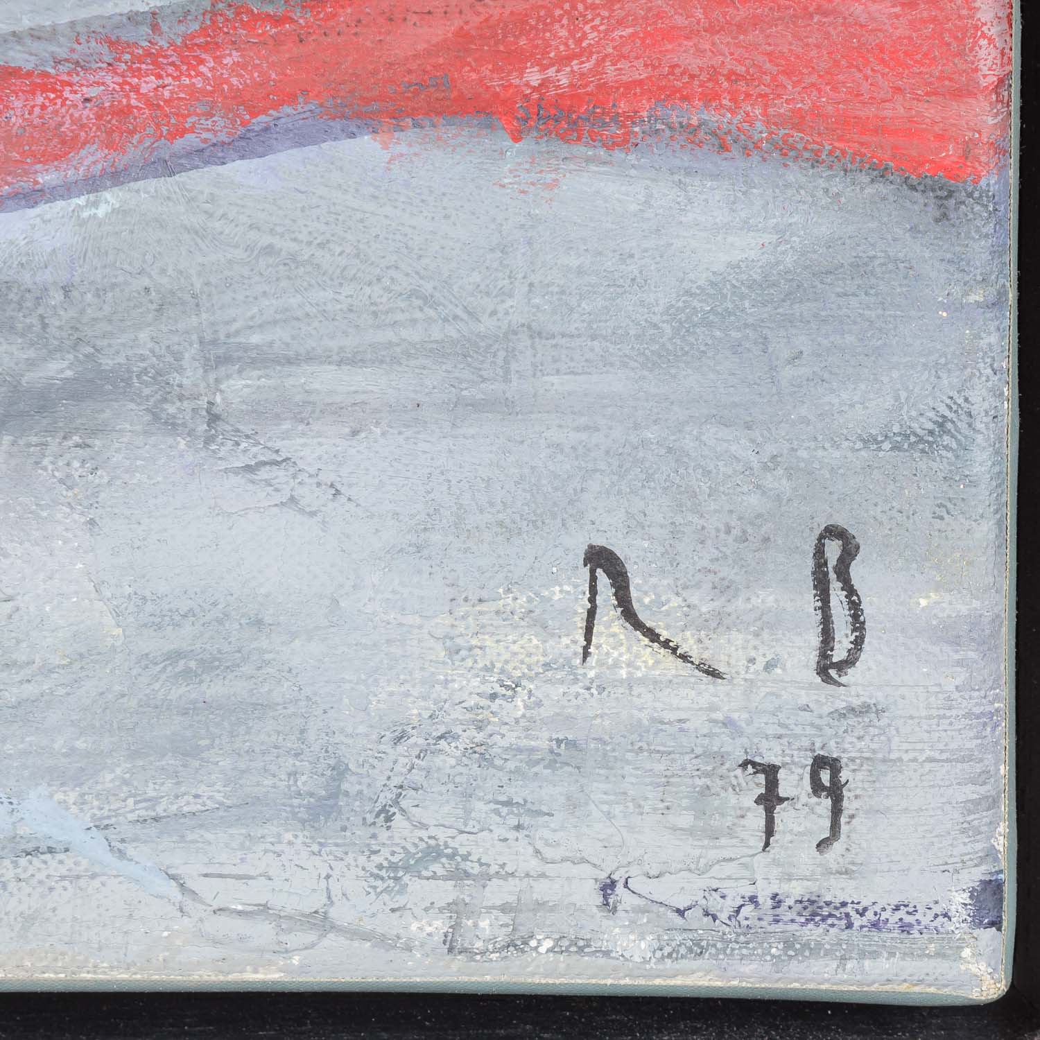 u.re. monogrammiert und datiert 'R B 79', Mischtechnik/Leinwand, HxB: ca. 80x38 cm (83x40 cm mit Rahmen). Im Rahmen montiert. Alters- und Beriebspuren.