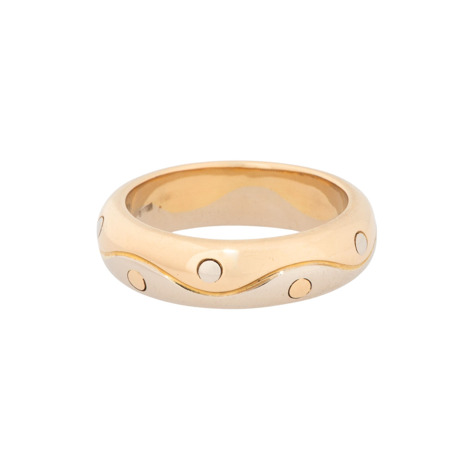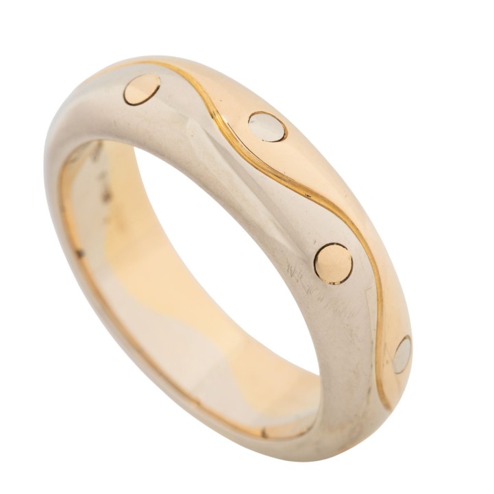 GG/WG 18K, 8 g, RW: 50, Wellenmuster, Ende 20. Jh., leichte Tragespuren, punziert BULGARI, Handarbeit.