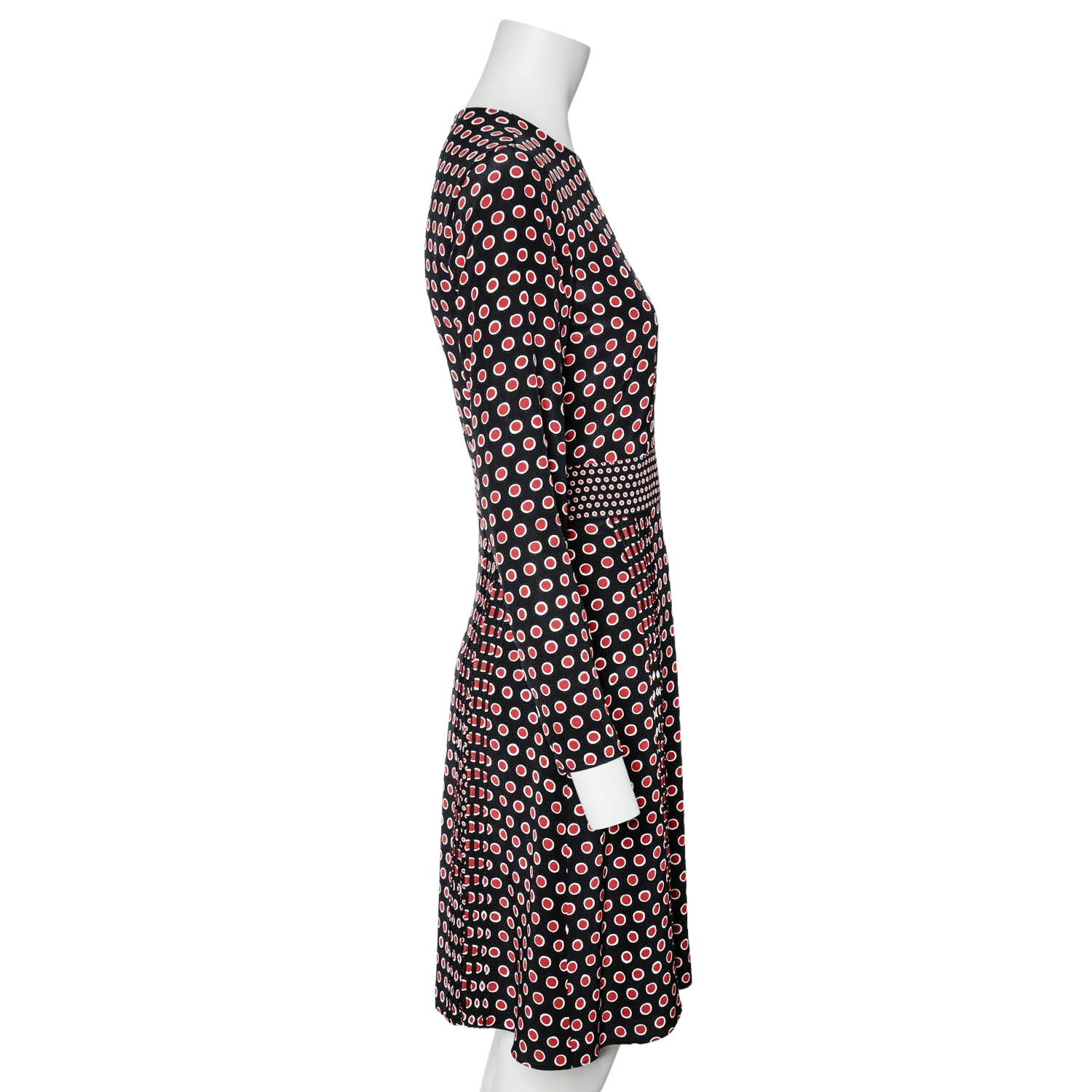 100% Seide in Schwarz mit Polka Dots in Rot mit weißer Umrandung. Guter Erhalt.