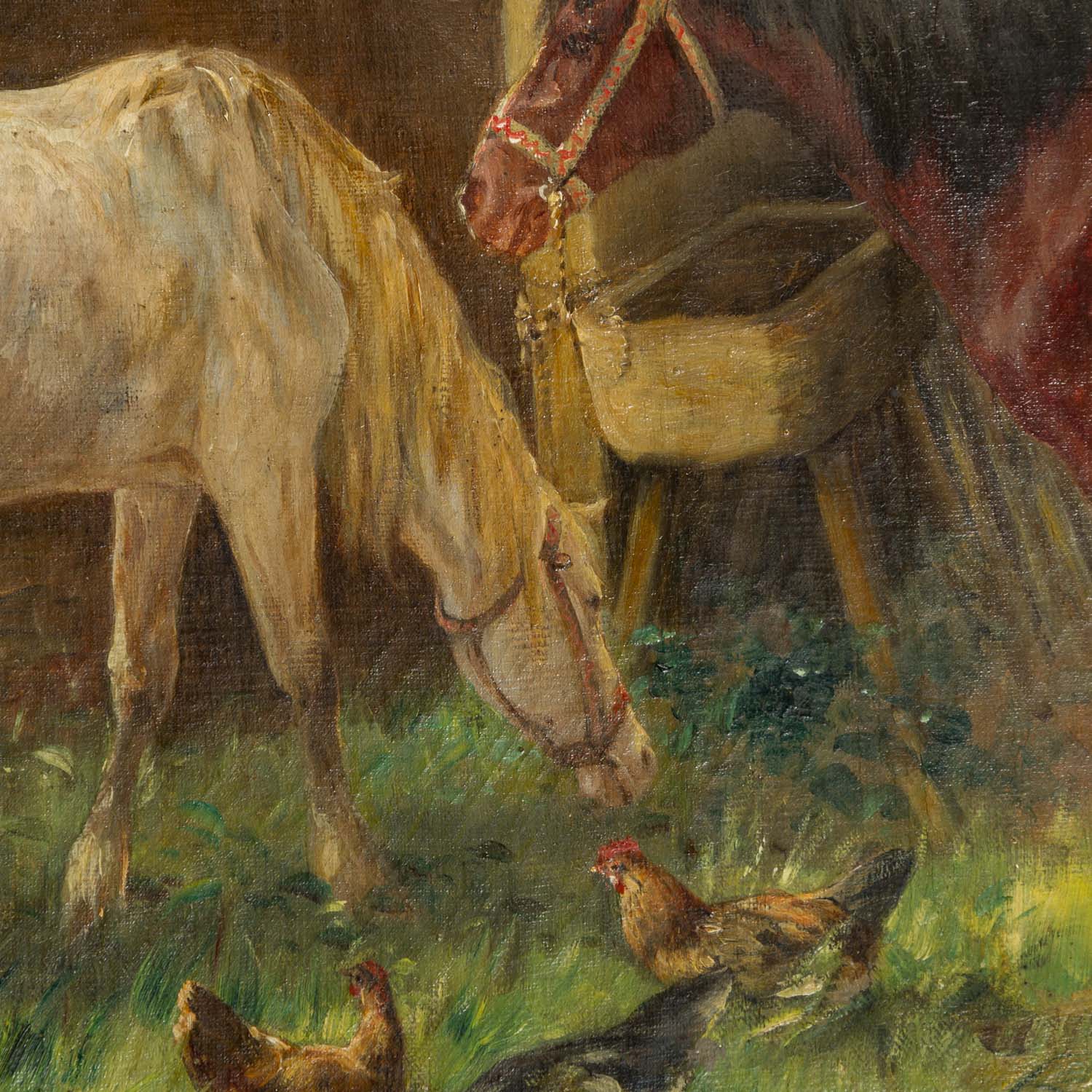 CALVES, GEORGES (1848-1923), 'Pferde im Garten hinter dem Haus',