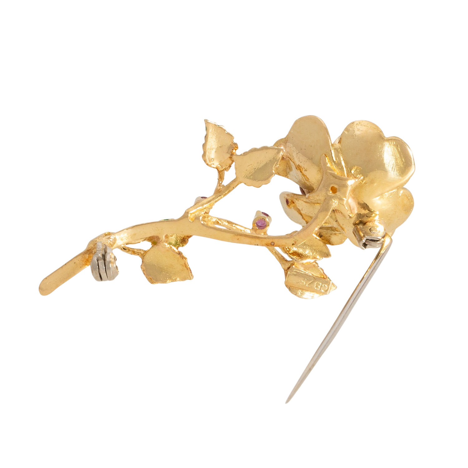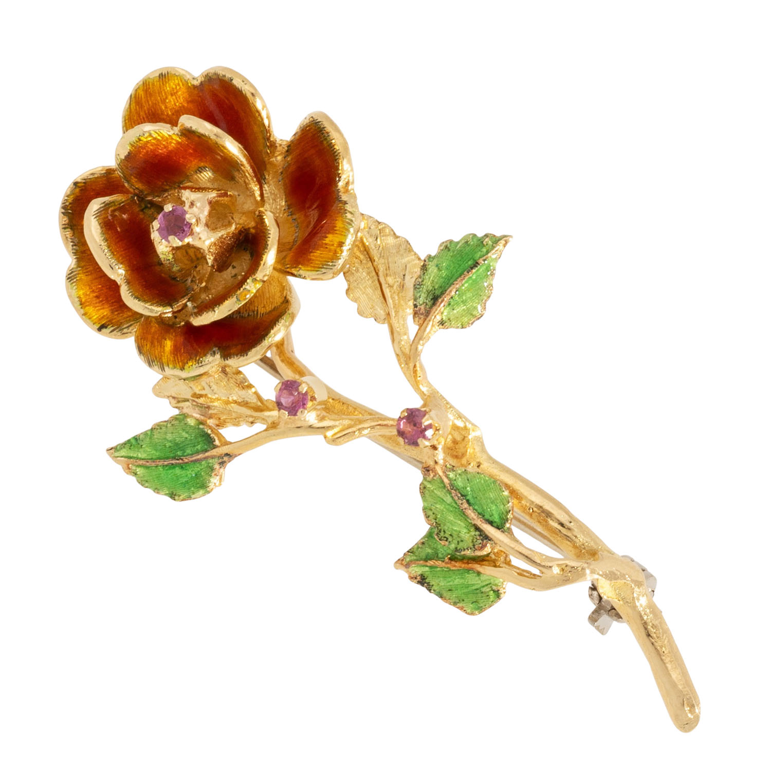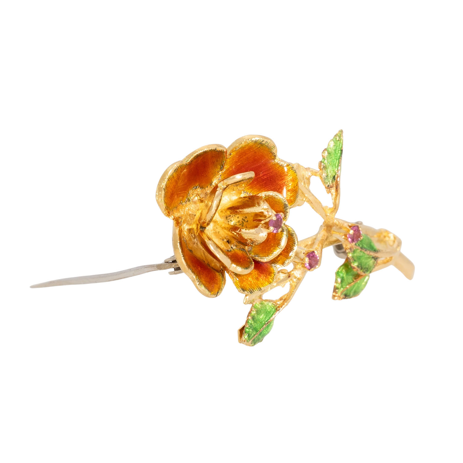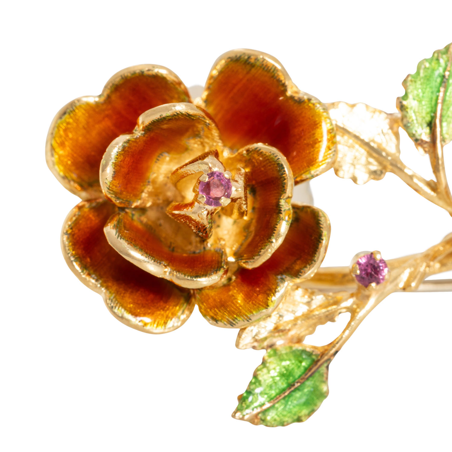 CARL BUCHERER Brosche 'Rose' mit 3 pinken Saphiren und Email,