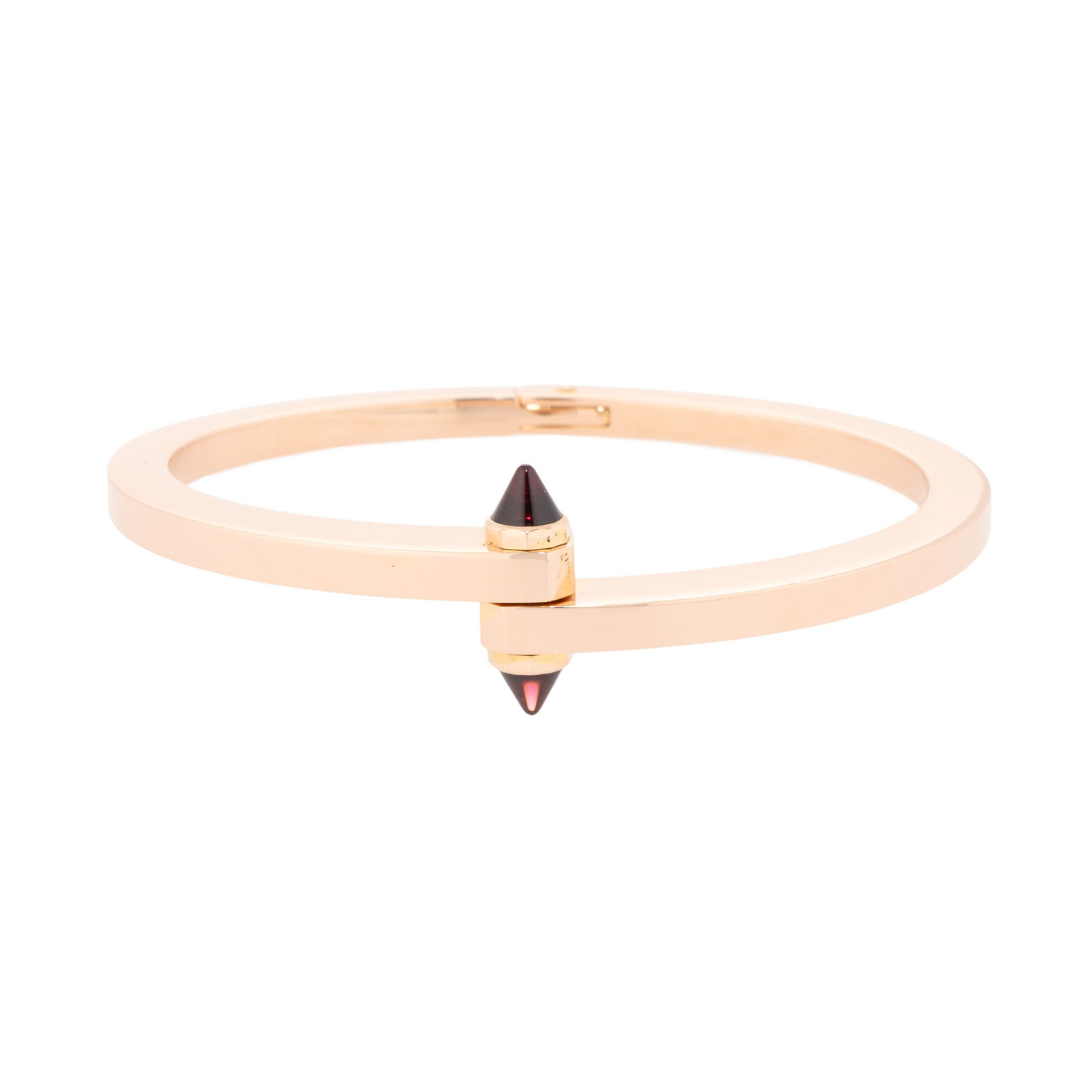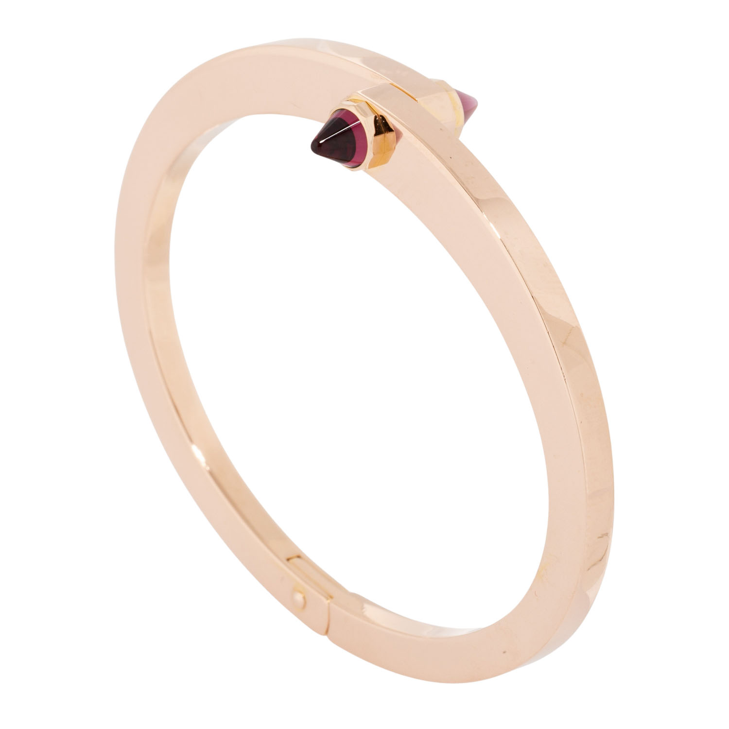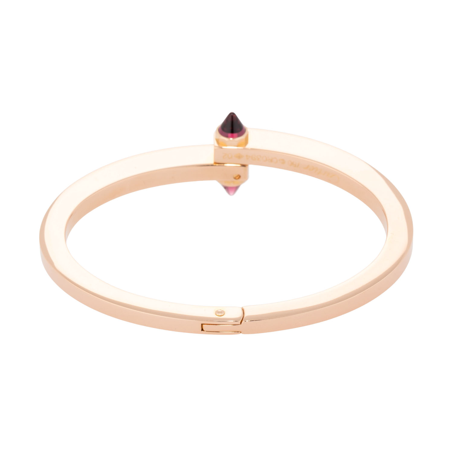 akzentuiert durch pyramidenförmige Rhodolith-Steine, Roségold 18K, 48,9 g, Innenumfang ca. 15,5 cm. ca. 1990er, Tragespuren, signiert Cartier, mit originalem Schraubendreher.