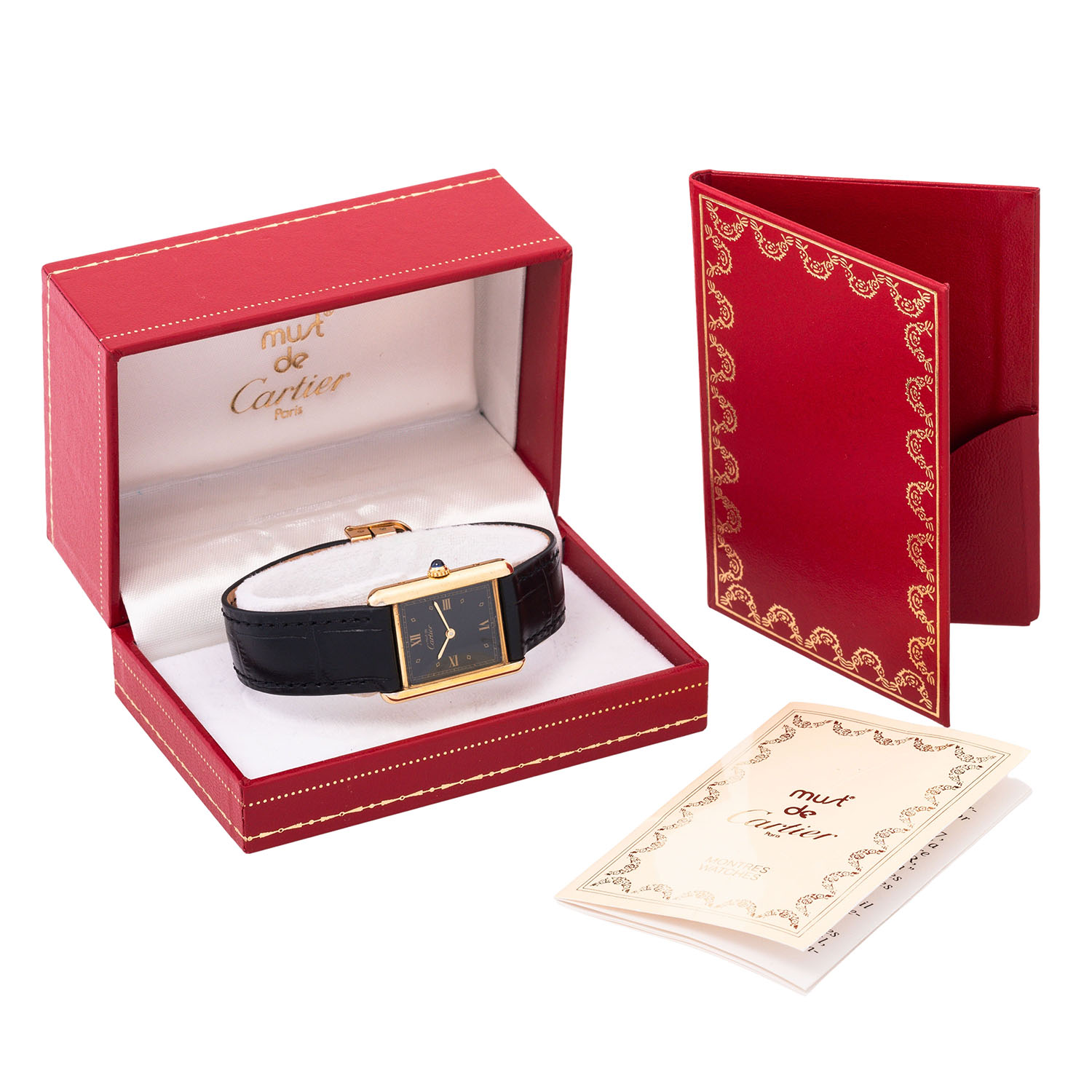 CARTIER Vintage Tank Vermeil PM 'Lapis' Damenuhr. Full Set 1977.