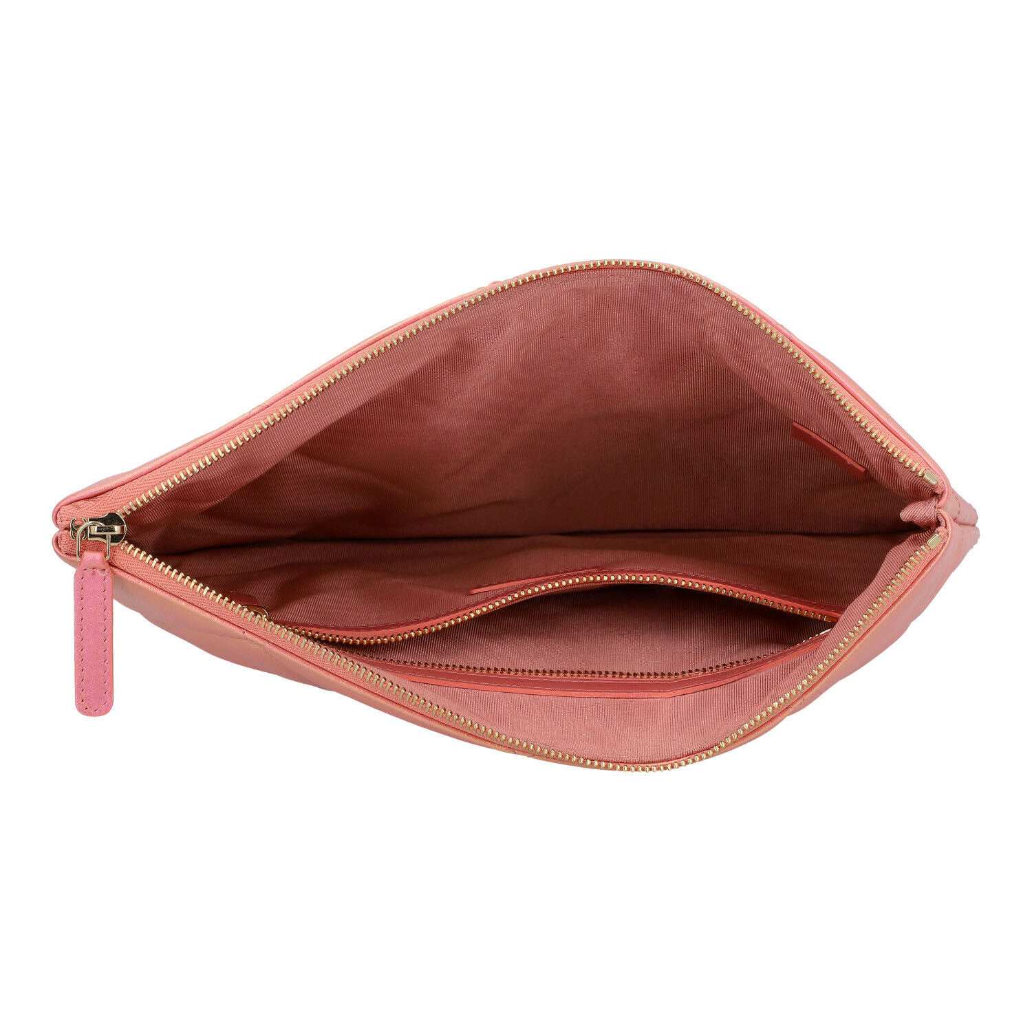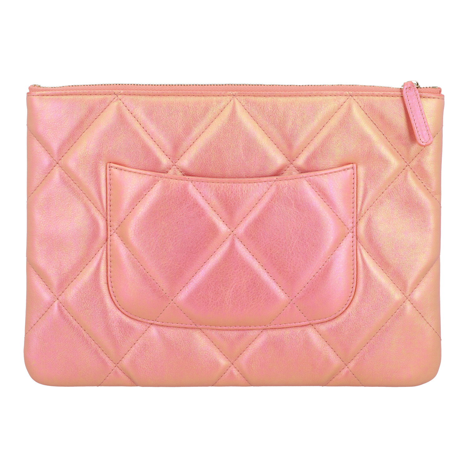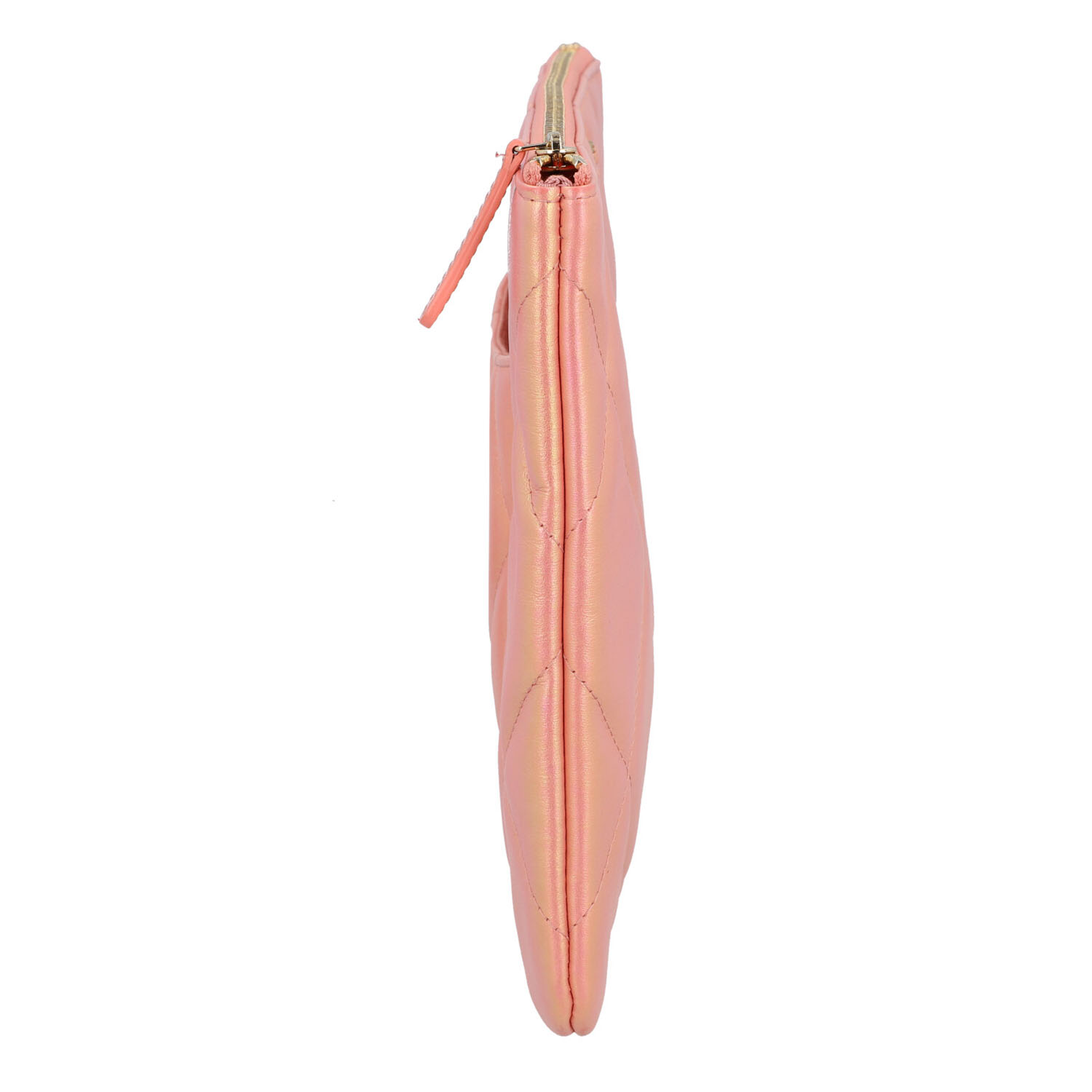 Koll. 2020. Changierendes Leder in Rosa-Metallic mit Diamantsteppung und goldfarbener Hardware. Hauptfach mit Reißverschluss, textiles Innenfutter mit kleinem Innenfach und Reißverschluss. Box, Staubbeutel und ID-Card anbei. Sehr guter Erhalt. 27,5x19,5cm.