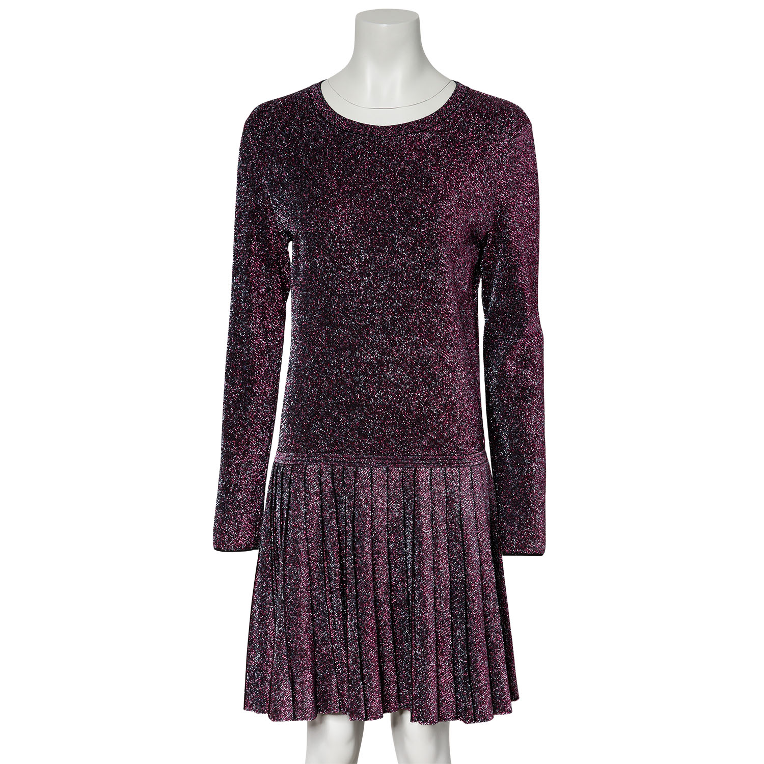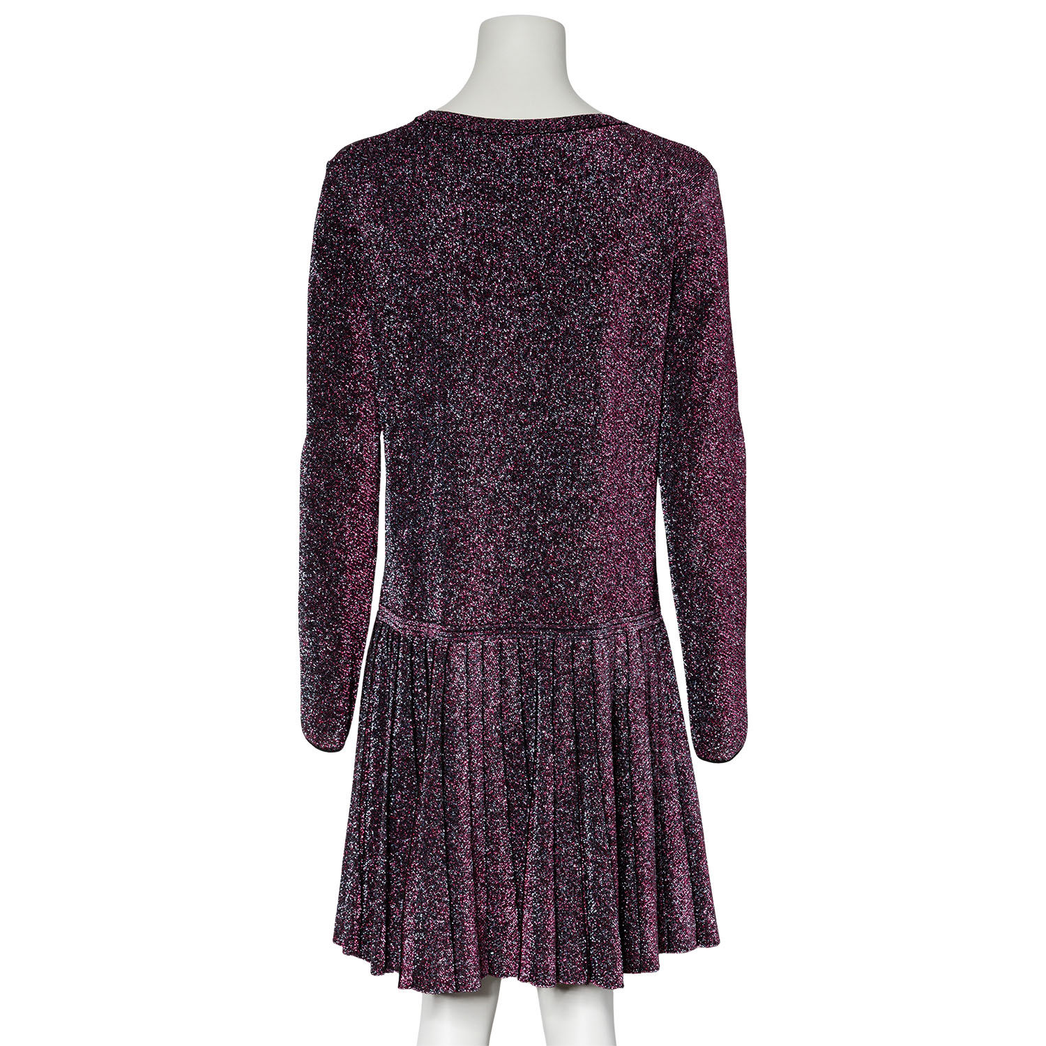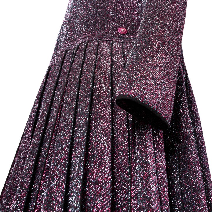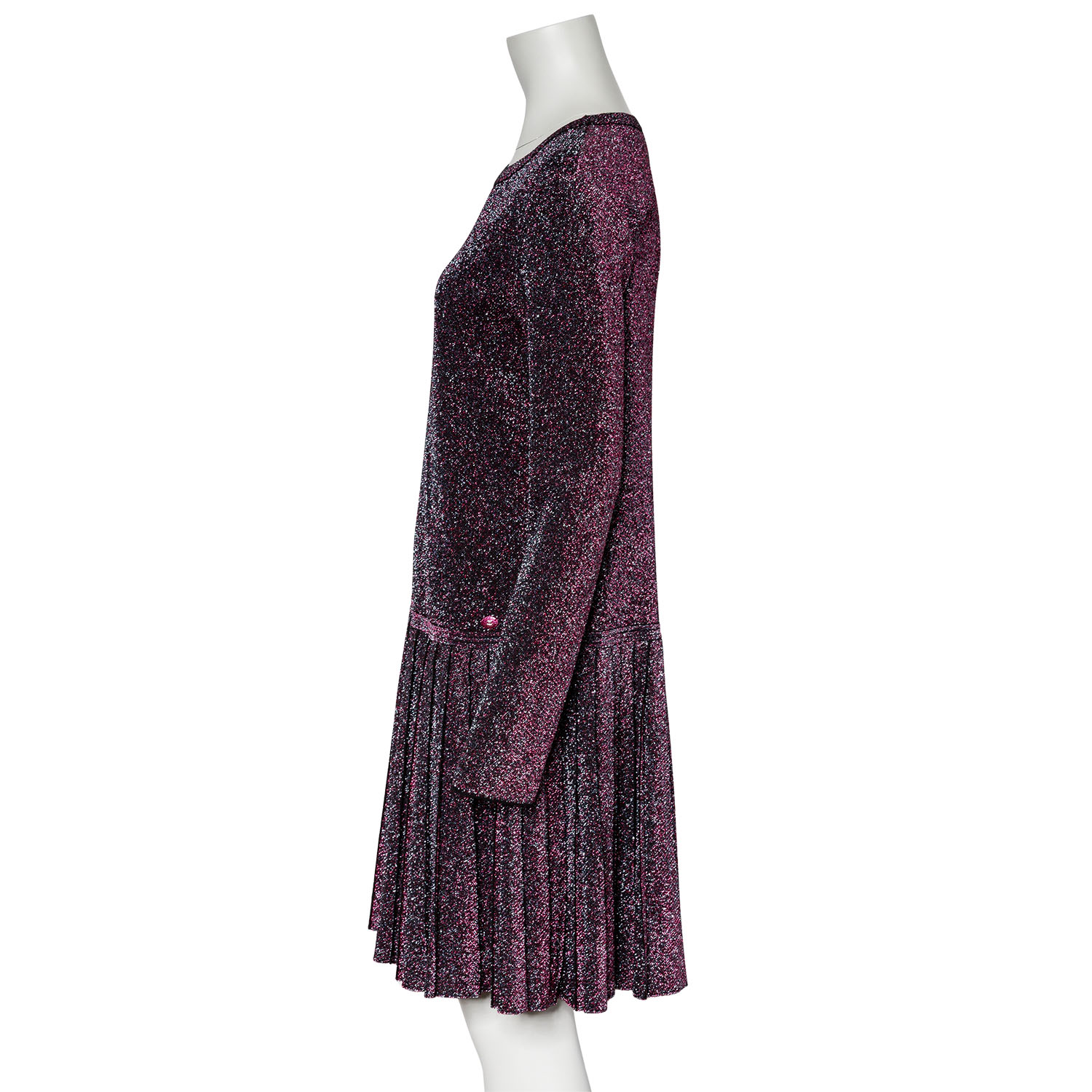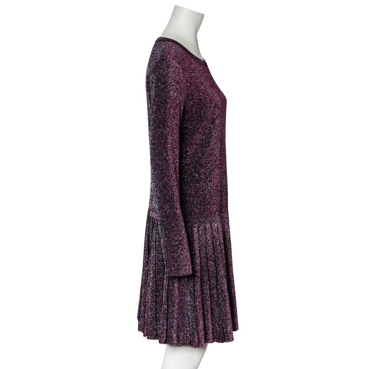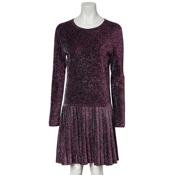 chimmerndes Modell mit langen Ärmeln, klassischem Rundhals-Ausschnitt und angesetztem Faltenrock. Tragespuren vorhanden.