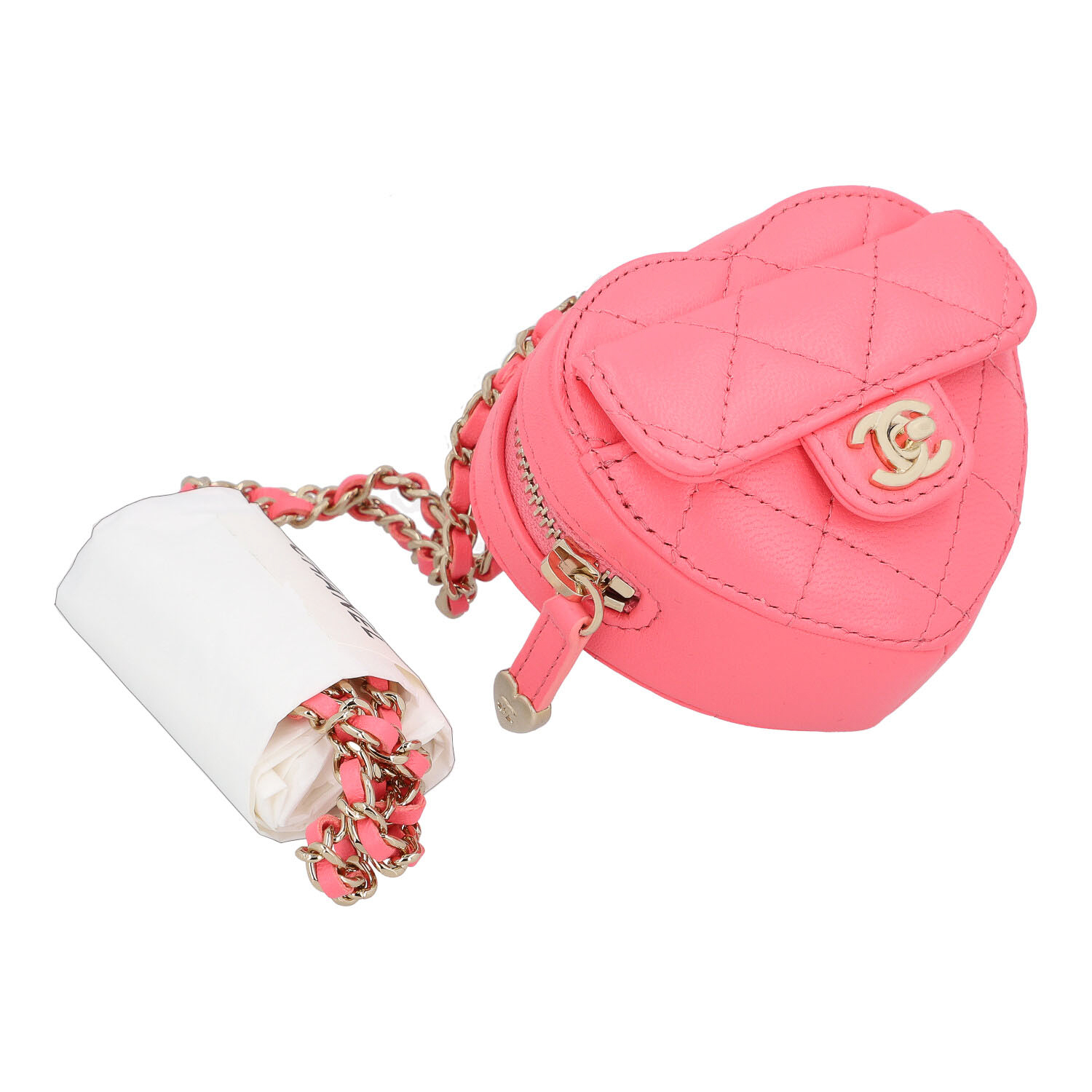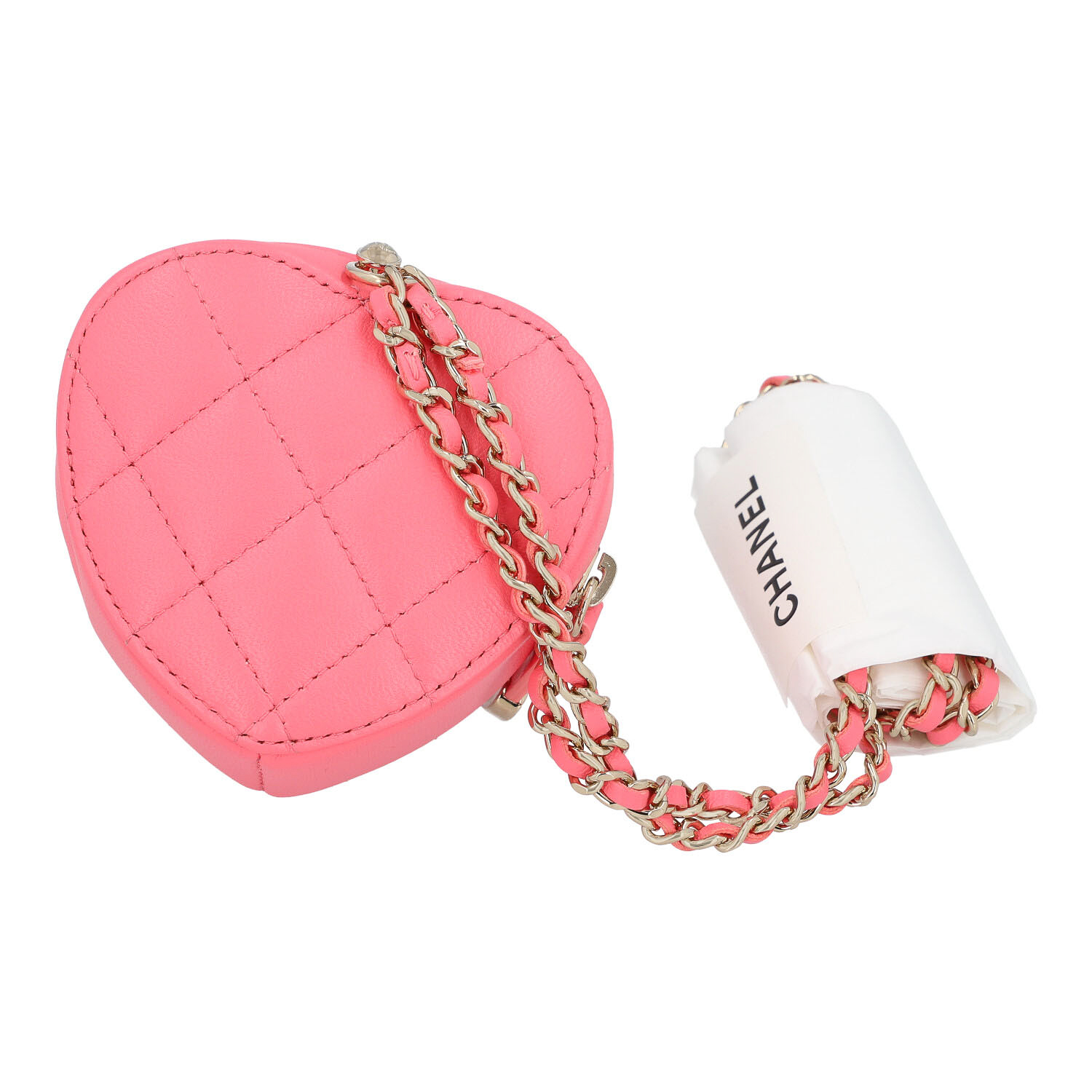 Koll. 2022. Fein genarbtes Lammleder in Rosa mit goldfarbener Hardware. Klassische Herztasche in Mini-Format. Neuwertiger Zustand. Box, Staubbeutel, ID-Card und Rechnung anbei. 8x4x8cm.