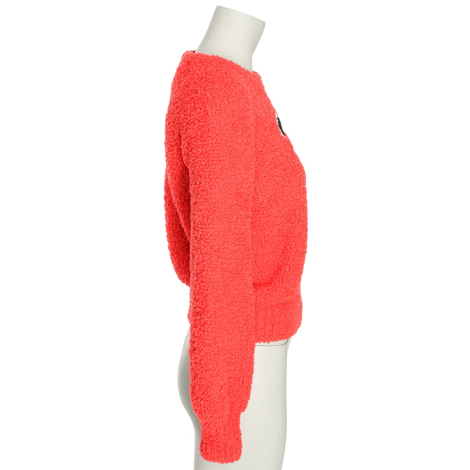 Wollgemisch in Rosa-Rot mit mittigem CC-Logo in Schwarz/Weiß. Sehr guter Erhalt.