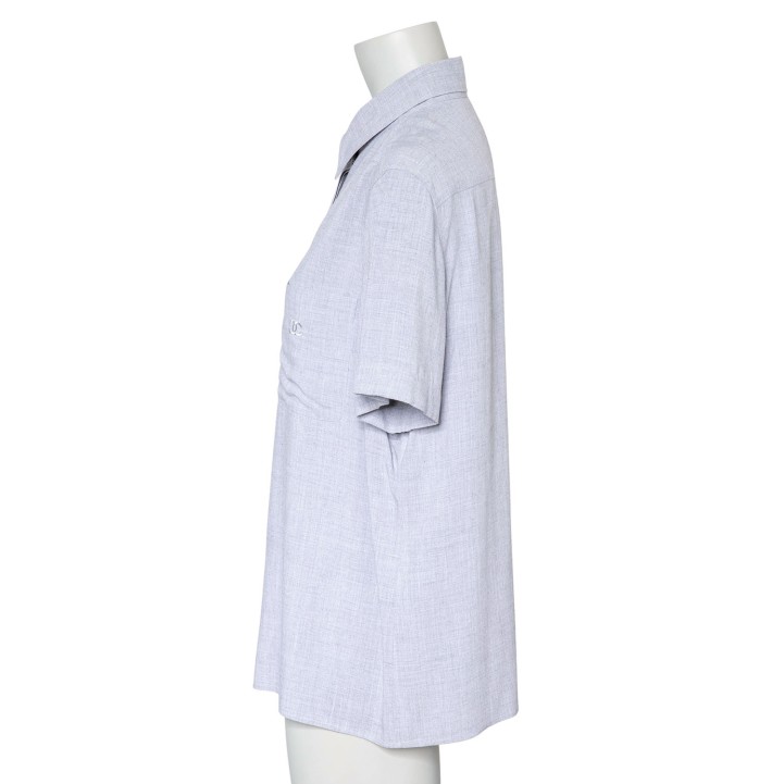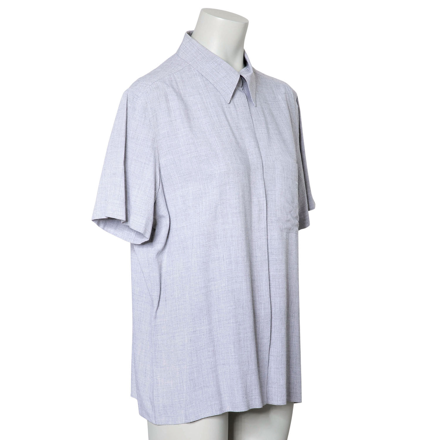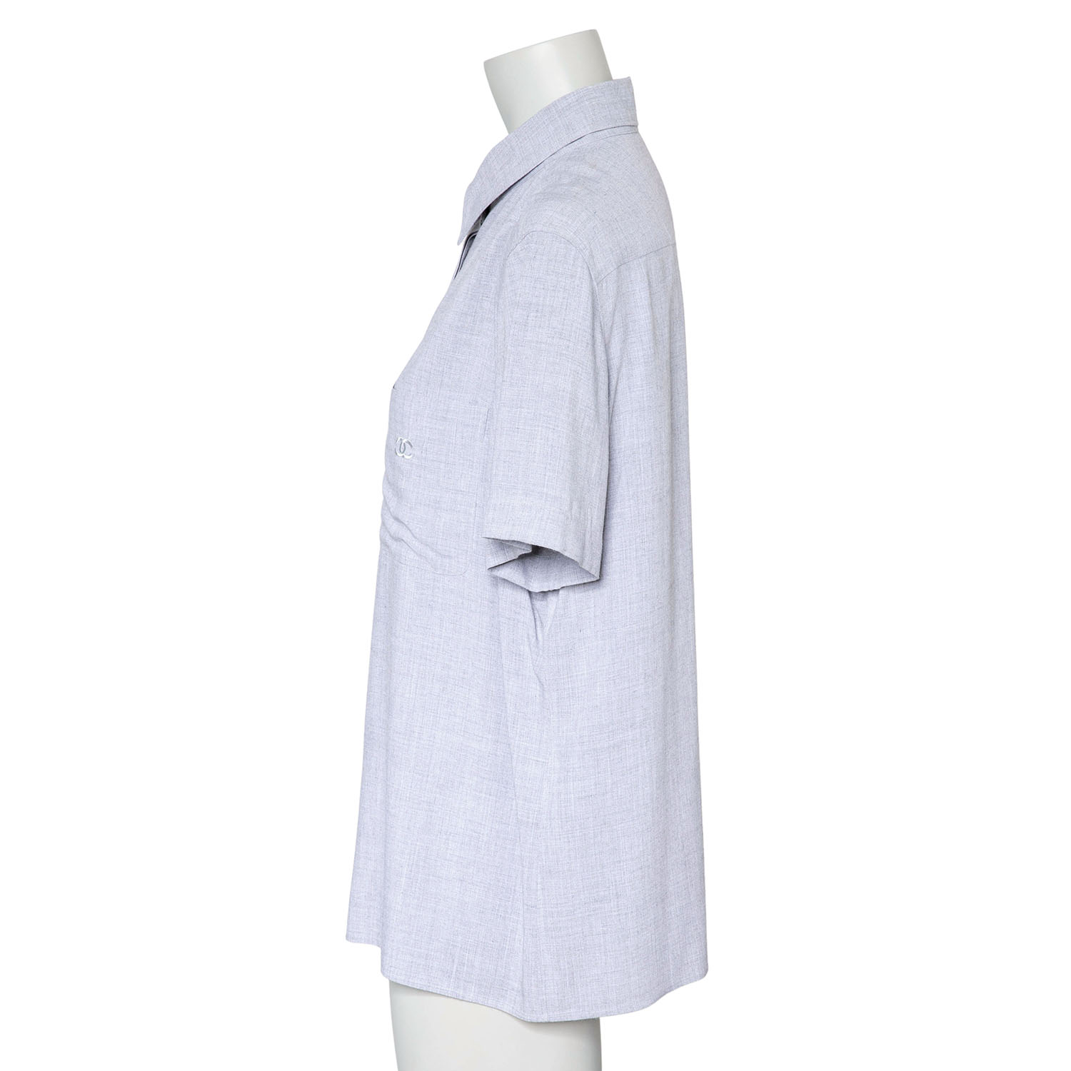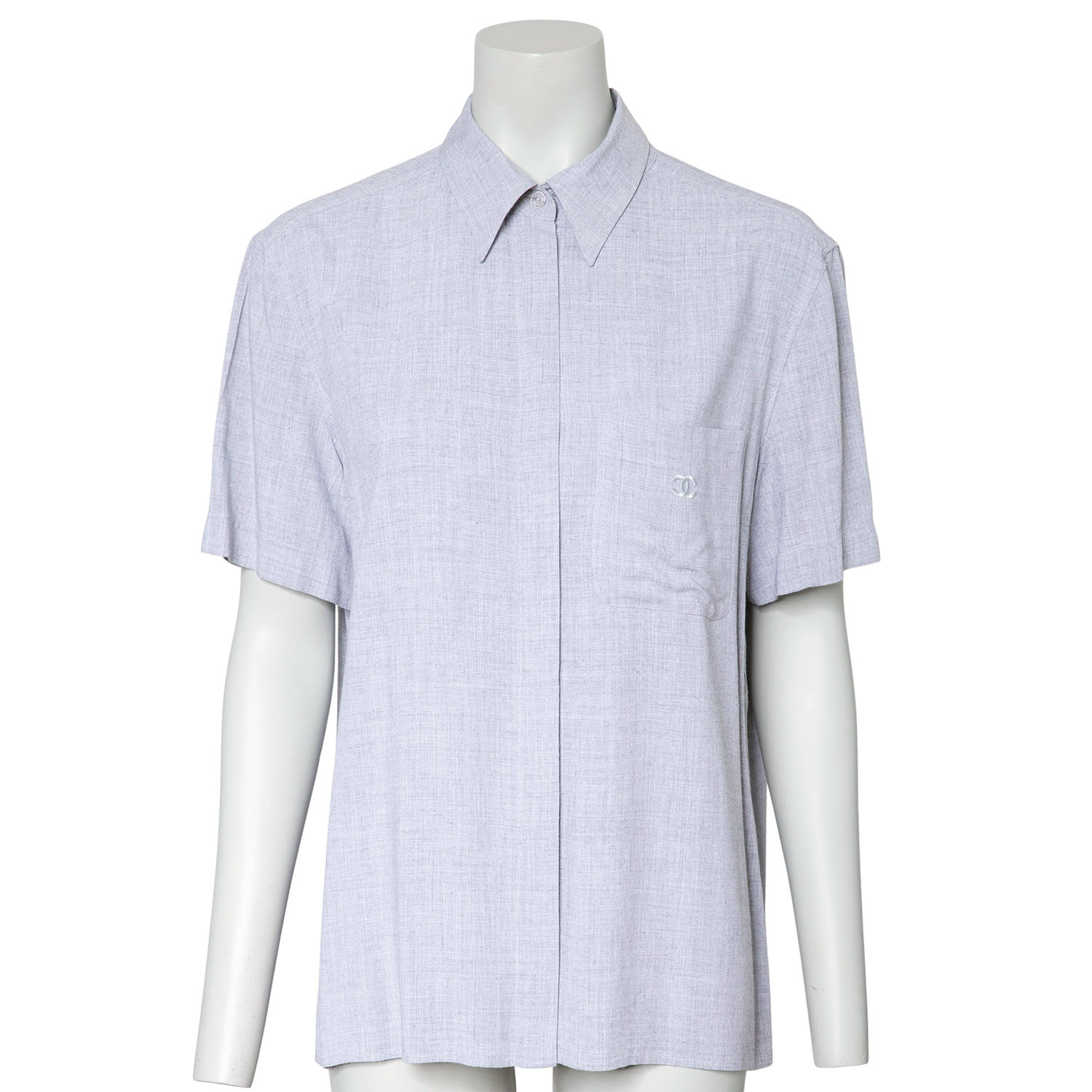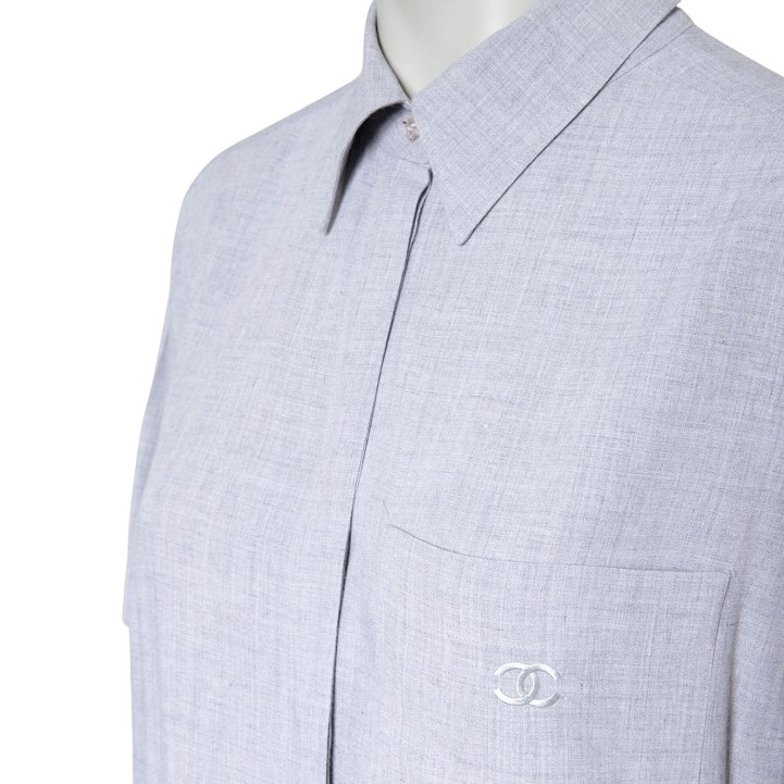 Koll. 1999. 100% Viskose in Hellgrau mit verdeckter Knopfleiste. Brusttasche mit CC-Logo Stickerei. Guter Erhalt.