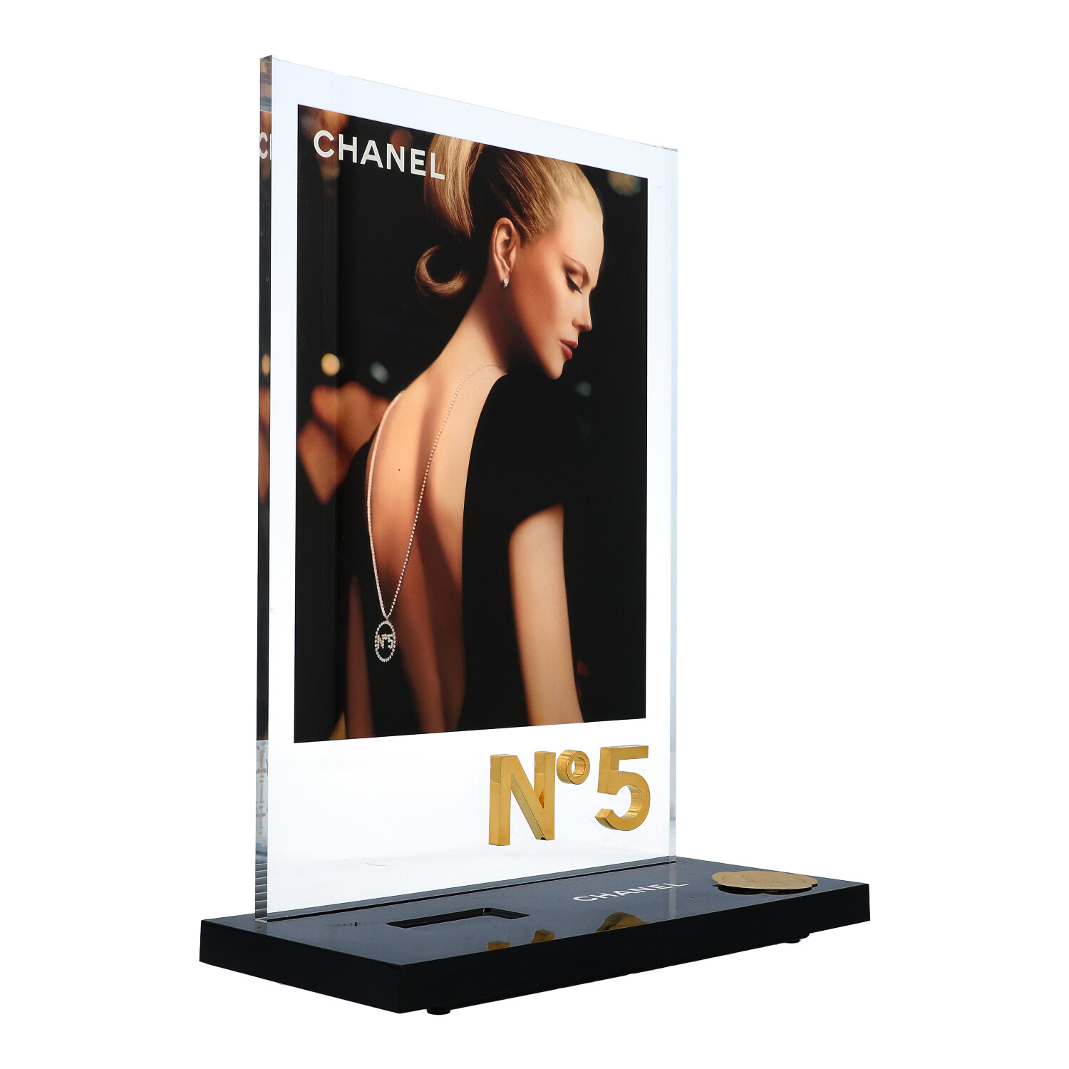No5. Schwarzer Fuß mit transparenter Platt, Frauenmotiv mit Logodetail. Schöner Erhalt.