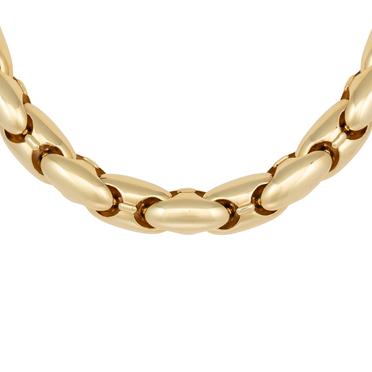 GG 18K, 103,8 g. L: 45 cm, B: 12,4 mm, Karabinerhaken, 20./21. Jh., minimale Tragespuren, Markenpunzierung.