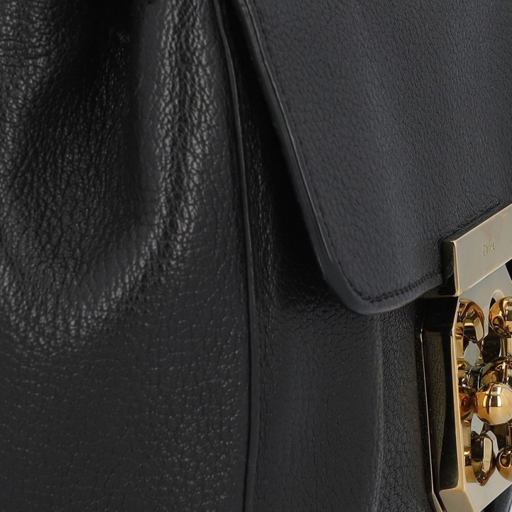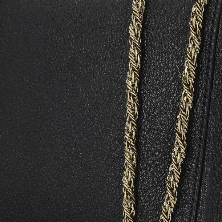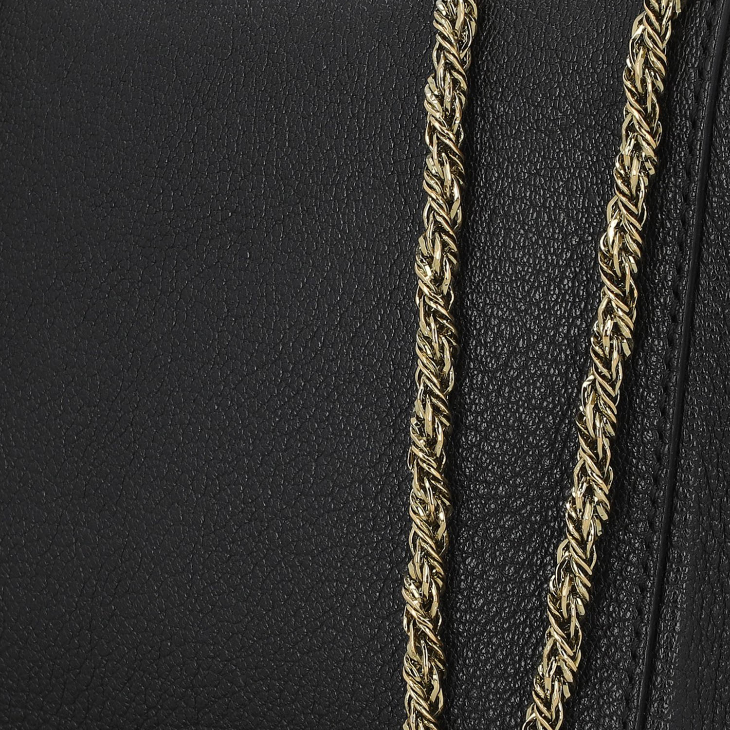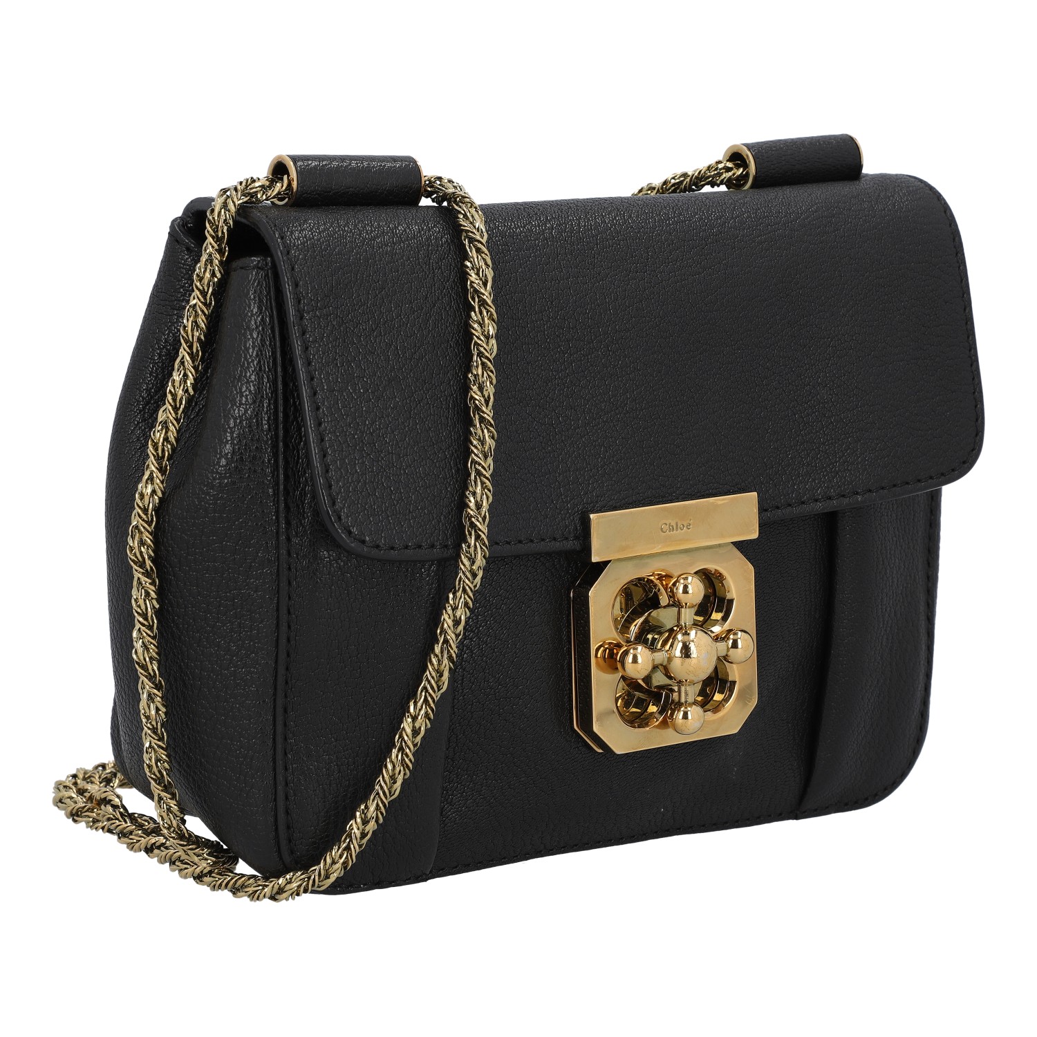 Fein genarbtes Leder in Schwarz mit goldfarbener Hardware. Überschlag mit dekorativem Verschluss, Innenfutter aus Leder, Gliederkettenriemen. Staubbeutel anbei. Guter Erhalt. 19x8x16cm.