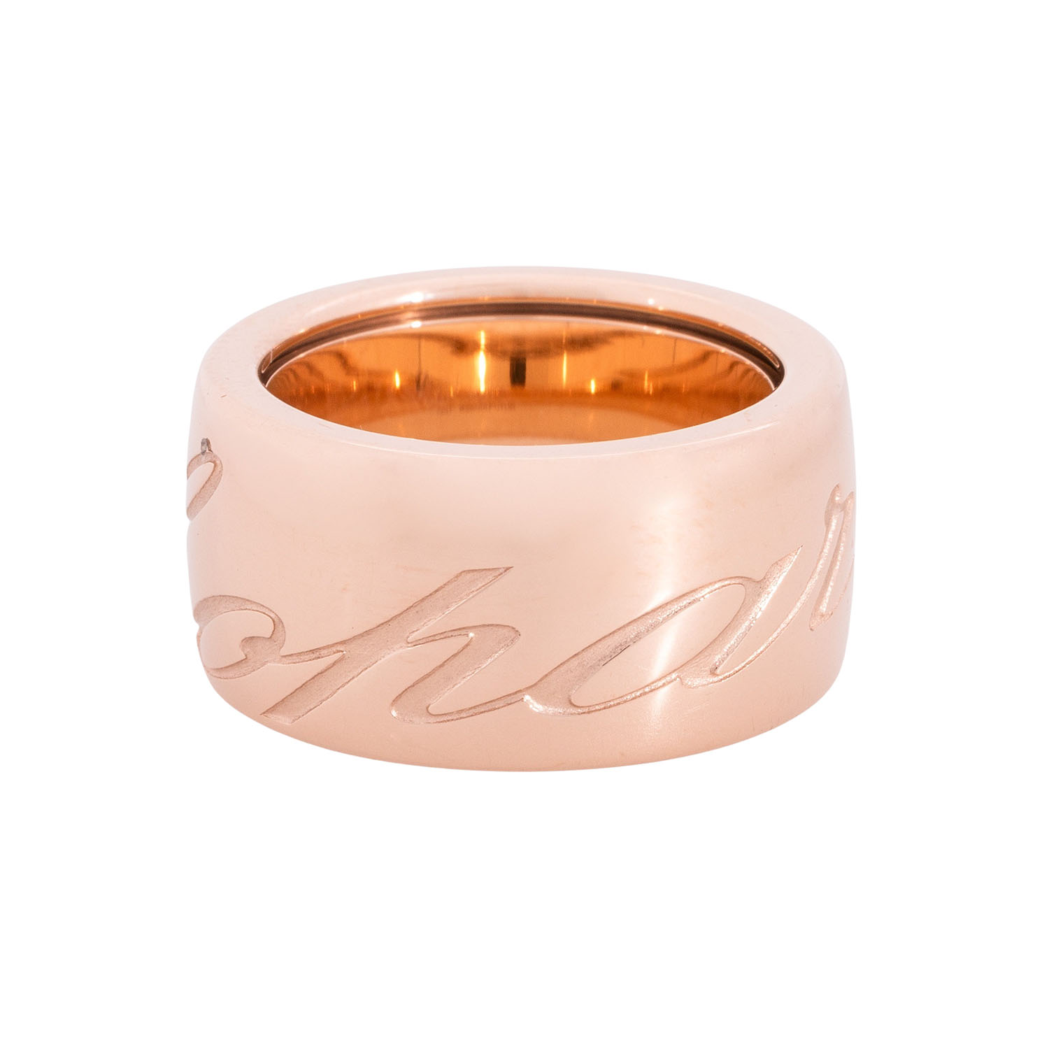 mit umlaufendem Chopard-Logo, RG 18K, 17 g, RW: 51, B 11 mm, 21. Jh., guter Zustand, original Chopard-Zertifikat und Schmucketui mit Umkarton liegen bei.
