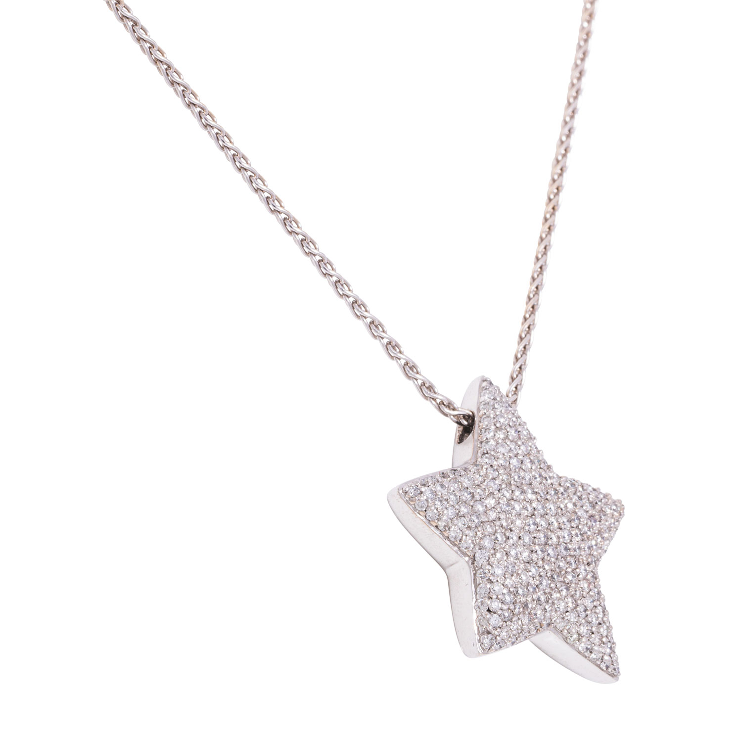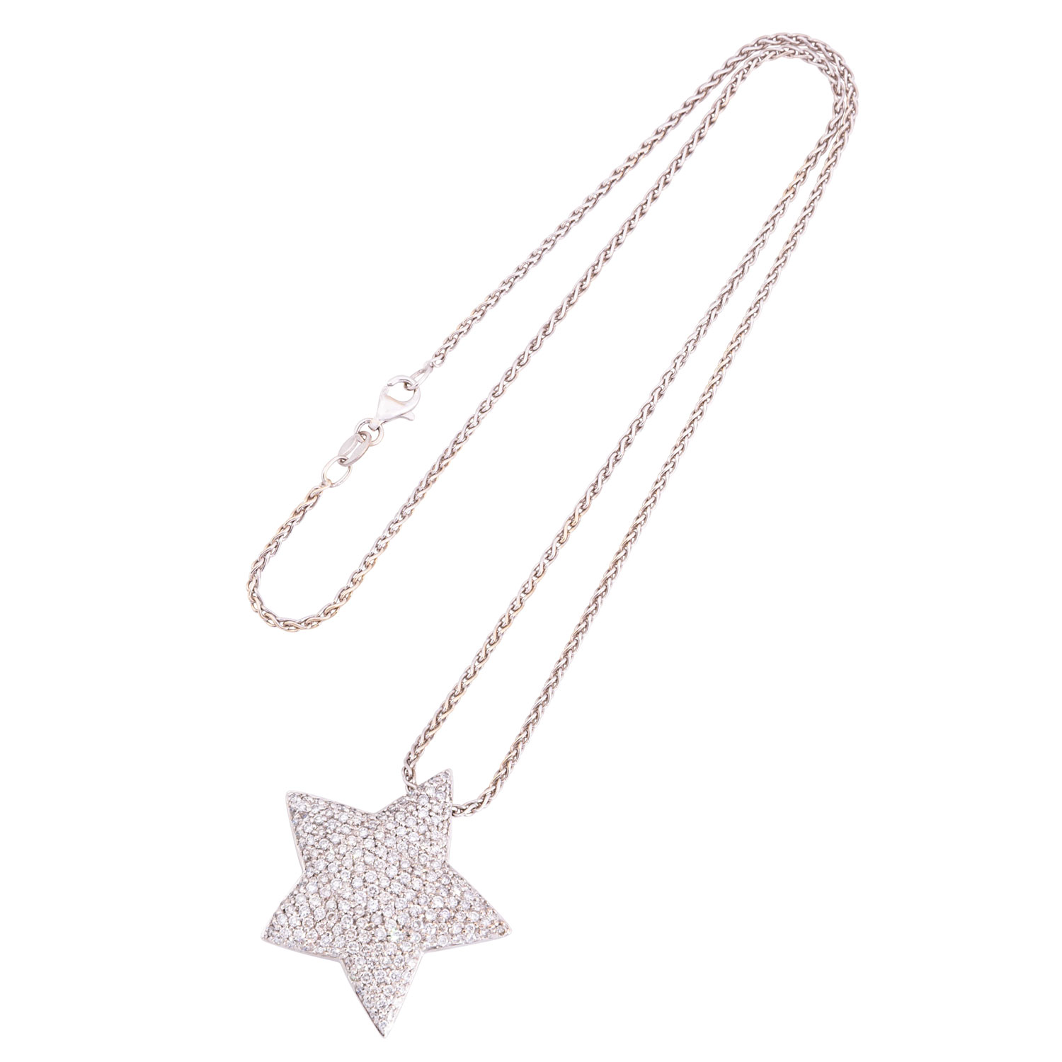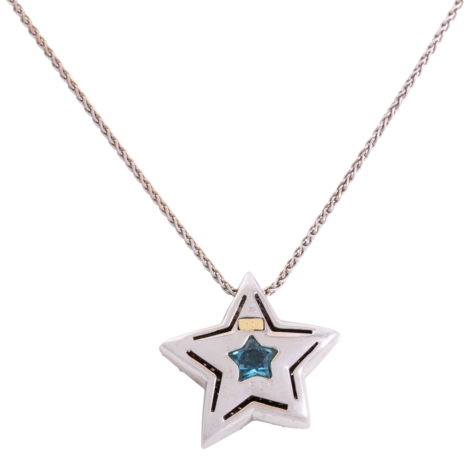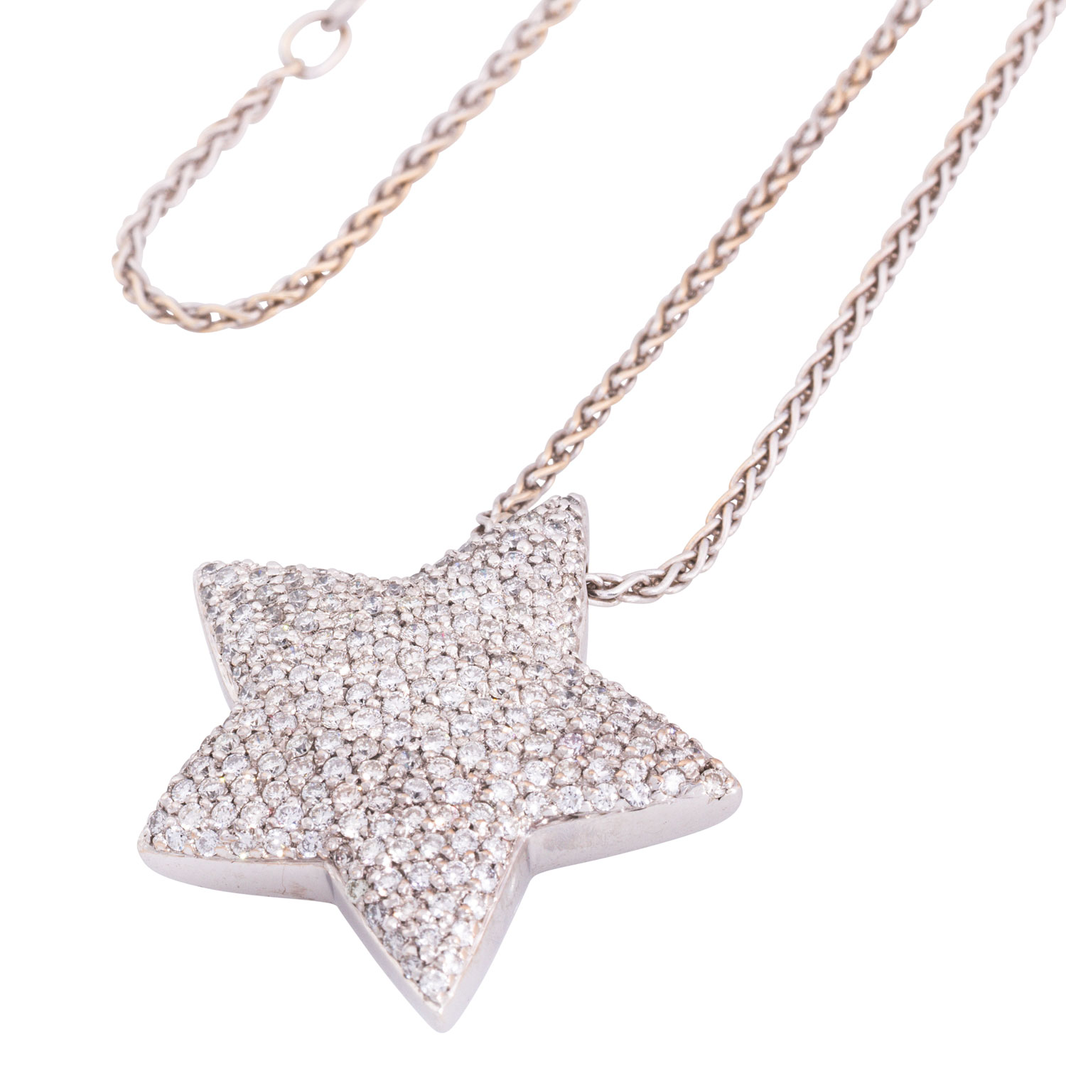 zus. ca. 2 ct, gute Farbe und Reinheit, rückseitig Topas im Sternschliff, mit Collierkette L: 45 cm, WG 18K, 22,4 g, 20./21. Jh., Tragespuren, limitierte Edition Nr. 1536/2000, punziert 'CHRIST 1536', mit Zertifikat.