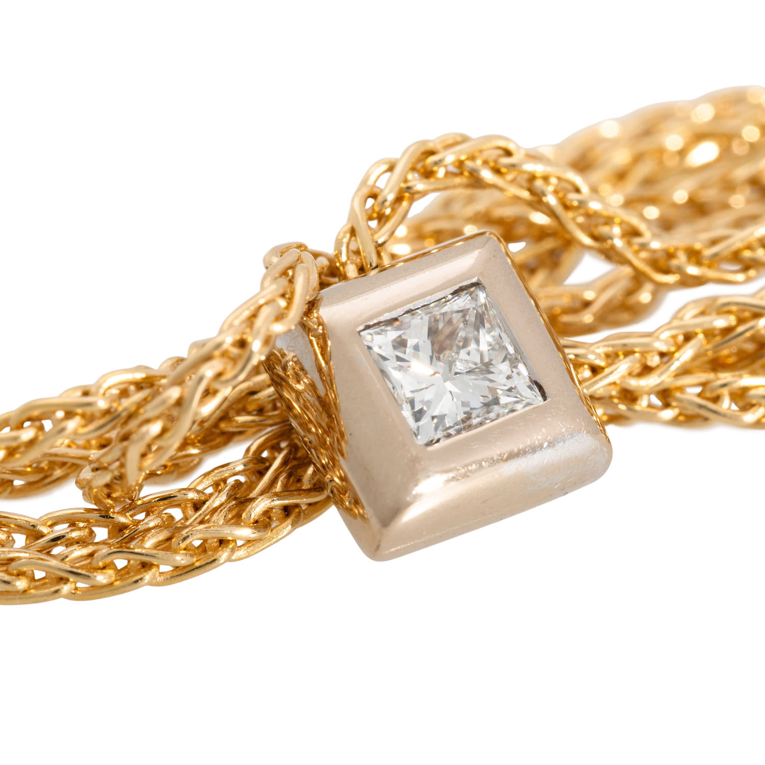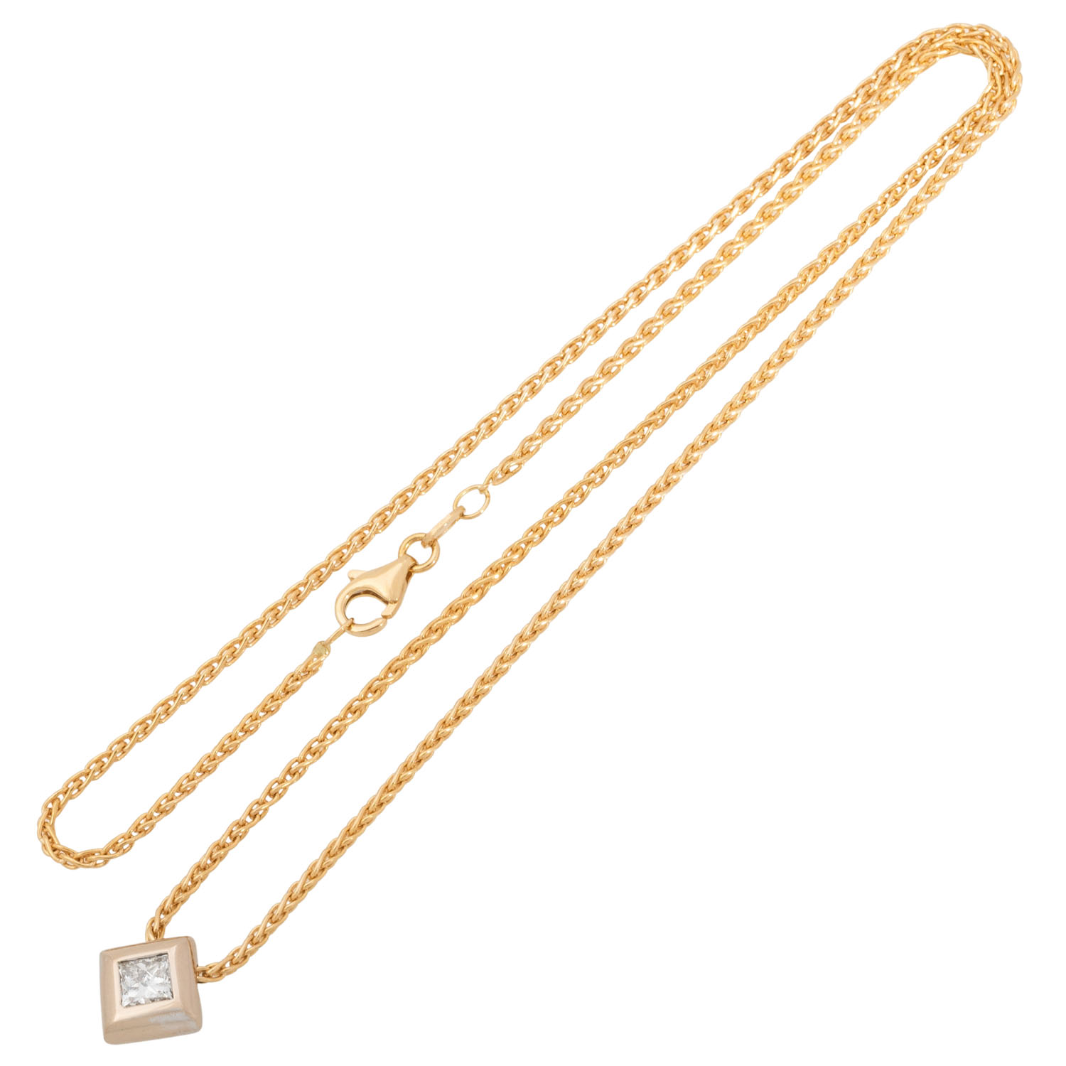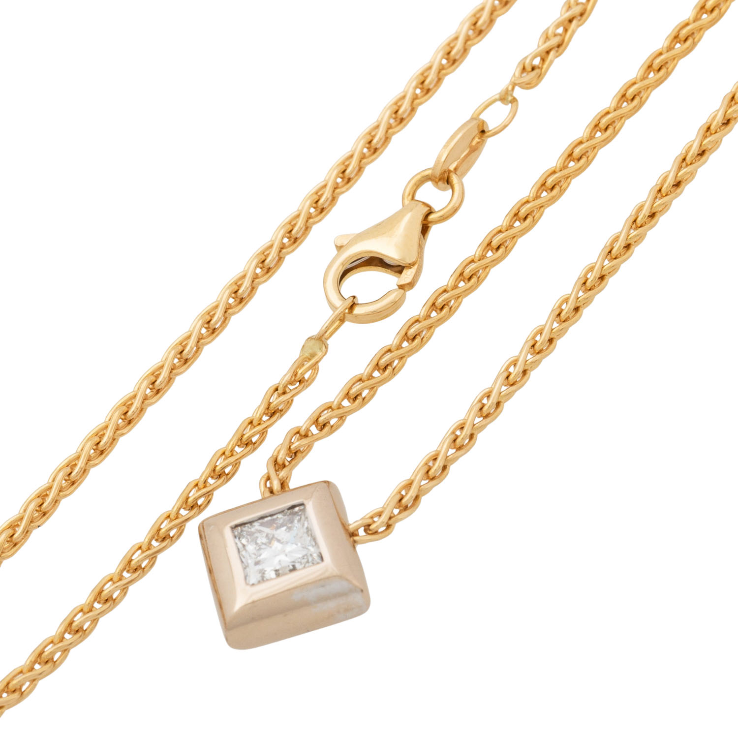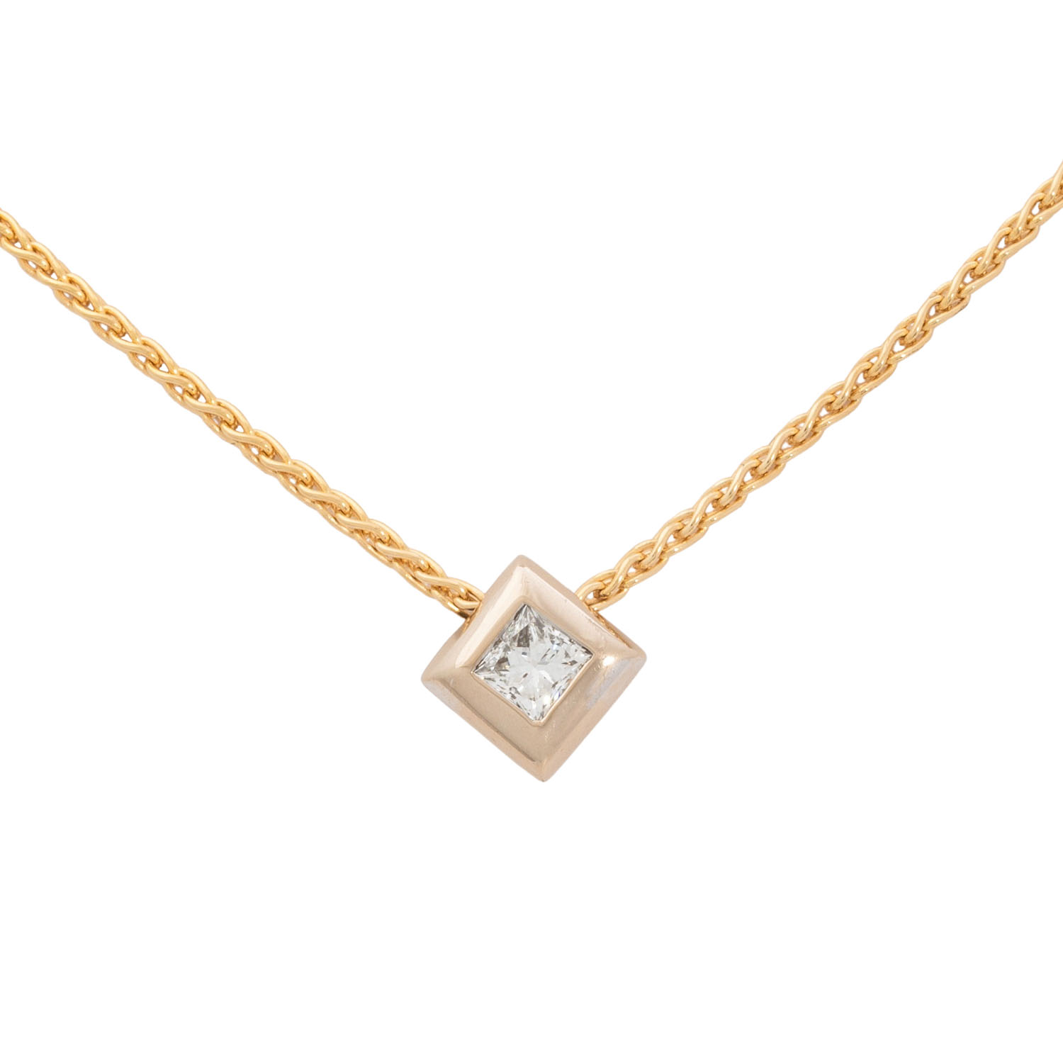 Doppelpanzerkette, rechteckiger Anhänger, 8,4 x 8,2 mm, mit Diamant im Prinzess-Schliff, ca. 0,40 ct, LGW (I-J)/SI, GG/WG 18K, 9,4 g, L: 45 cm, 20./21. Jh., minimale Tragespuren.