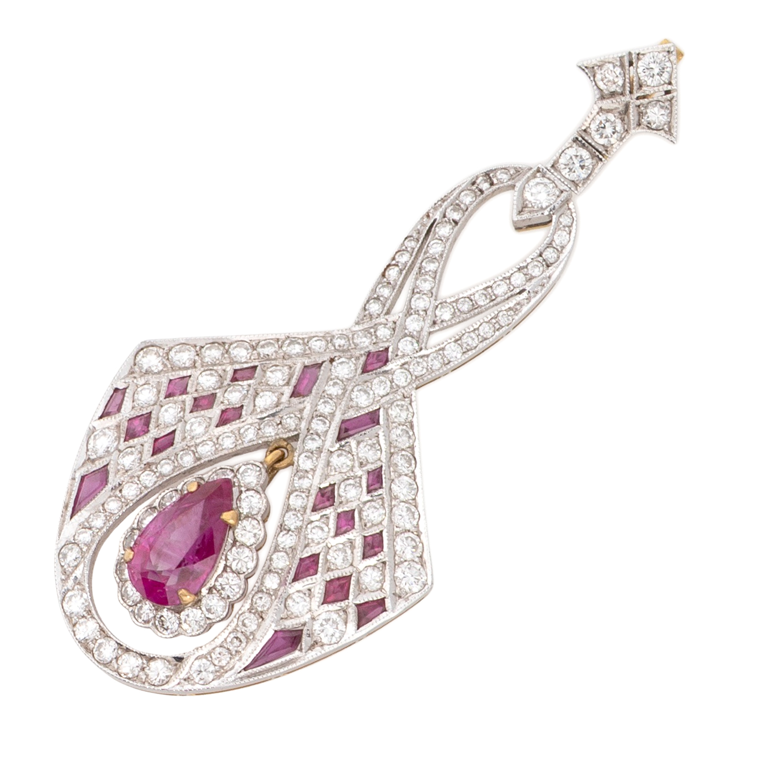 Clip-Anhänger im Stil des Art Déco mit Brillanten zus. ca. 2 ct,